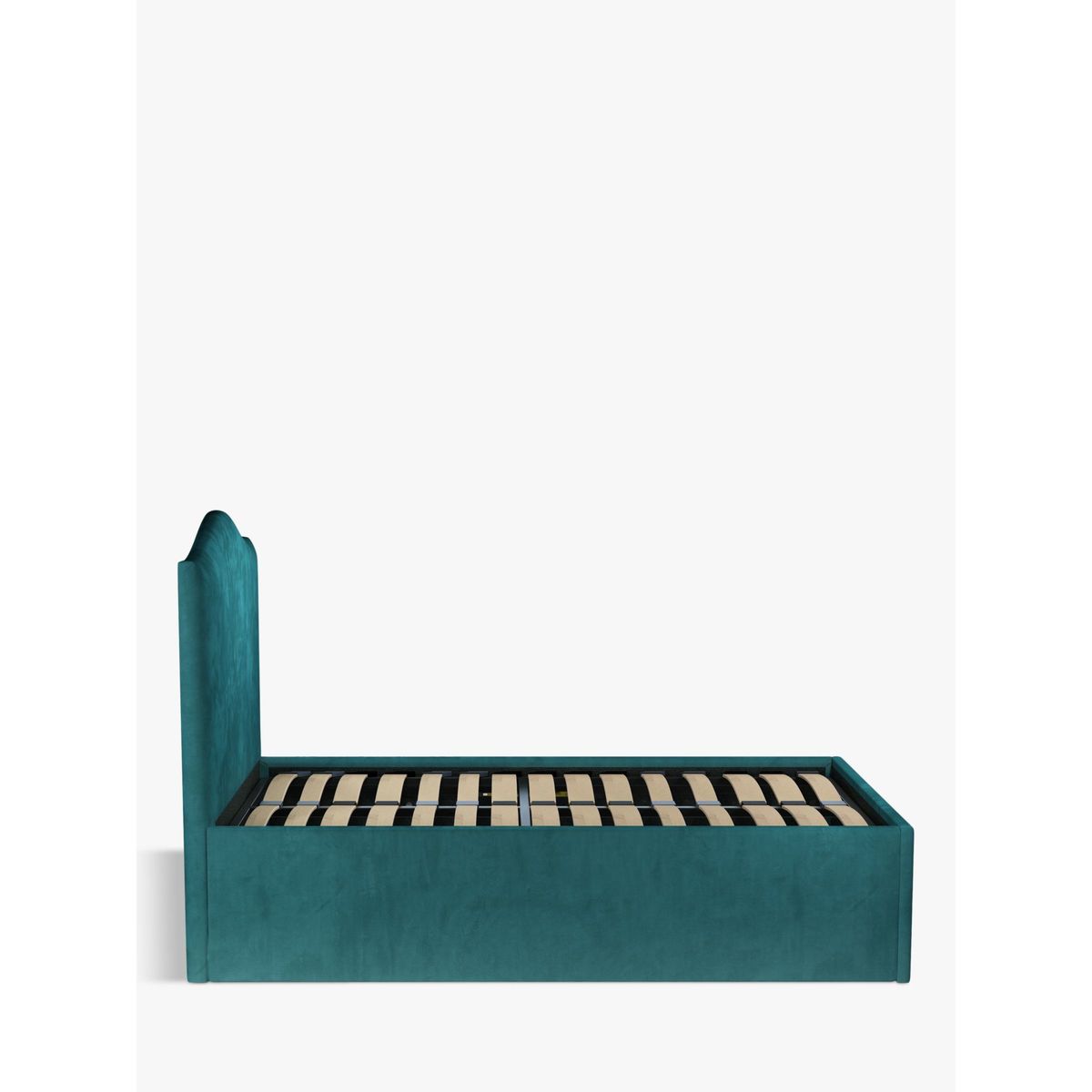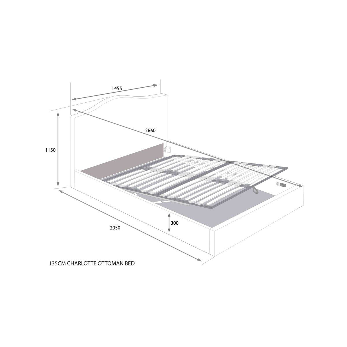 With a gently curved headboard and practical storage base, our Charlotte ottoman bed frame is ideal for smaller bedrooms. A handle and hydraulic arms facilitate an easy manual lift-up and there's plenty of storage space for spare linens or extra clothes. There are also supportive sprung slats in the base. Smart Slats This bed frame is designed with wider slats at the shoulders, lumbar and feet, that provide maximum support for your mattress so that you experience perfect spinal alignment while you sleep. Standard slat caps are black so we have added grey slat caps to ensure that you know where to place the wider slats. Our Band A fabric, Saga is woven with man-made fibres, making it exceptionally durable and versatile. Our Our Band A fabric, Topaz is woven to offer a linen-effect feel, and is available in a versatile palette of colours. Our Band B fabric, Erin is woven with man-made fibres to create a beautifully soft yarn. This tactile, velvet-style chenille fabric exhibits a two-tone look in different lights. Our Band B fabric, Opulence offers a luxurious, soft-touch. This velvet-feel fabric is available in a rich colour palette. Our Band B fabric, Mole is a woven wool-blend that's soft and cosy. Piling and bobbling may occur naturally over time. Our Band B fabric, Relaxed Linen is durable, resilient and versatile, woven from man-made and natural fibres Our Band C fabric, Marylamb is woven with a mix of man-made and natural fibres for a tactile and soft-touch feel. Want to see it first? You may want to see and get a feel for the furniture in one of our shops before ordering. We'll be able to tell you where the range you'd like to view is on display.