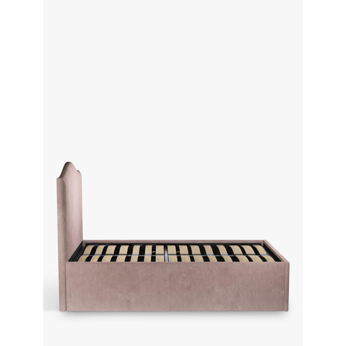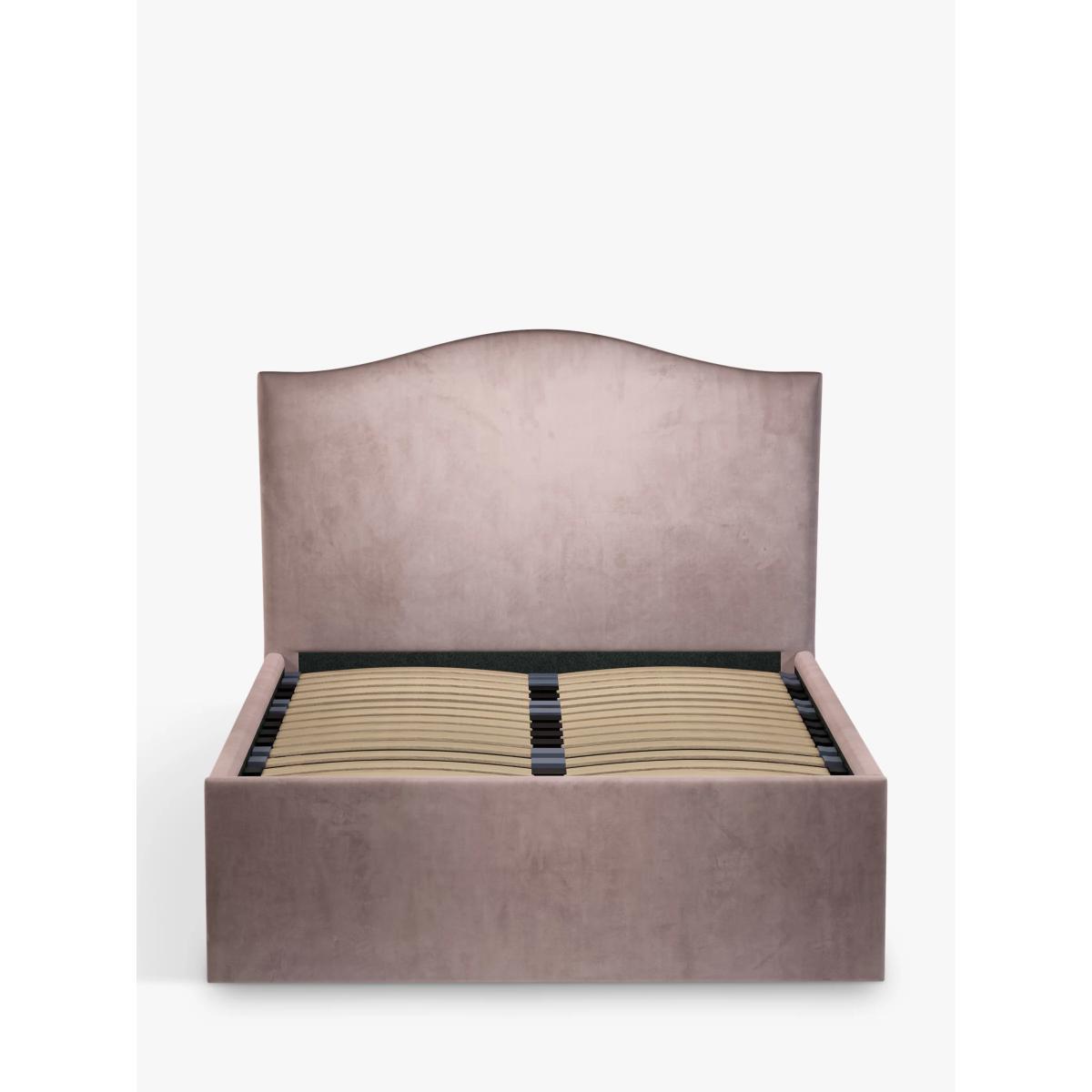 With a gently curved headboard and practical storage base, our Charlotte ottoman bed frame is ideal for smaller bedrooms. A handle and hydraulic arms facilitate an easy manual lift-up and there's plenty of storage space for spare linens or extra clothes. There are also supportive sprung slats in the base. Smart Slats This bed frame is designed with wider slats at the shoulders, lumbar and feet, that provide maximum support for your mattress so that you experience perfect spinal alignment while you sleep. Standard slat caps are black so we have added grey slat caps to ensure that you know where to place the wider slats. Our Band A fabric, Saga is woven with man-made fibres, making it exceptionally durable and versatile. Our Our Band A fabric, Topaz is woven to offer a linen-effect feel, and is available in a versatile palette of colours. Our Band B fabric, Erin is woven with man-made fibres to create a beautifully soft yarn. This tactile, velvet-style chenille fabric exhibits a two-tone look in different lights. Our Band B fabric, Opulence offers a luxurious, soft-touch. This velvet-feel fabric is available in a rich colour palette. Our Band B fabric, Mole is a woven wool-blend that's soft and cosy. Piling and bobbling may occur naturally over time. Our Band B fabric, Relaxed Linen is durable, resilient and versatile, woven from man-made and natural fibres Our Band C fabric, Marylamb is woven with a mix of man-made and natural fibres for a tactile and soft-touch feel. Want to see it first? You may want to see and get a feel for the furniture in one of our shops before ordering. We'll be able to tell you where the range you'd like to view is on display.