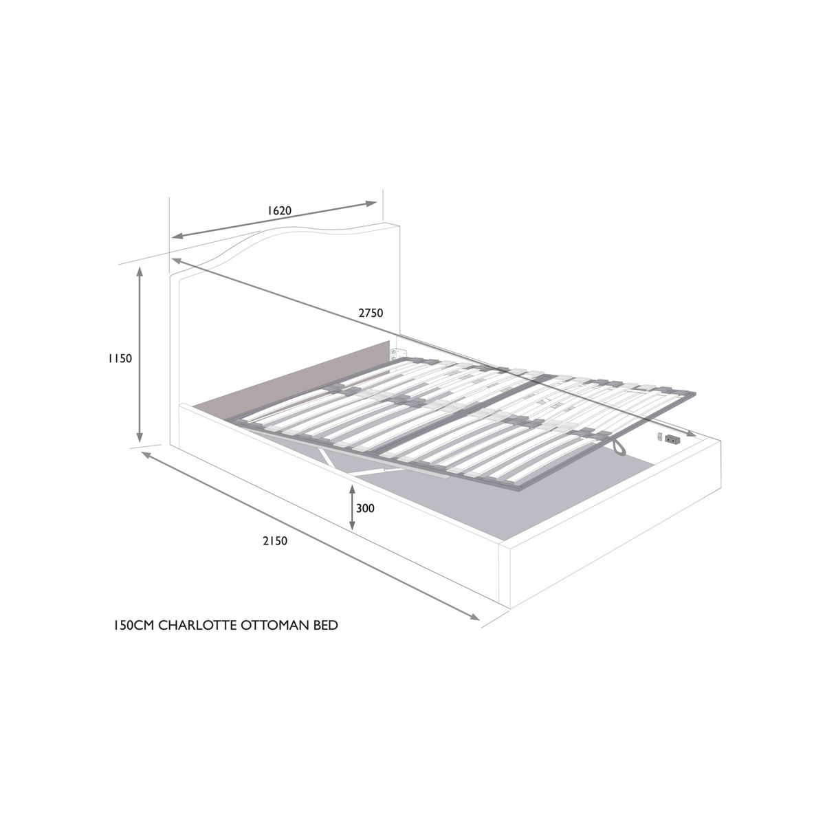 With a gently curved headboard and practical storage base, our Charlotte ottoman bed frame is ideal for smaller bedrooms. A handle and hydraulic arms facilitate an easy manual lift-up and there's plenty of storage space for spare linens or extra clothes. There are also supportive sprung slats in the base. Smart Slats This bed frame is designed with wider slats at the shoulders, lumbar and feet, that provide maximum support for your mattress so that you experience perfect spinal alignment while you sleep. Standard slat caps are black so we have added grey slat caps to ensure that you know where to place the wider slats. Our Band A fabric, Saga is woven with man-made fibres, making it exceptionally durable and versatile. Our Our Band A fabric, Topaz is woven to offer a linen-effect feel, and is available in a versatile palette of colours. Our Band B fabric, Erin is woven with man-made fibres to create a beautifully soft yarn. This tactile, velvet-style chenille fabric exhibits a two-tone look in different lights. Our Band B fabric, Opulence offers a luxurious, soft-touch. This velvet-feel fabric is available in a rich colour palette. Our Band B fabric, Mole is a woven wool-blend that's soft and cosy. Piling and bobbling may occur naturally over time. Our Band B fabric, Relaxed Linen is durable, resilient and versatile, woven from man-made and natural fibres Our Band C fabric, Marylamb is woven with a mix of man-made and natural fibres for a tactile and soft-touch feel. Want to see it first? You may want to see and get a feel for the furniture in one of our shops before ordering. We'll be able to tell you where the range you'd like to view is on display.