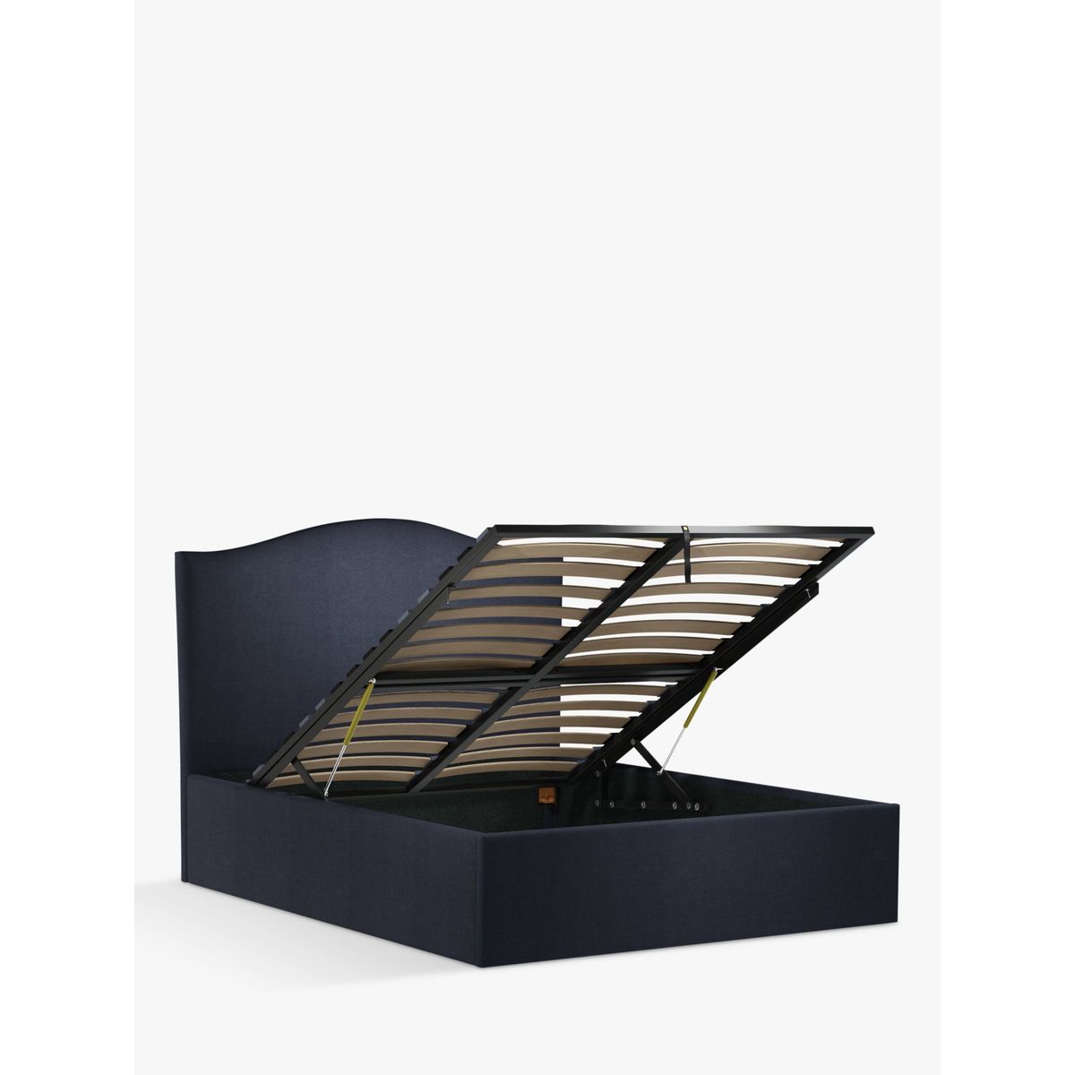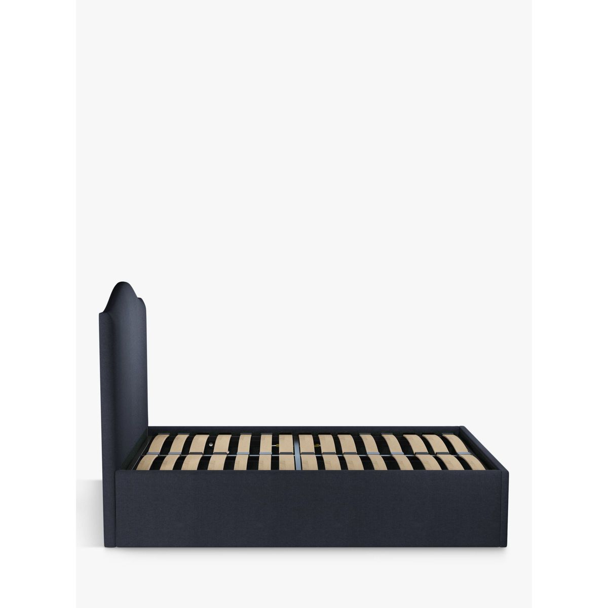 The Charlotte ottoman storage bed frame has a timeless, traditional design that's enhanced thanks to its elegantly shaped headboard. Its handle and hydraulic arms facilitate an easy manual lift-up, and reveals a functional and spacious storage space for linens. Sprung slats provide additional support for you and your mattress. Smart Slats This bed frame is designed with wider slats at the shoulders, lumbar and feet, that provide maximum support for your mattress so that you experience perfect spinal alignment while you sleep. Standard slat caps are black so we have added grey slat caps to ensure that you know where to place the wider slats.