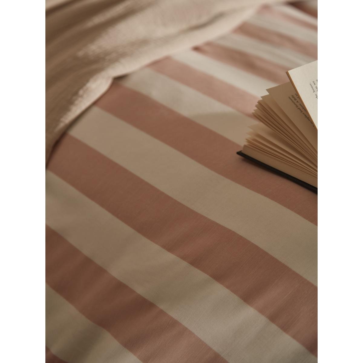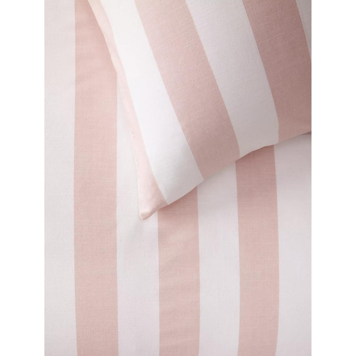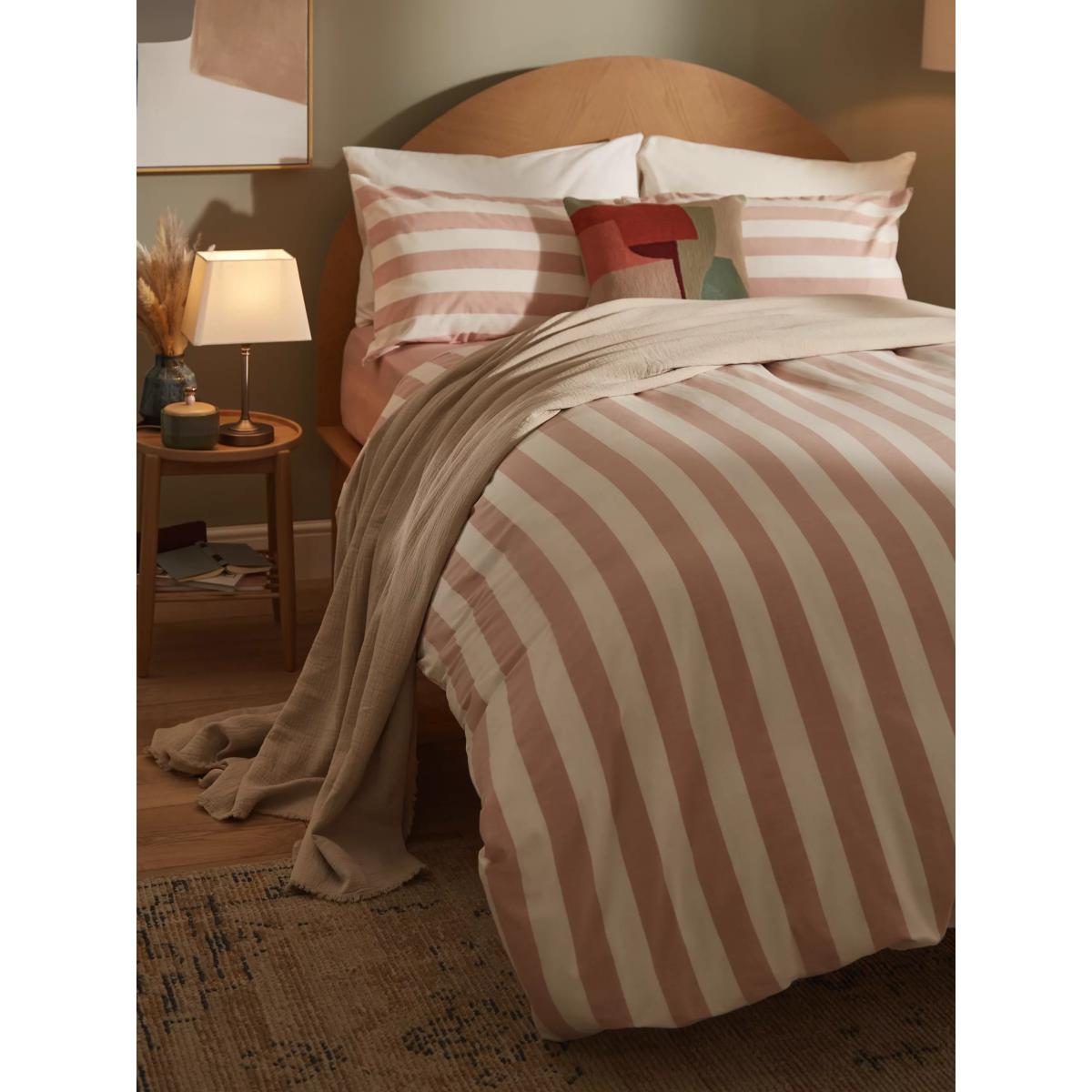 Add a relaxing and spring-fresh ambience to your bedroom with this pretty, pastel-striped bedding. The 100% cotton fabric is naturally breathable, keeping you cool and comfortable throughout the night. The single set comes with one standard pillowcase, while the double, king and super king sets come with two standard pillowcases. Have you thought about sheeting? Shop here. Bedding sizes To fit duvet/pillow size (cm) Standard pillowcase, L75 x W50cm Single duvet cover, L200 x W135cm Double duvet cover, L200 x W200cm King duvet cover, L220 x W225cm Super king duvet cover, L220 x W260cm