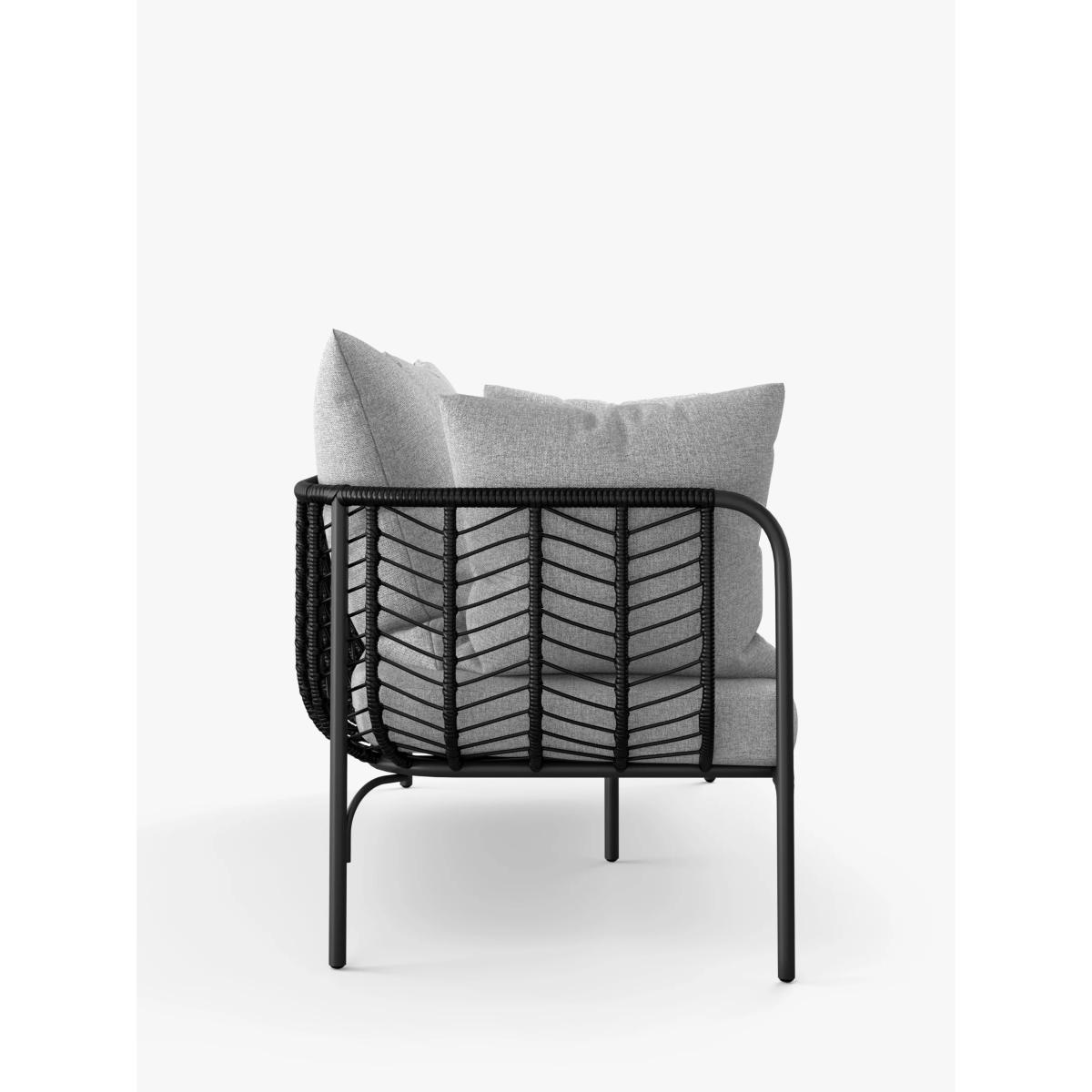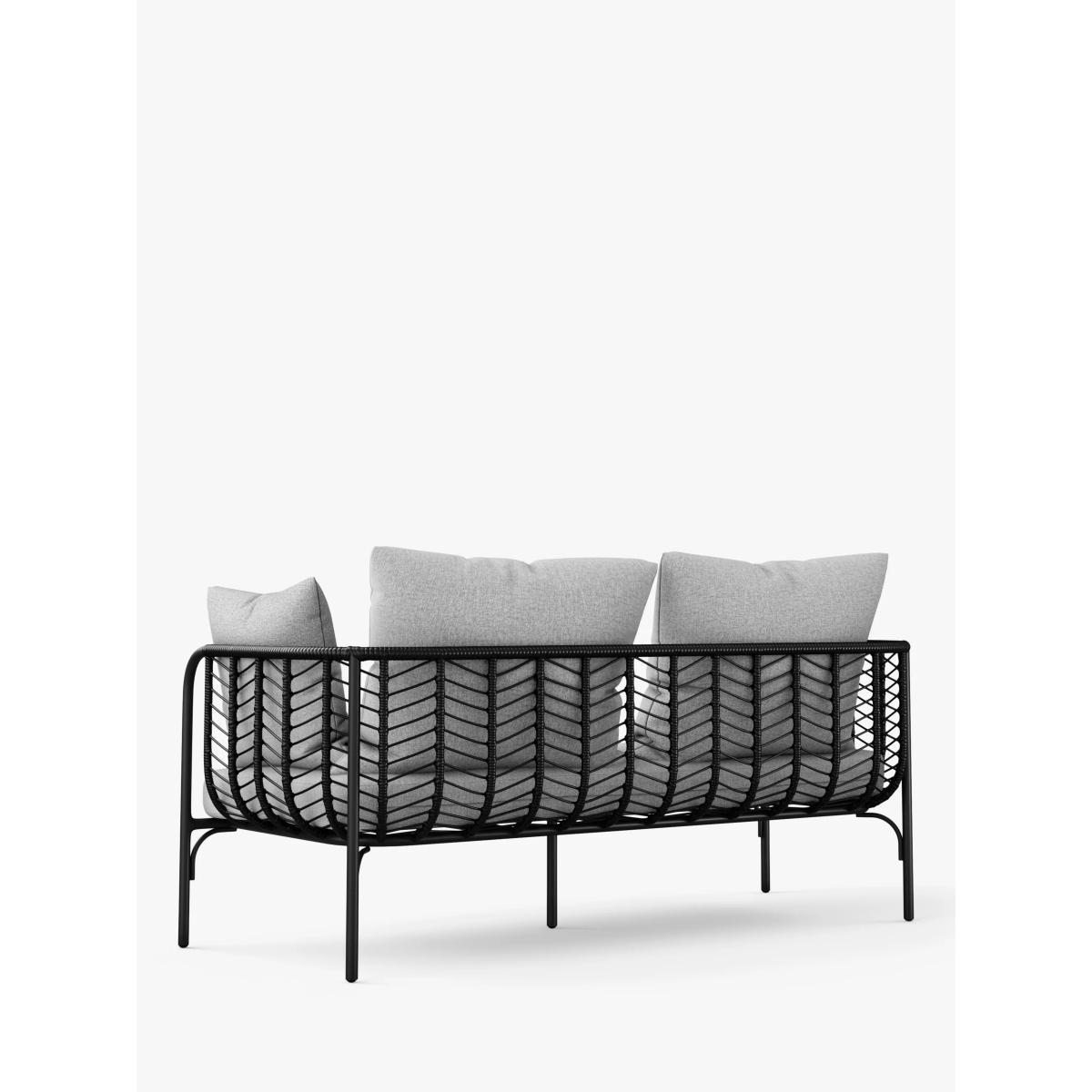 Traditional rattan garden furniture gets an update with our Chevron range. A contemporary chevron pattern is hand-woven with a synthetic weave on powder-coated metal frames. This makes the range both durable and weather-resistant so you can even leave it outside throughout the year. Make sure you bring in the cushions, which are resistant to light rain showers only. The sturdy legs and frame are able to withstand a weight of 40 stone (254kg), exceeding the industry standard. The robust design allows the rattan to form its distinctive shape, with the weave ensuring comfort and support. The cushions can be unzipped and are washable, with care. The sofa arrives fully assembled, ready for immediate use. Pair it up with other Chevron garden furniture to create a matching set for a patio or conservatory. Key features: Hand-woven synthetic rattan design Lightweight and durable aluminium frame Shower-resistant and washable cushioning Arrives fully assembled Comes with: 1 seat cushion, 2 back cushions and 2 side cushions Matches garden furniture in our Chevron range Want to see it first? You may want to see and get a feel for the product in one of our shops before ordering. We'll be able to tell you where the range you'd like to view is on display.