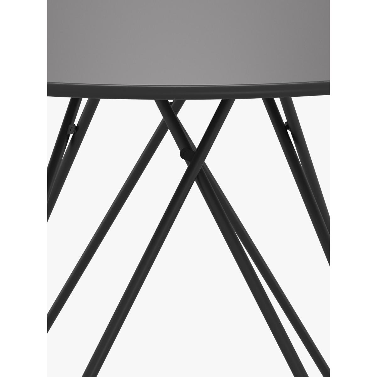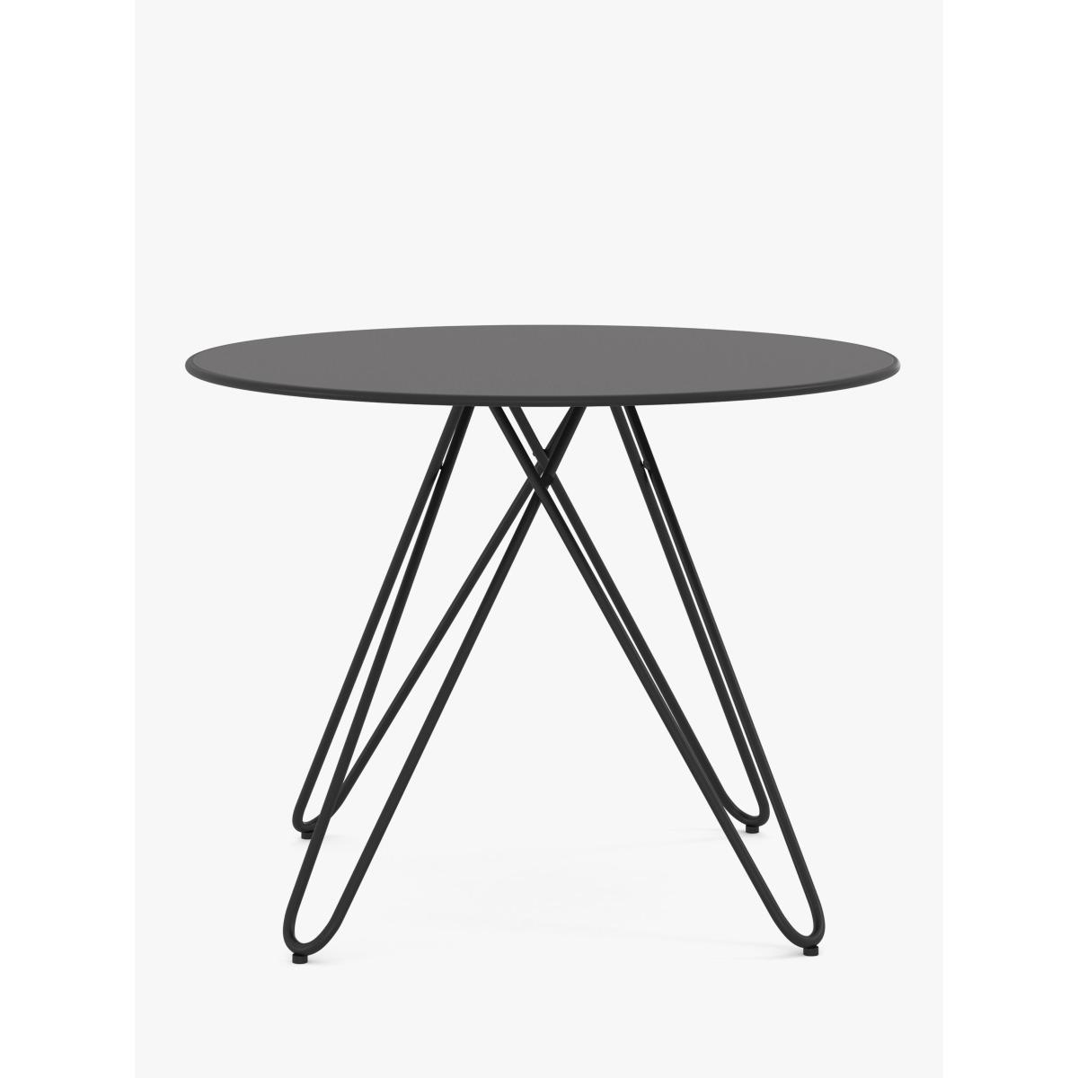 Our contemporary Chevron range of garden furniture is made with powder-coated metal frames. This makes the range both durable and weather-resistant so you can even leave it outside throughout the year. This Chevron dining table has a sturdy steel frame and a round shape that comfortably sits up to four people. Key features: Round garden table seats up to 4/li> Robust steel design Matches garden furniture in our Chevron range Want to see it first? You may want to see and get a feel for the product in one of our shops before ordering. We'll be able to tell you where the range you'd like to view is on display.