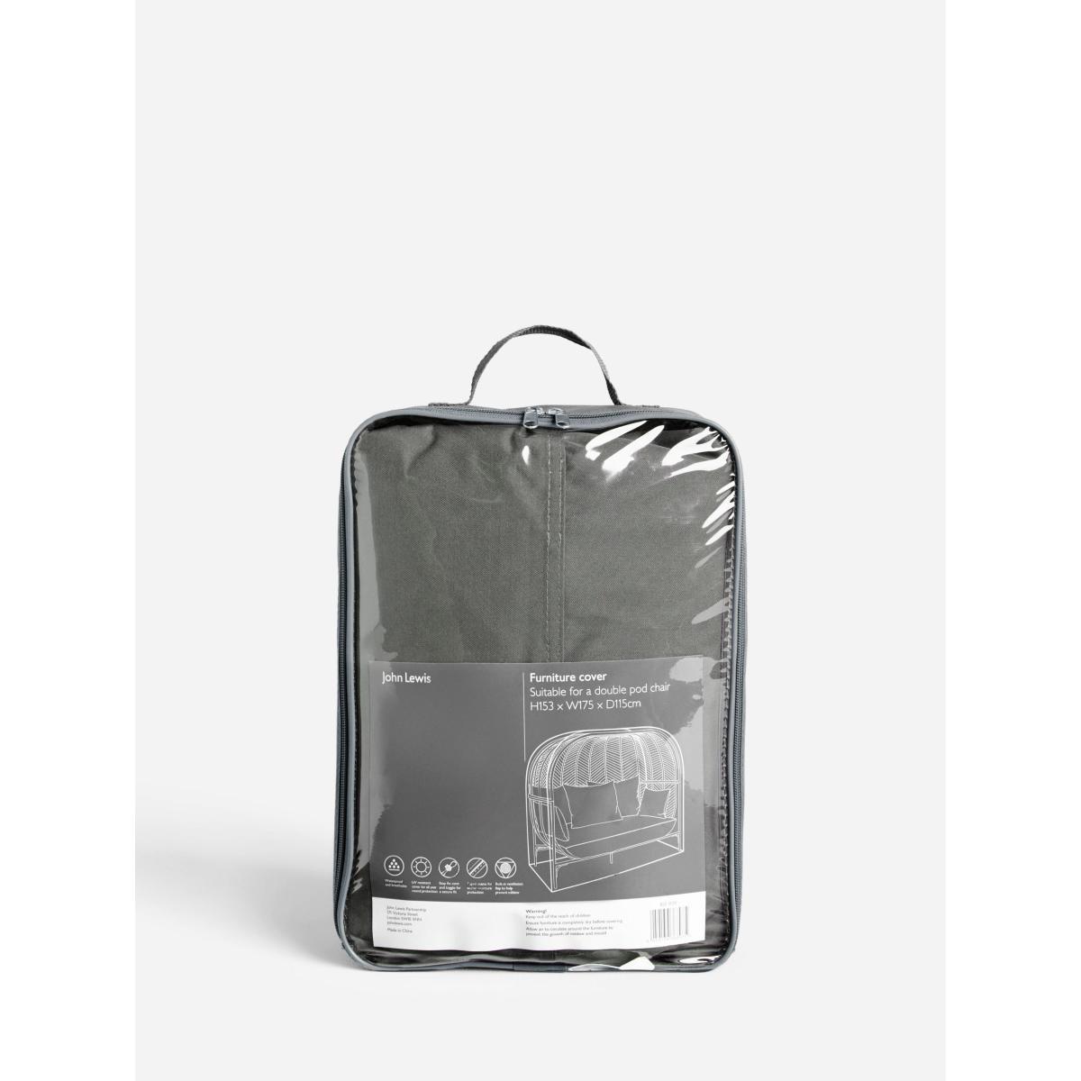 A cover for the John Lewis & Partners Chevron 2-Seat Double Garden Sofa Pod. It's waterproof with taped seams for better protection yet breathable with built-in ventilation to prevent mildew. The cover comes with a cord and toggle for an easy, secure fit. Made from strong 600. D polyester with UV sun protection for all-year-round use, it's packaged in a zip-up bag. Want to see it first? You may want to see and get a feel for the product in one of our shops before ordering. We'll be able to tell you where the range you'd like to view is on display.