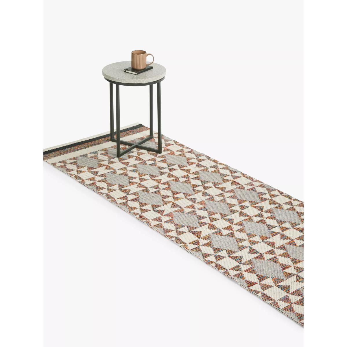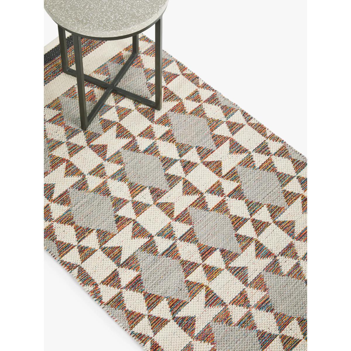 An eye-catching choice thanks to the vibrant, geometric print that runs throughout, this rug is made using a cotton-blend for a soft feel underfoot. With a flat finish making this rug ideal for busy, high-traffic rooms, the materials in this rug have been woven together by hand to create a strong construction. About your new rug We recommend. It prevents your rug from moving underfoot and protects against colour transfer to the floor Natural fibres may shed. This will reduce over time, and shouldn't affect your rug's lifespan or performance When vacuuming your rug, use suction only. Rotating brushes may damage the fibres Blot any spills with a clean, dry cloth. Do not rub or use harsh detergents. Textile backed