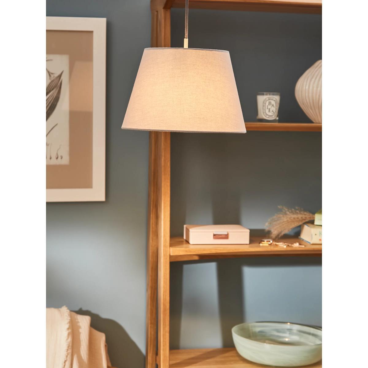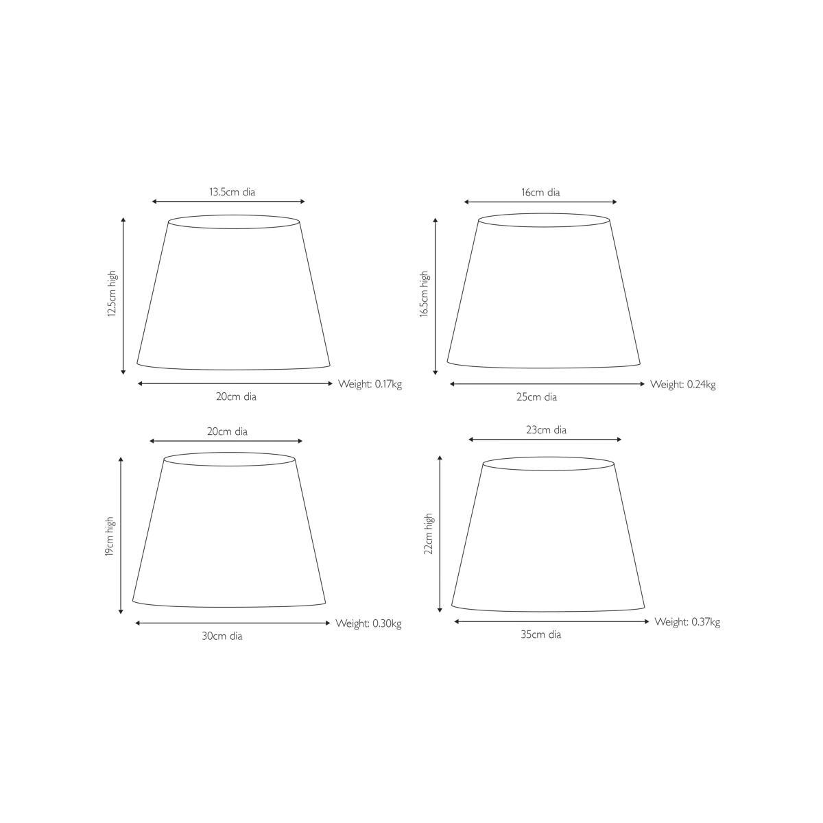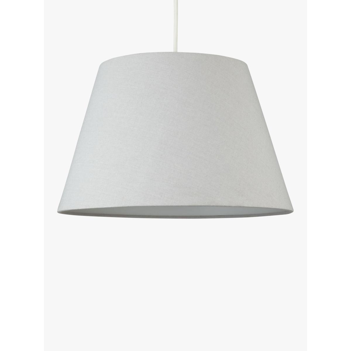 Brilliant for both ceiling and table lights, this lampshade's classic, simple design means it looks great almost anywhere. The shade gently diffuses light thanks to its fine quality fabric body, and it's available in a range of natural colours to suit every colour scheme. This shade is complete with a reversible gimble and includes a plastic reducer ring. Dimensions: Dia.20cm: H12.5 x Top Dia.13.5 x Bottom Dia.20cm Dia.25cm: H16.5 x Top Dia.16 x Bottom Dia.25cm Dia.30cm: H19 x Top Dia.20 x Bottom Dia.30cm Dia.35cm: H22 x Top Dia.23 x Bottom Dia.35cm Good to know Our straight-sided, or drum lampshades are well-paired with modern lamp bases, while tapered lampshades work well with classic style bases. You can shop our range of lamp bases