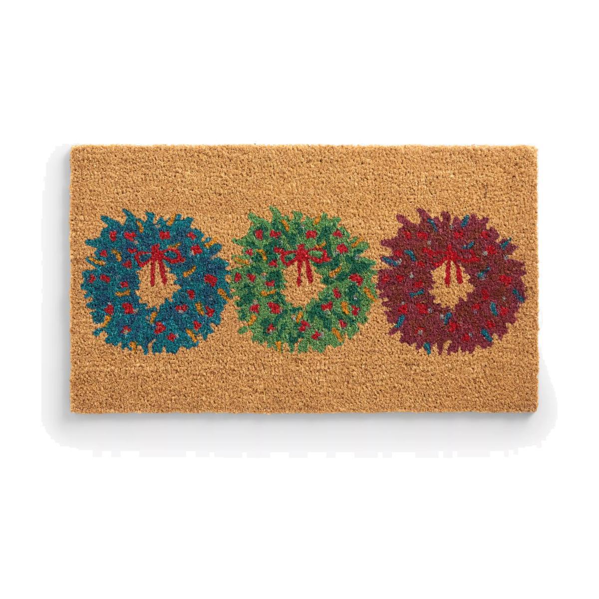 Add some seasonal charm to your front door or porch with our Christmas Wreath Trio door mat.
