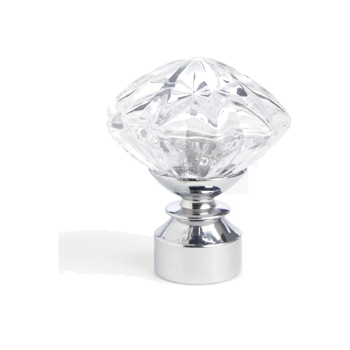 Made in the UK A decorative steel and glass curtain finial. Suitable for poles with a 28mm diameter.