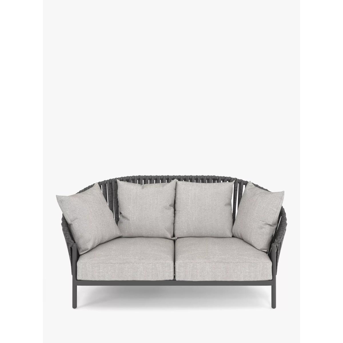 Our contemporary Chunky Weave range is designed by Partners at our in-house Design Studio. The garden and conservatory furniture features rope-like vertical lines woven onto sturdy frames. Easy to maintain, the weather-resistant range has lightweight yet robust aluminium frames and an attractive curved synthetic weave. Seating cushions and backrest scatter cushions ensure comfortable support. Make sure you bring in the cushions, which are resistant to light rain showers only. Good to know: The range is durable and for outdoor use all year round. As a precaution, we recommend you cover the furniture during adverse weather. Key features: 2-seater garden sofa Robust weather-resistant aluminium frame Synthetic rope-like design Fully assembled for immediate use Shower-resistant seat cushions and 4 backrest scatter cushions Team it with furniture from our Chunky Weave range Want to see it first? You may want to see and get a feel for the product in one of our shops before ordering. We'll be able to tell you where the range you'd like to view is on display.