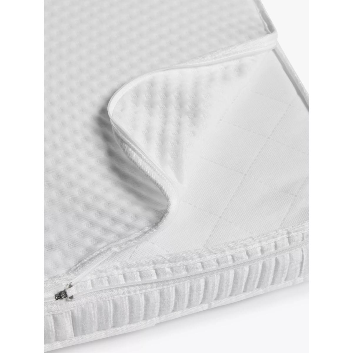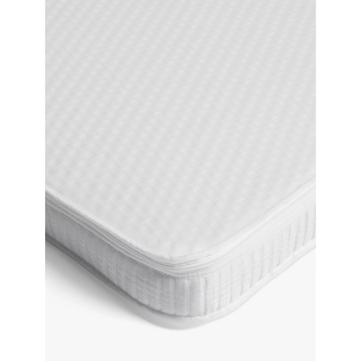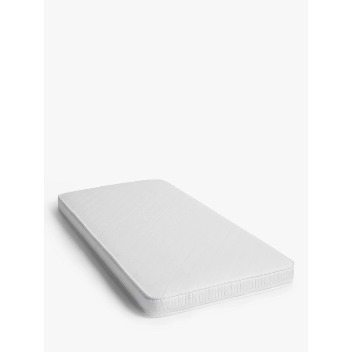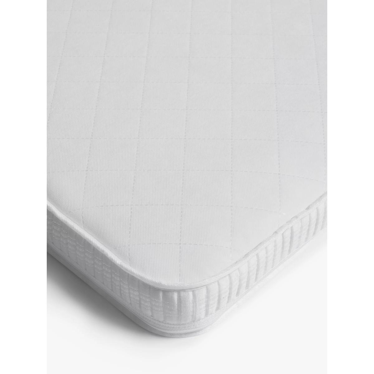 Comfortable yet supportive, this Classic Sprung mattress is a great choice for your baby. Ensuring a good night's sleep for your baby in the early years is key to their growth and development (and dare we say it, your sanity). With wonderful features like breathable and supportive baby safe fibres, natural anti-allergenic properties and a firm but comfortable sprung base, this cot mattress helps ensure that your baby gets the good quality sleep that they need. The firm sprung base will ensure your little one will be well supported as they sleep while the soft-touch, the knitted cover provides better airflow to help keep your baby at a comfortable, safe temperature. Plus the baby-safe fibre interior makes the mattress breathable for your peace of mind. For a healthier, cleaner sleep surface, this cot mattress is treated with Actipro. 100% natural, Actipro helps guard against allergens - ideal if your baby has asthma or allergies. Ever practical, there's no need to worry about those inevitable accidents thanks to the removable cover. The cover can be zipped off and machine washed up to 60°C, whilst the waterproof, wipeable PVC cover protects the mattress core. Key Features: Perfect for babies from birth up to 5 years old Firm and comfortable sprung base Breathable and supportive baby-safe fibre Soft-touch, breathable knitted cover Natural Actipro treatment protects against allergens Anti-allergenic - ideal for babies with allergies or asthma Waterproof, wipeable cover keeps the mattress core clean and makes it easy to manage accidents Single-sided - no need to turn Easy to keep clean and fresh - cover is machine washable at 60°C Good things to note when buying your mattress: Always check the mattress size you’ve bought is the correct one for the size of your cot/cotbed before removing from the packaging. Please ensure to always store the mattress flat or in the cot/cotbed, not upright. Due to the nature of shipping, (once the packaging has been removed and safely disposed of) please allow 24-48 hours for the mattress to settle before use. Please check that any fitted sheets used are the correct size for the mattress. Sheets that are too tight may compress the mattress, leaving a larger than is safe gap between the mattress and the cot. This also applies to sheets that may have shrunk in the wash. Always position your mattress in the centre of your cot so that there is no more than a 30mm gap between the cot and the mattress on the side, top, or bottom, once it has fully expanded. This allows the mattress to settle in use and leaves space for bedding. A gap on any side under 30mm is considered safe and acceptable.