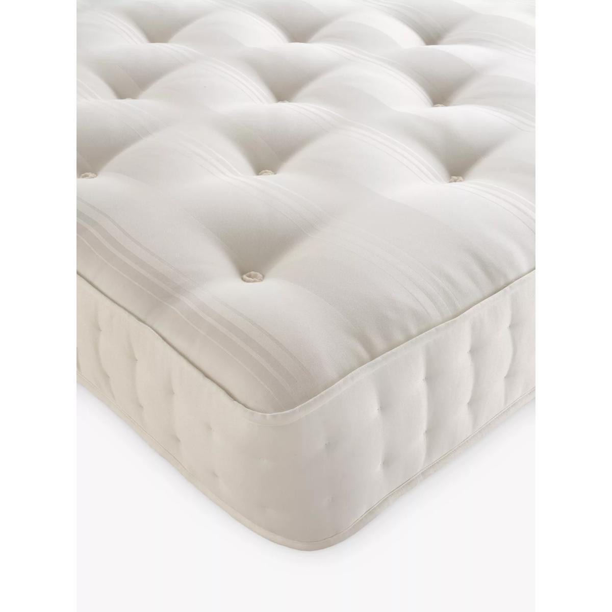 Made in the UK We’ve upgraded and reinvented our Classic Collection wool mattresses with a design that’s kinder to the environment, and also provides even more support and pressure relief. Made in the UK, these mattresses are made with a ReActive™ pocket spring system alongside luxurious, hand-tufted fillings, including British wool which is traceable to Waitrose and Red Tractor assured farms. Together with recycled fibres and a strong, side-stitched border, these mattresses provide even, responsive support for a luxurious feel and a deeper night’s sleep. There are 1,200 springs in the king size model. Red Tractor traceable wool from Waitrose farms The British wool in these mattresses is responsibly sourced from our Waitrose farms, as well as farms assured by Red Tractor Food and Farming Standards, so we know exactly where it’s coming from. Our Partnership ensures these farmers get a fair price for the wool that they produce. Plus, fleece wool has natural temperature regulating properties, so while it feels cosy, soft and springy, it also helps to keep your sleep environment cool and fresh. ReActive™ pocket spring system The ReActive™ pocket springs in this mattress are produced in an individual, tightly coiled format, so they respond and react as you move throughout the night and keep your body weight evenly distributed. Providing precise pressure relief, they also help to maintain the structure of the mattress. Chemical free sleep surface Traditionally, some manufacturers add chemicals to mattresses in order for them to be fire retardant and compliant with regulations. In our quest to be as kind to the environment as possible, our Classic Wool Collection mattresses are naturally fire retardant and free from traditional chemical flame retardant treatments. Firm tension This mattress offers a firmer feel and provides support from head-to-toe. Try before you buy This is an important purchase and it’s worthwhile to try your choice of mattress in one of our shops to make sure it's right for you. Our store Partners will be able to tell you more about its benefits, and recommend options based on your needs.
