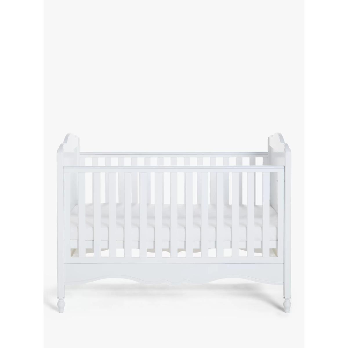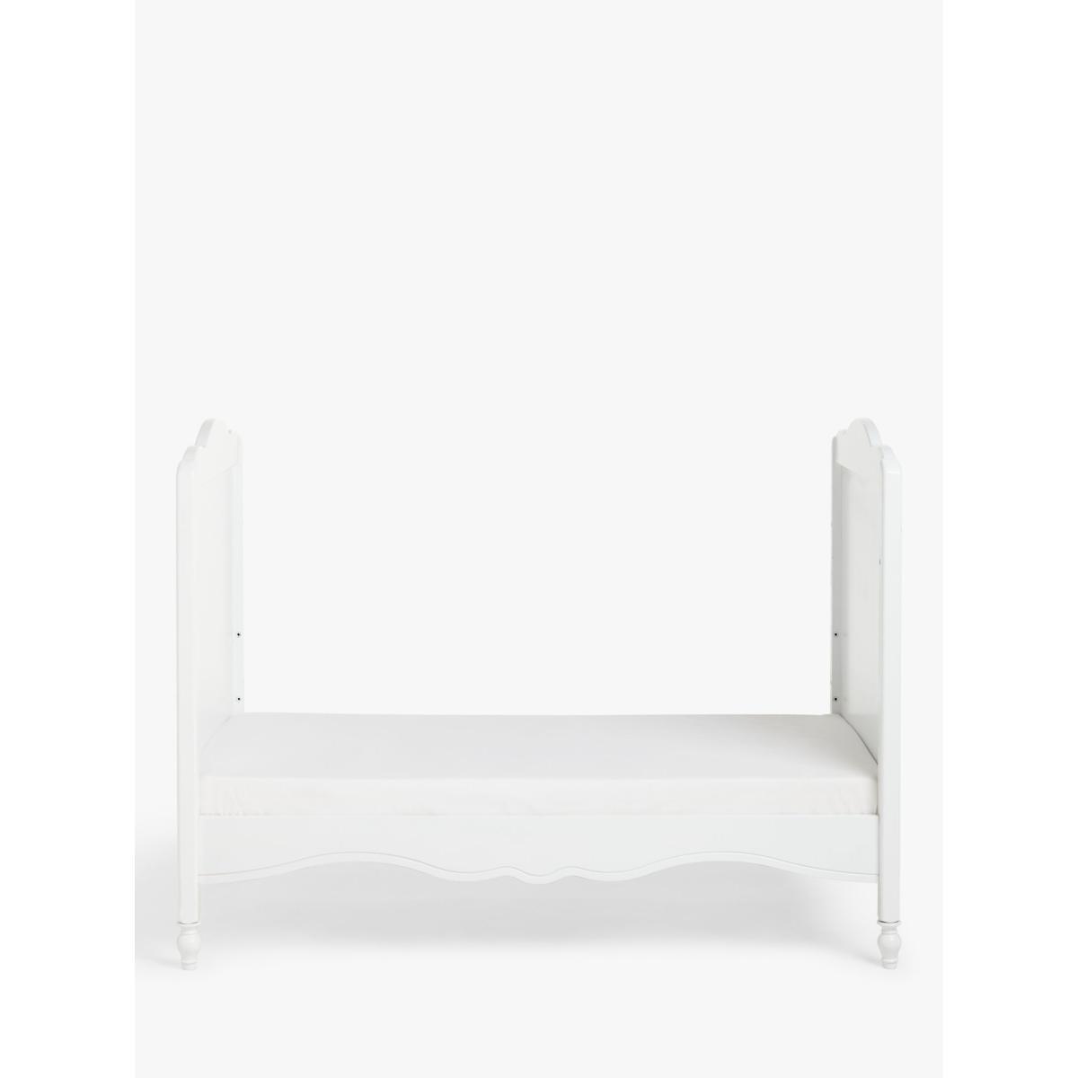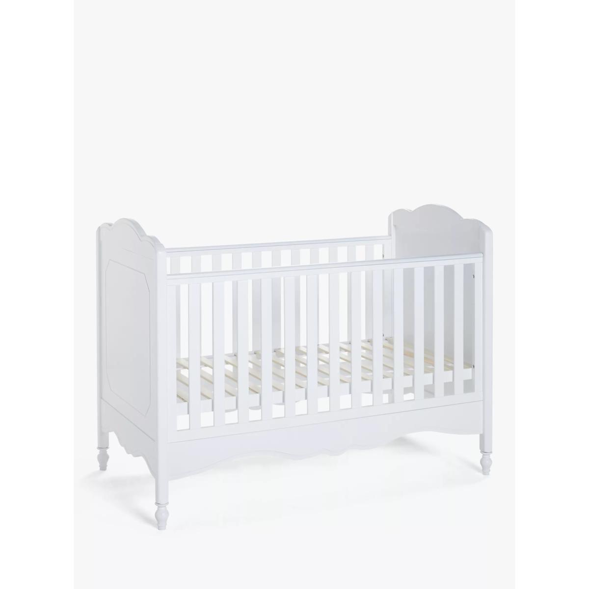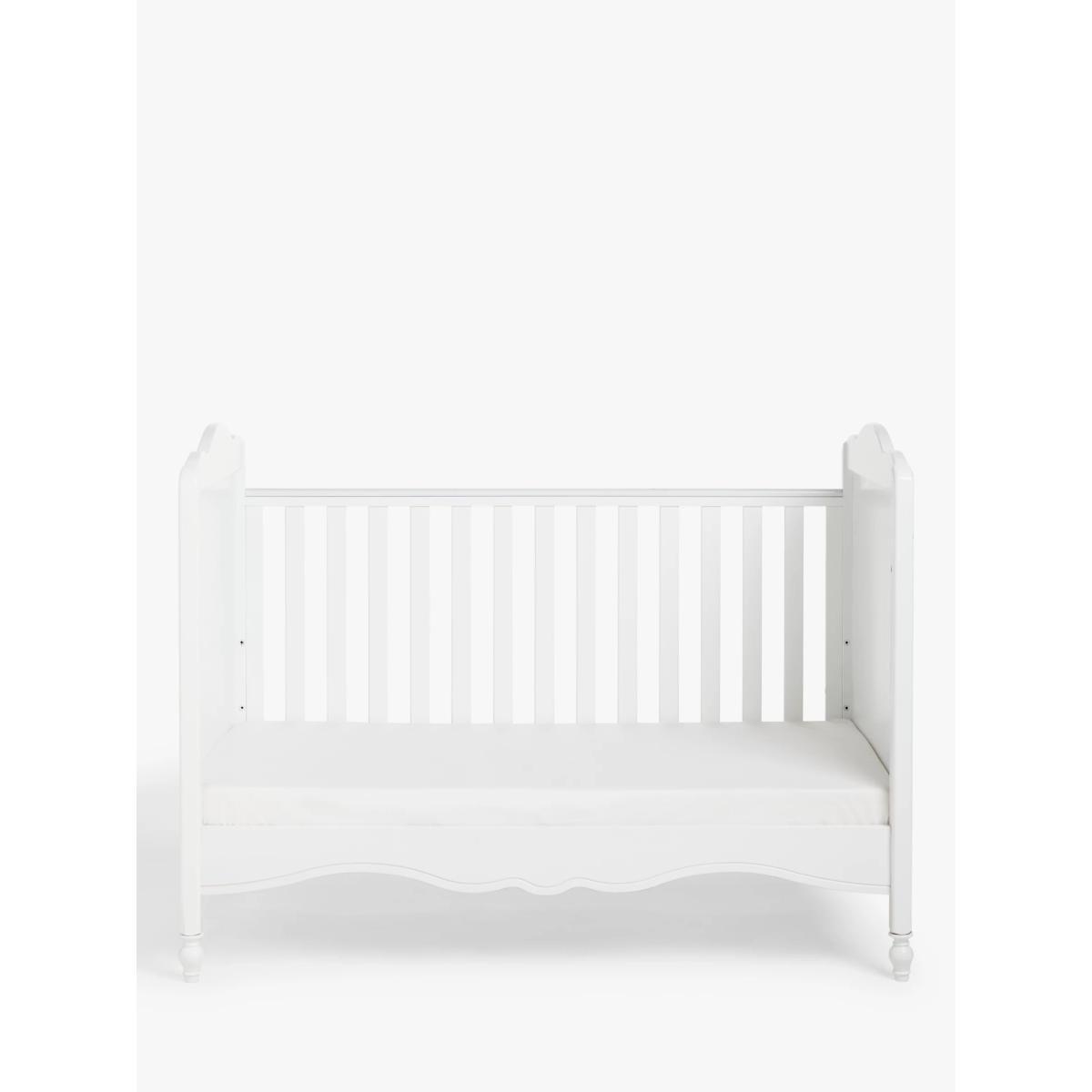 Designed with a cloud-like silhouette, our John Lewis & Partners Cloud cotbed embodies the idea of peaceful sleep for your little one. Made from FSC accredited pine wood, it offers a classic style with ornate feet and handles that provides a traditional feel and look. Able to grow with your child, it has 3 mattress base positions that can be adjusted to suit as your child goes from newborn to toddler. It can also be converted into a toddler bed. Pair with the matching Cloud dresser and wardrobe to complete your nursery. This cot bed requires a standard 140 x 70cm mattress (sold separately).