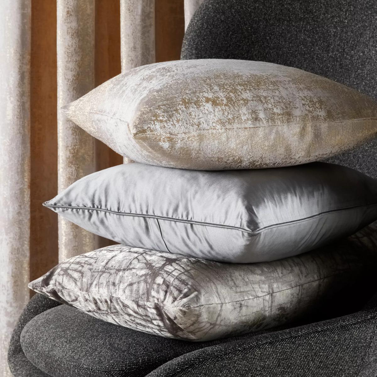 This elegant cushion has a beautiful gold textured sheen, reminiscent of a distressed plaster surface.