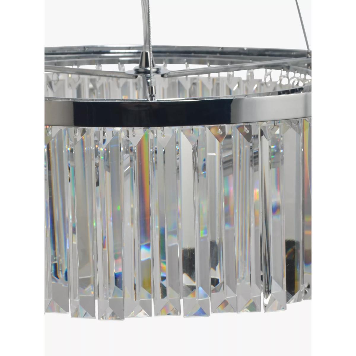 A contemporary re-design of the classic crystal chandelier, we've made this ceiling light with a double circle of faceted rod crystals. They're designed to refract light and enhance a bright glow when the light is switched on, but look equally as impressive when the light is switched off. Mounted on a polished chrome ring, it's height-adjustable for perfect positioning in your space and strong steel cables support its weight. A distinctive fitting that will draw the eye in your home.