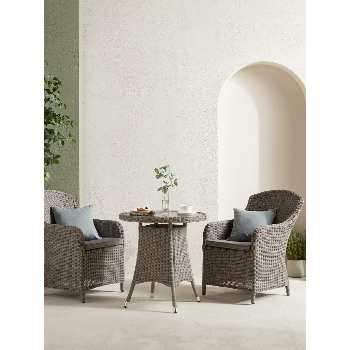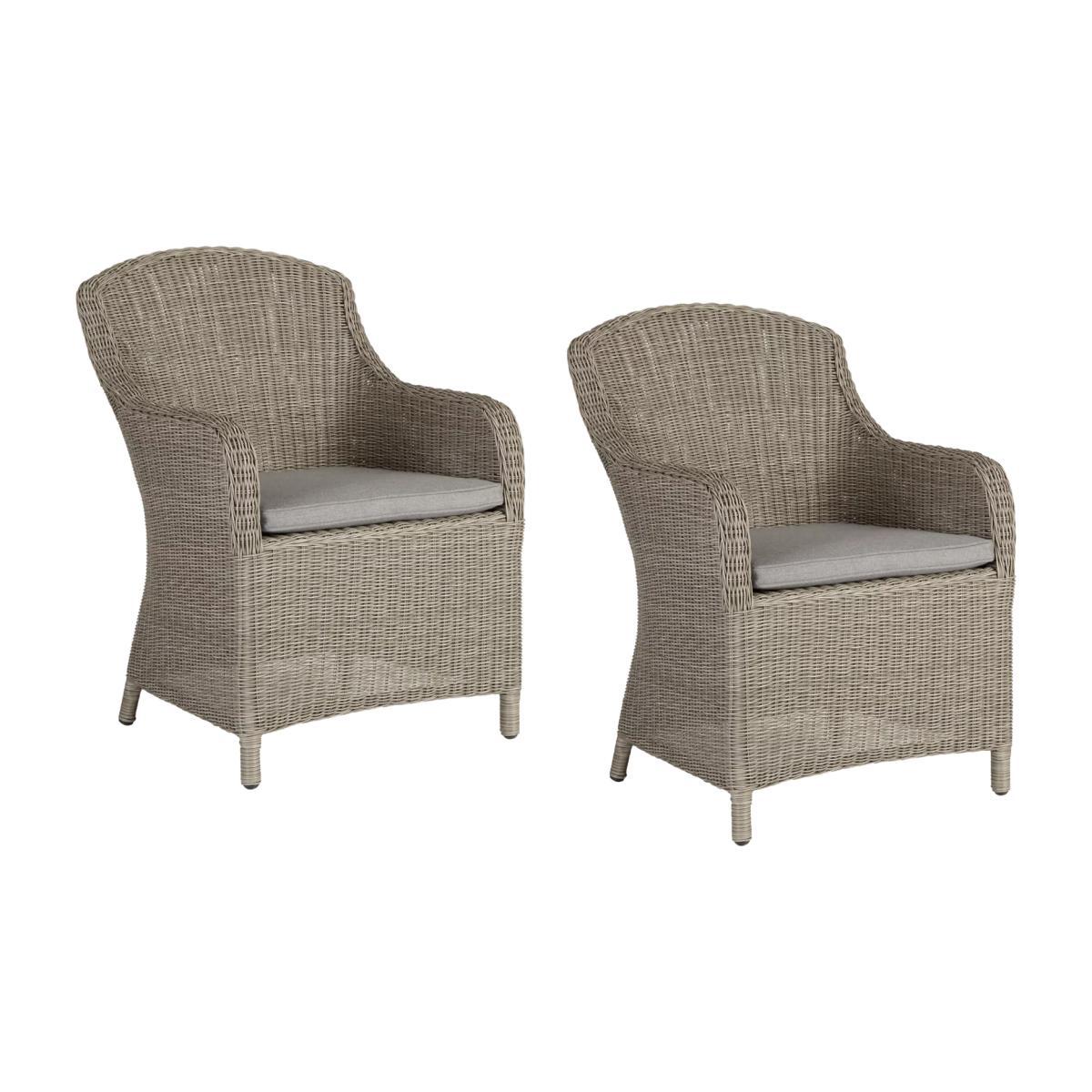 A pair of Deluxe Garden Chairs from our Dante range, made with a sophisticated curved design, for comfortable dining or lounging. Team with a dining table from our Dante range. Our Dante range of handwoven furniture is weather-resistant and suitable for gardens and conservatories. In a traditional style, the synthetic wicker has a natural finish and is woven onto metal frames for durability and easy maintenance. Dante round wicker is a high-specification resin requiring an intricate hand-woven technique, taking days to produce to the finest quality. Seating in the Dante range has robust frames and each chair is tested to withstand 20 stone (127kg), exceeding the industry standard. Key features: Pair of Deluxe dining and lounging armchairs Classic synthetic wicker design 3mm round weave Aluminium frames Robust frames tested to withstand 20 stone, exceeding the industry standard Shower-resistant seat pads included Easy to clean and maintain Want to see it first? You may want to see and get a feel for the product in one of our shops before ordering. We'll be able to tell you where the range you'd like to view is on display. Choose the perfect outdoor furniture We have a vast selection of furniture for you to choose from which will suit the home or garden. The majority of our furniture ranges have been hand woven using a synthetic wicker. The thinner the weave, the longer it takes for the skilled workers to complete. All weave types are durable so they’ll last throughout the seasons All woven outdoor furniture is UV protected so it will not fade in direct sunlight All woven outdoor furniture is easy to maintain, simply wipe clean using warm water Flat A weave of various widths which offers incredible value for money Half round More detailed with a 3D effect, the half round is a round weave in half which displays a wicker appearance on the top and hollowed underside Double half round A double strand of half round, this is a wider width of weave which achieves an expensive appearance Round weave A very tight weave which is available in various widths, from 2mm to 5mm Rope A selection of our ranges have been made using rope. The yarn is made up of 10,000 (approx) woven strands with a double core for extreme strength, does not attract mould even if wet for a long time and is UV resistant.