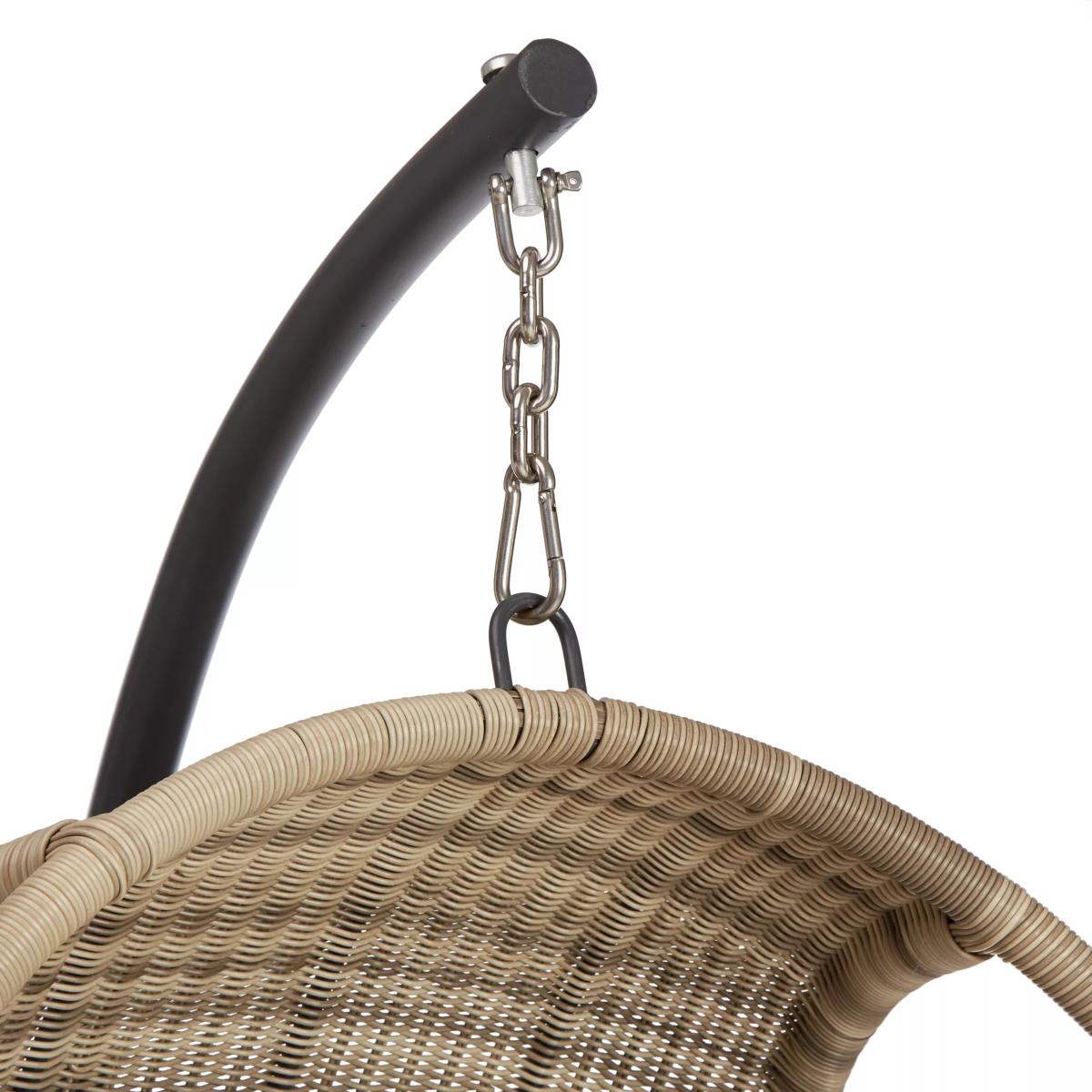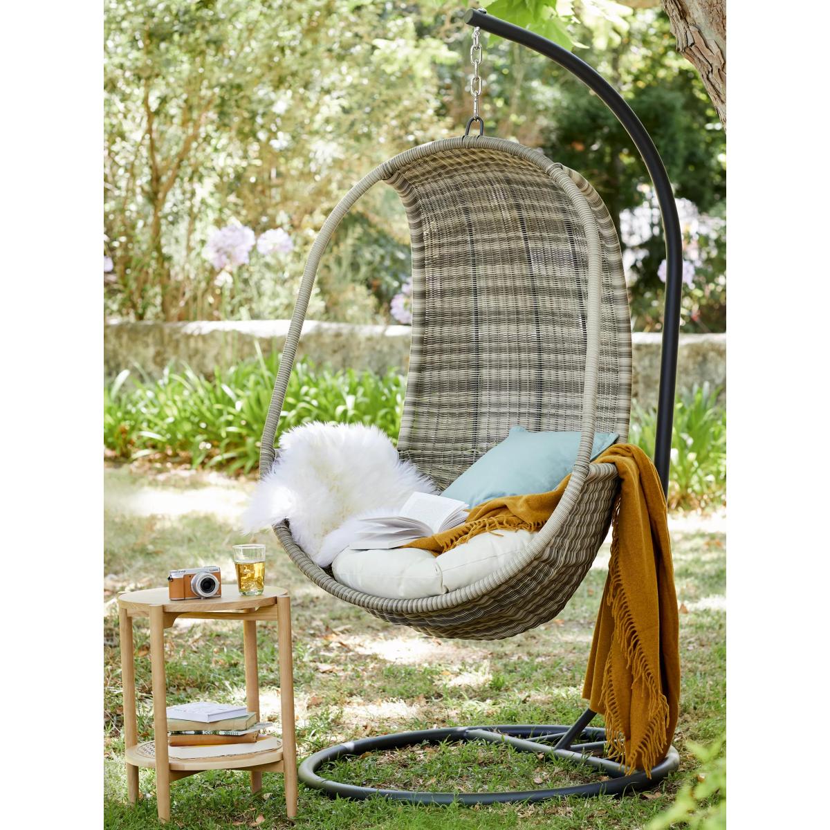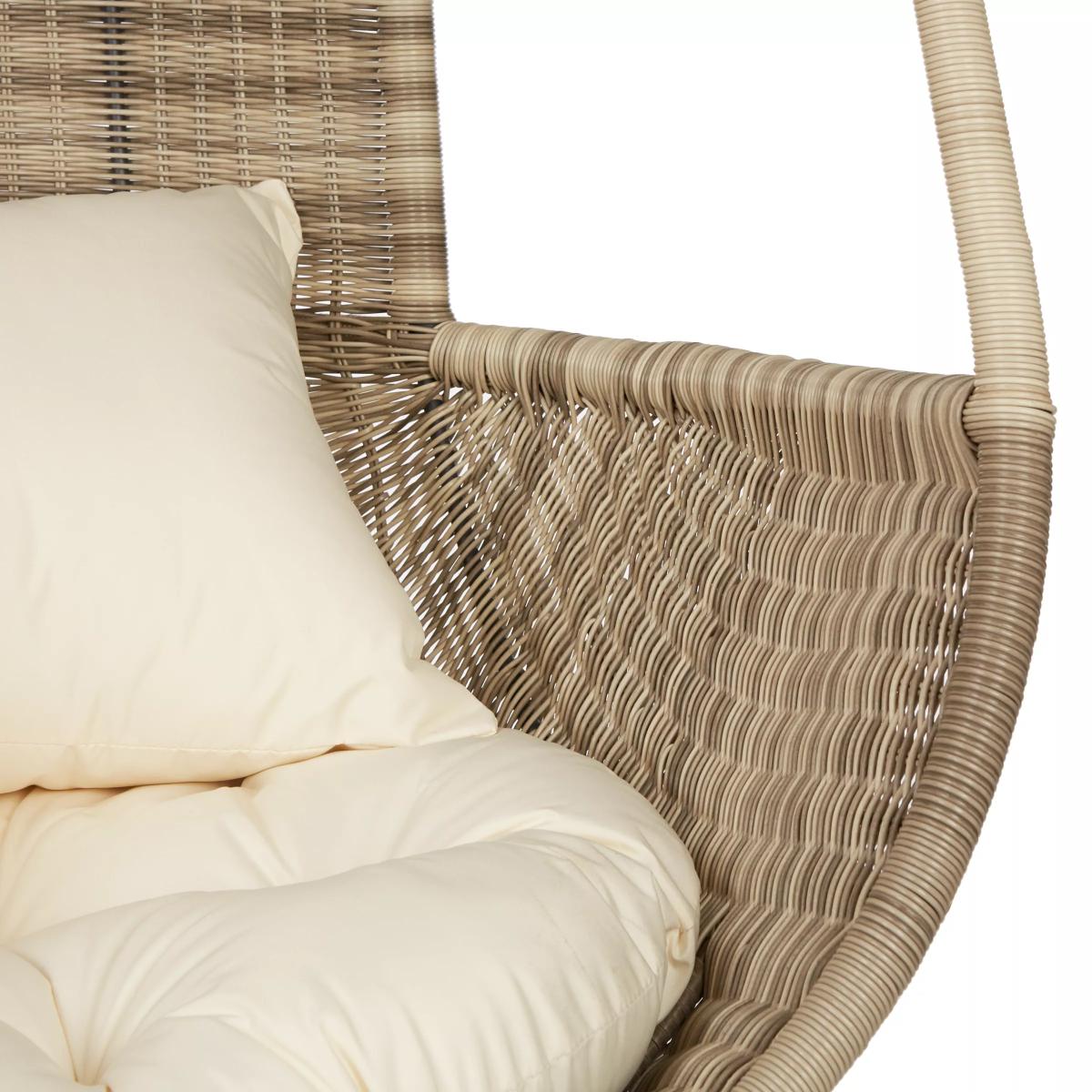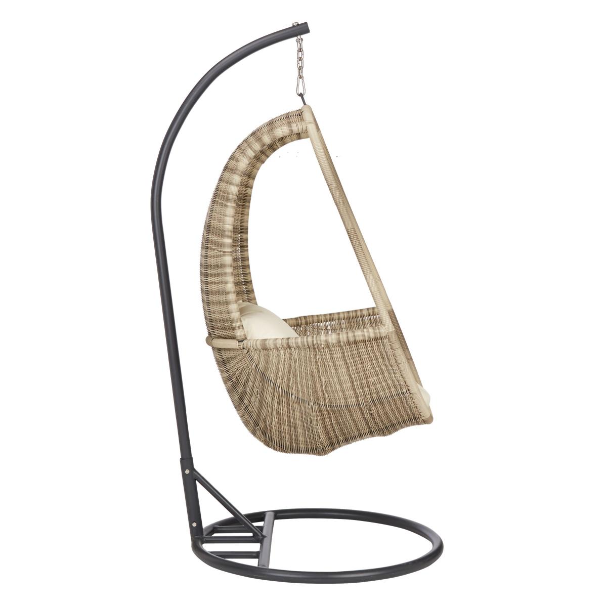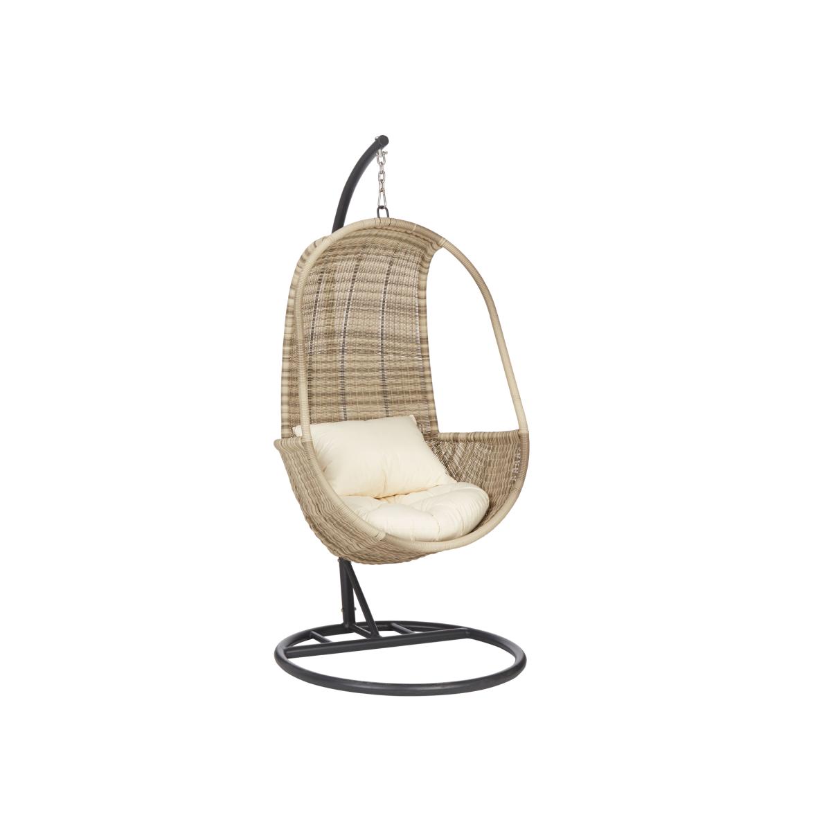 Claim your own space in the garden or conservatory with this handwoven hanging pod chair from our Dante range of garden furniture. The chair comes with sumptuous cushions for ultimate relaxation. The powder-coated steel frame has been tested to withstand 15 stone (95kg), exceeding the industry standard. A rounded handwoven design defines our Dante range, using synthetic wicker in a natural finish and metal frames for durability and easy maintenance. Dante round wicker is a high-specification resin requiring an intricate hand-woven technique, taking days to produce to the finest quality. Key features: Dante garden hanging pod chair Sumptuous sear and backrest cushions included Robust powder-coated steel frame Tested to withstand 15 stone (95kg) Handwoven synthetic wicker suits furniture in our Dante garden range Want to see it first? You may want to see and get a feel for the product in one of our shops before ordering. We'll be able to tell you where the range you'd like to view is on display. Choose the perfect outdoor furniture We have a vast selection of furniture for you to choose from which will suit the home or garden. The majority of our furniture ranges have been hand woven using a synthetic wicker. The thinner the weave, the longer it takes for the skilled workers to complete. All weave types are durable so they’ll last throughout the seasons All woven outdoor furniture is UV protected so it will not fade in direct sunlight All woven outdoor furniture is easy to maintain, simply wipe clean using warm water Flat A weave of various widths which offers incredible value for money Half round More detailed with a 3D effect, the half round is a round weave in half which displays a wicker appearance on the top and hollowed underside Double half round A double strand of half round, this is a wider width of weave which achieves an expensive appearance Round weave A very tight weave which is available in various widths, from 2mm to 5mm Rope A selection of our ranges have been made using rope. The yarn is made up of 10,000 (approx) woven strands with a double core for extreme strength, does not attract mould even if wet for a long time and is UV resistant.