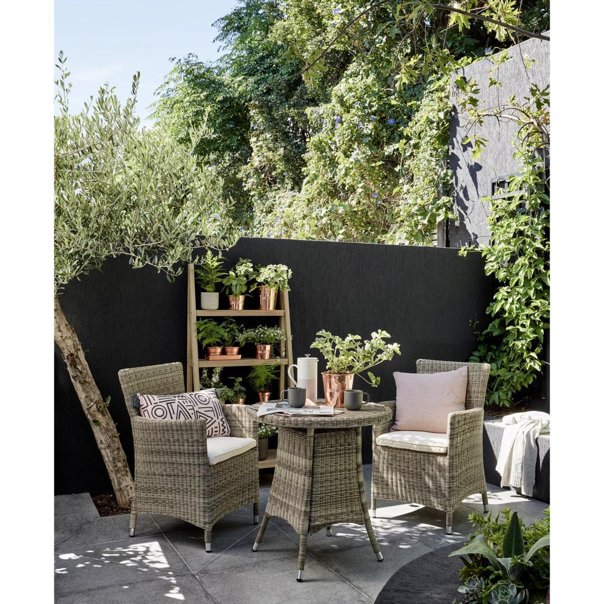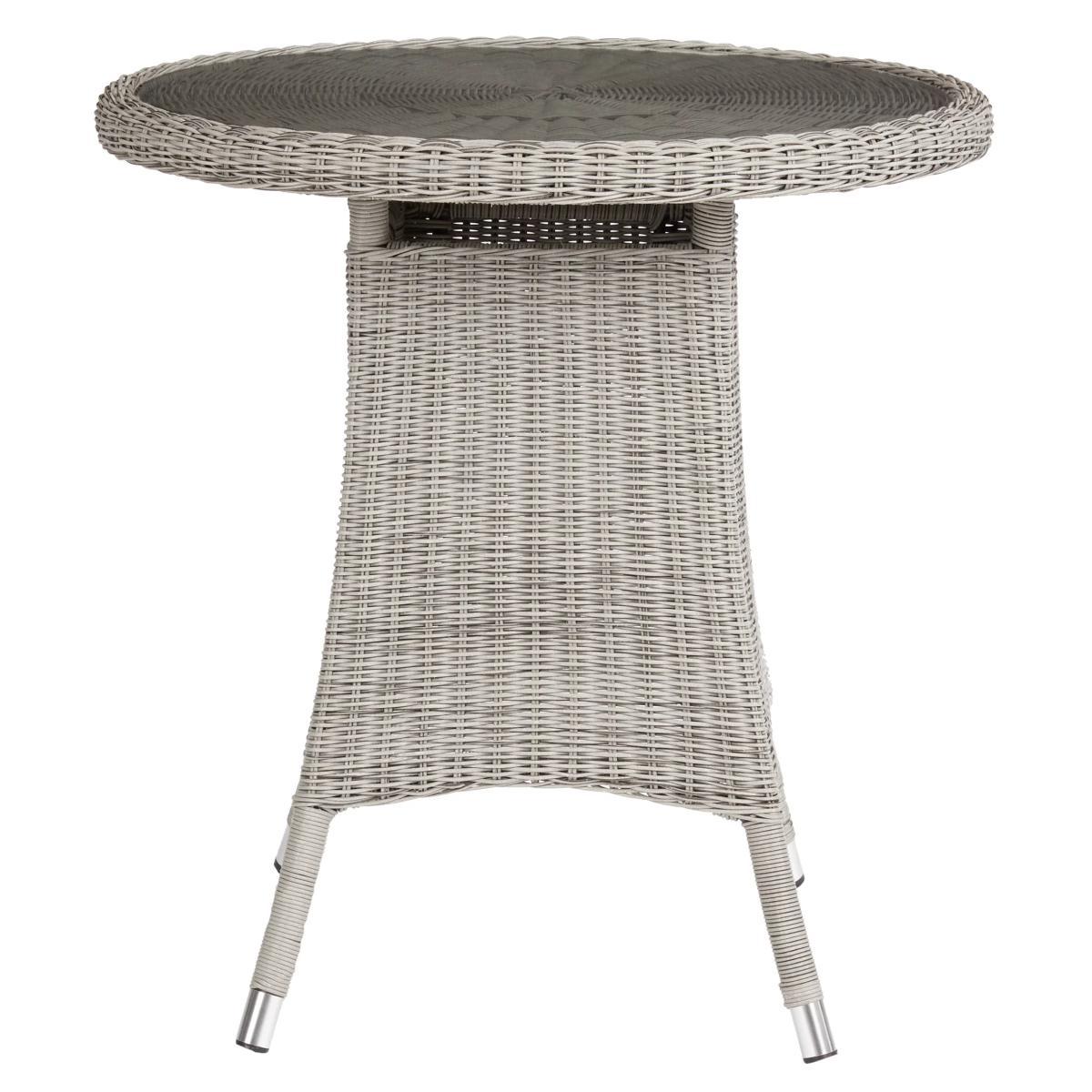 A round garden bistro table from our Dante range, made with a sophisticated curved design and a tempered glass top for strength. Our Dante range of handwoven furniture is weather-resistant and suitable for gardens and conservatories. In a traditional style, the synthetic wicker has a natural finish and is woven onto metal frames for durability and easy maintenance. Dante round wicker is a high-specification resin requiring an intricate hand-woven technique, taking days to produce to the finest quality. Key features: Garden bistro table for casual dining Tempered glass table top Classic synthetic wicker design 3mm round weave Aluminium frame Easy to clean and maintain Want to see it first? You may want to see and get a feel for the product in one of our shops before ordering. We'll be able to tell you where the range you'd like to view is on display. Choose the perfect outdoor furniture We have a vast selection of furniture for you to choose from which will suit the home or garden. The majority of our furniture ranges have been hand woven using a synthetic wicker. The thinner the weave, the longer it takes for the skilled workers to complete. All weave types are durable so they’ll last throughout the seasons All woven outdoor furniture is UV protected so it will not fade in direct sunlight All woven outdoor furniture is easy to maintain, simply wipe clean using warm water Flat A weave of various widths which offers incredible value for money Half round More detailed with a 3D effect, the half round is a round weave in half which displays a wicker appearance on the top and hollowed underside Double half round A double strand of half round, this is a wider width of weave which achieves an expensive appearance Round weave A very tight weave which is available in various widths, from 2mm to 5mm Rope A selection of our ranges have been made using rope. The yarn is made up of 10,000 (approx) woven strands with a double core for extreme strength, does not attract mould even if wet for a long time and is UV resistant.