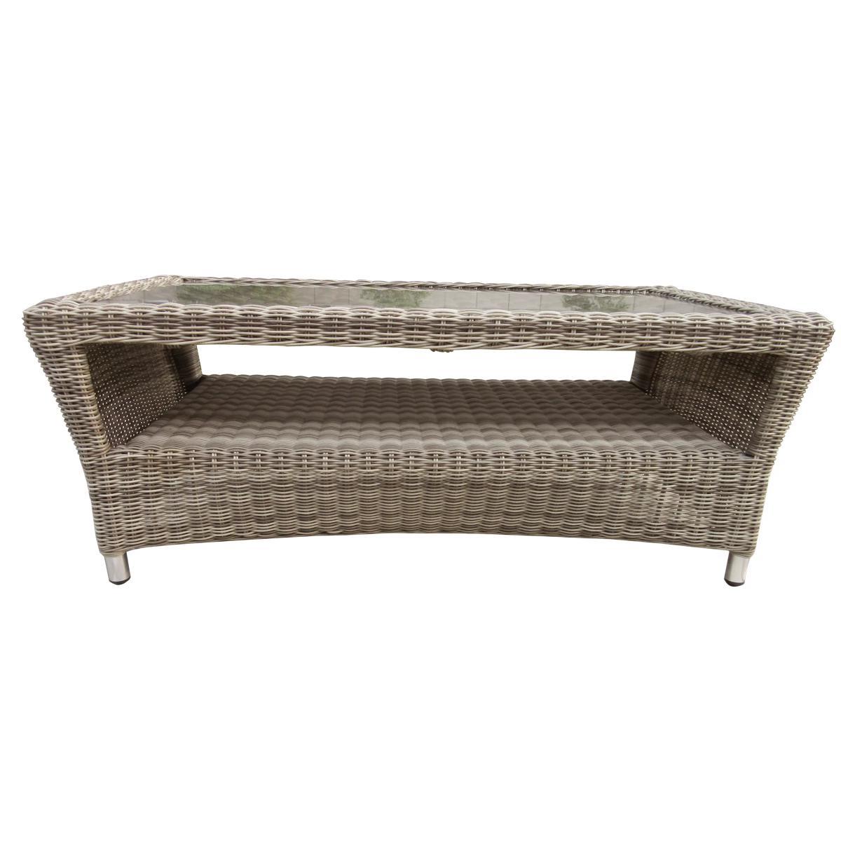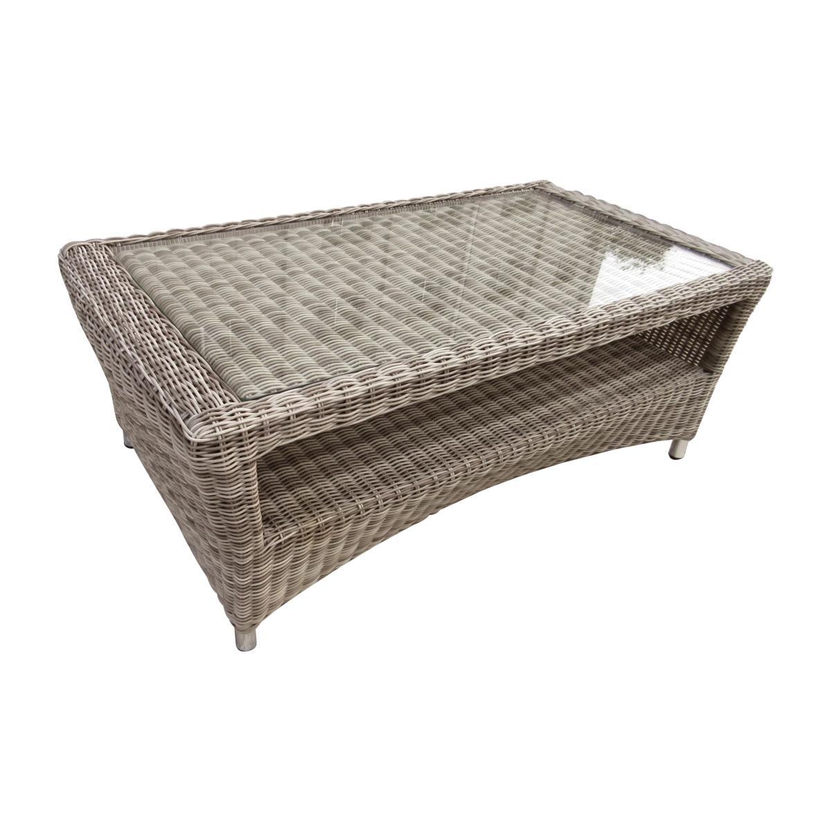 A rectangular garden coffee table from our Dante range, made with a sophisticated curved design and a tempered glass top for strength. There's room for trays, platters and magazines on the shelf underneath. Our Dante range of handwoven furniture is weather-resistant and suitable for gardens and conservatories. In a traditional style, the synthetic wicker has a natural finish and is woven onto metal frames for durability and easy maintenance. Dante round wicker is a high-specification resin requiring an intricate hand-woven technique, taking days to produce to the finest quality. Key features:. Rectangular garden coffee table. Tempered glass table top. Long shelf underneath. Classic synthetic wicker design. 3mm round weave. Aluminium frame. Easy to clean and maintain. Good to know:. The lifestyle image shows the larger 6-Seater Outdoor Dining Table. Want to see it first?. You may want to see and get a feel for the product in one of our shops before ordering. We'll be able to tell you where the range you'd like to view is on display. Choose the perfect outdoor furniture. We have a vast selection of furniture for you to choose from which will suit the home or garden. The majority of our furniture ranges have been hand woven using a synthetic wicker. The thinner the weave, the longer it takes for the skilled workers to complete. All weave types are durable so they’ll last throughout the seasons. All woven outdoor furniture is UV protected so it will not fade in direct sunlight. All woven outdoor furniture is easy to maintain, simply wipe clean using warm water. Table. Cq-sizeguidetable. Flat. A weave of various widths which offers incredible value for money. Half round. More detailed with a 3D effect, the half round is a round weave in half which displays a wicker appearance on the top and hollowed underside. Double half round. A double strand of half round, this is a wider width of weave which achieves an expensive appearance. Round weave. A very tight weave which is available in various widths, from 2mm to 5mm. Rope. A selection of our ranges have been made using rope. The yarn is made up of 10,000 (approx) woven strands with a double core for extreme strength, does not attract mould even if wet for a long time and is UV resistant. Garden Furniture Care Guide.