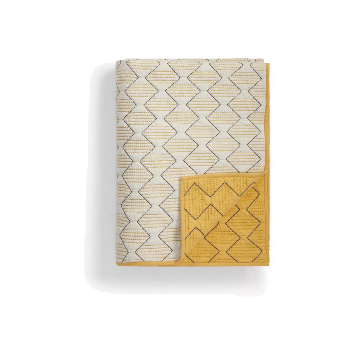 This colourful quilted bedspread is a great way to brighten up a modern bedroom. The yellow background has a contrast stitched diamond pattern in grey.