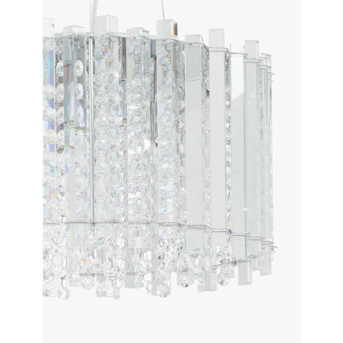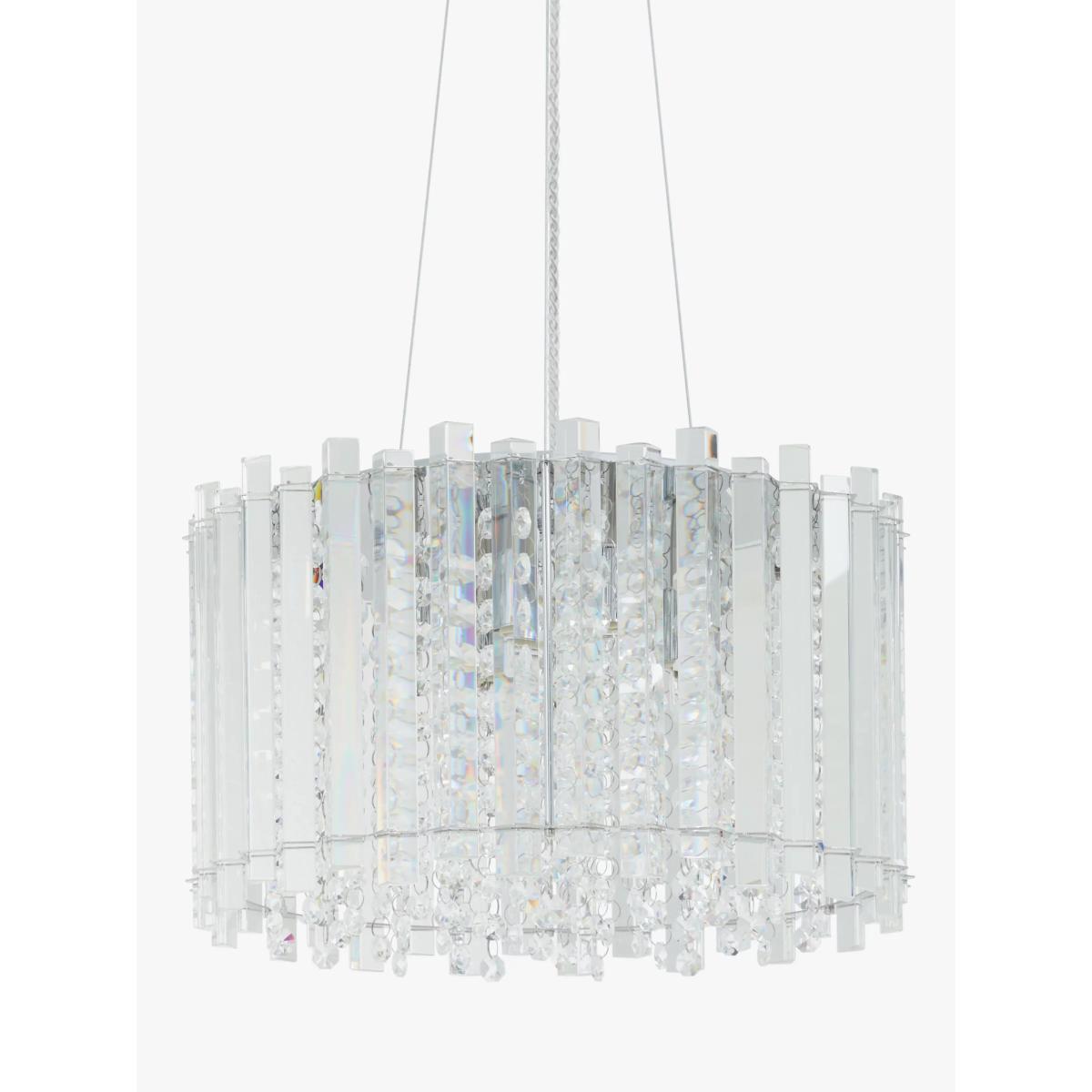 I love the John Lewis chandelier for its timeless elegance and versatile design. Its clear crystal elements make it an excellent choice for both contemporary and classic interiors, adding a touch of understated luxury without overpowering the space. It works particularly well in living rooms, dining areas, or bedrooms with high ceilings, where it can serve as a statement piece. To style it effectively, consider pairing it with neutral or soft colour palettes to let the crystals shine, and ensure it’s hung at a height that allows for unobstructed views and optimal light diffusion. Keep surrounding accessories minimal for a sophisticated finish, or add metallic accents to enhance its glamour.