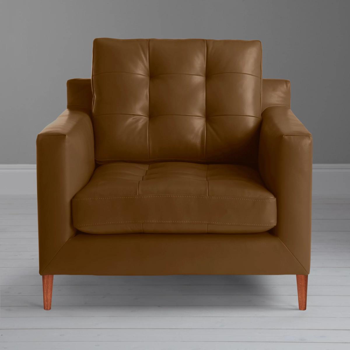 I love this armchair for its timeless leather finish and sturdy dark wooden legs, which lend a sophisticated yet versatile look. It works well in both contemporary and traditional interiors, adding warmth and a tactile feature to living rooms, studies, or even a cosy corner. Practical styling tips include pairing it with neutral-toned cushions or textured throws to soften its sleek leather, or coordinating with other leather accents for a cohesive aesthetic. Its robust design also makes it ideal for frequent use, delivering comfort without compromising on style.