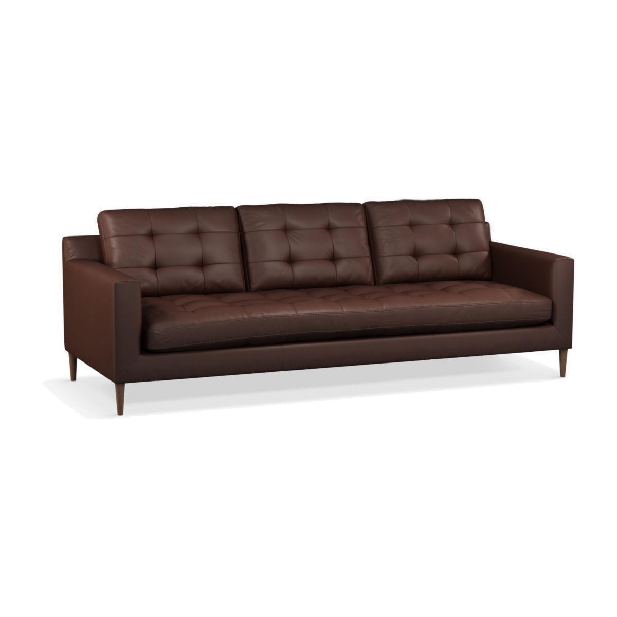 I love this sofa for its timeless leather look and versatility. Its dark legs add a subtle modern touch, making it suitable for both classic and contemporary interiors. It works particularly well in neutral, minimalist, or mid-century spaces where its sleek design can stand out without overwhelming the room. For styling, consider pairing it with textured cushions or throws to soften the leather, and add a statement rug underneath to anchor the space. As a practical piece, its sturdy construction and dark leather make it ideal for high-traffic areas or homes with pets and children, where durability is a priority. Overall, this sofa balances style and practicality, making it a great anchor for a living room that needs a reliable yet stylish main piece.