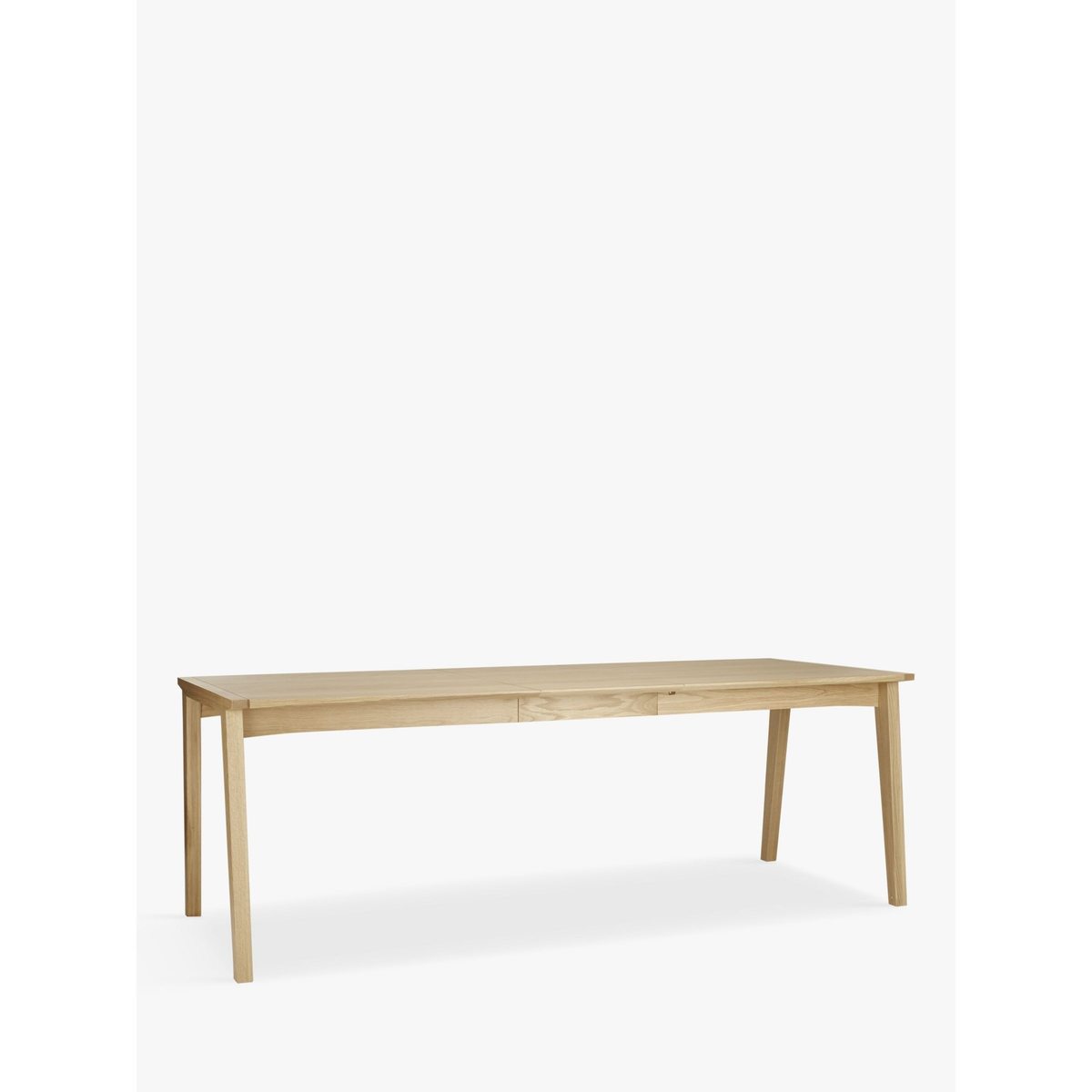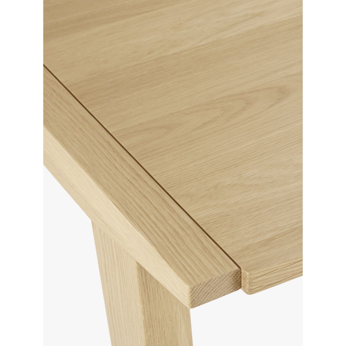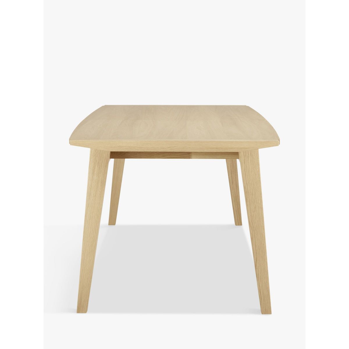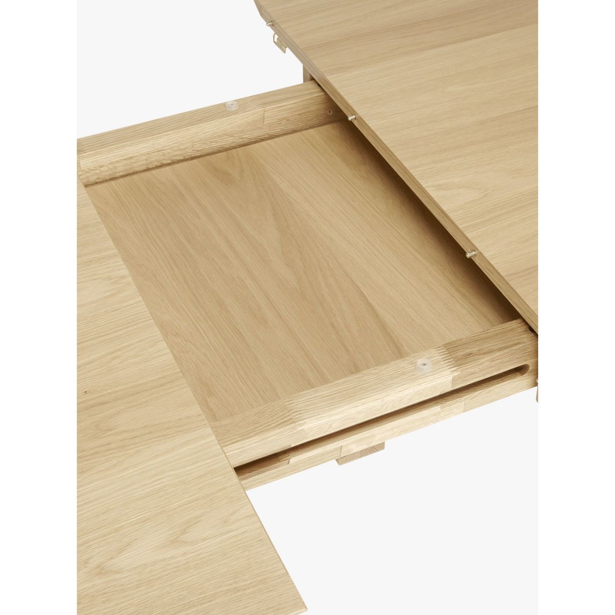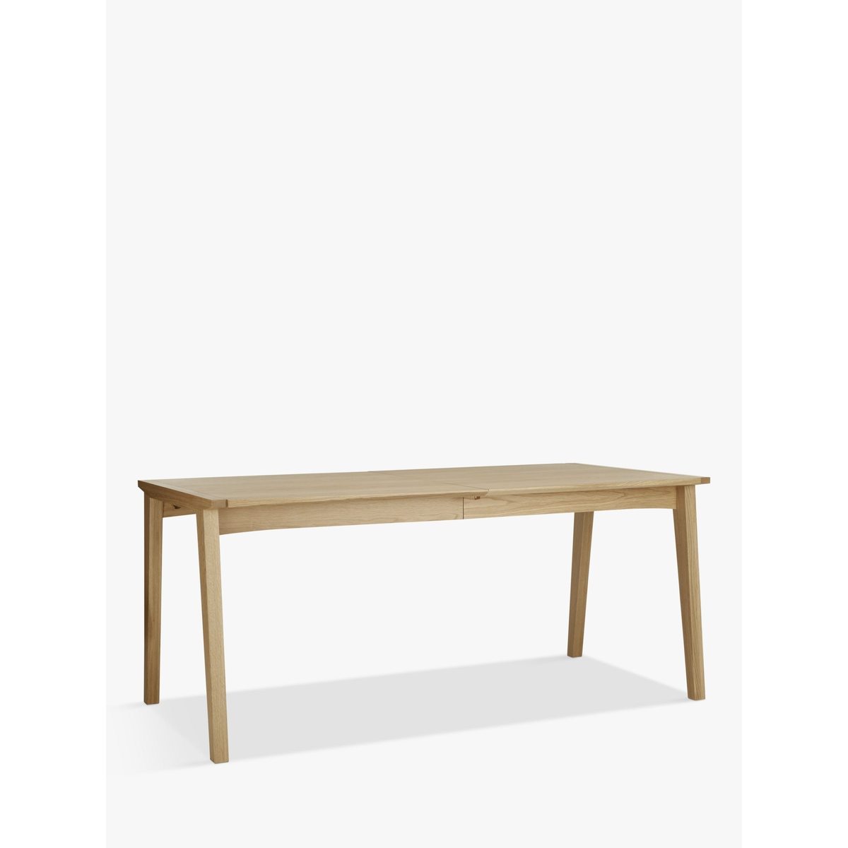 The result of almost 20 years of development, our Duhrer range of furniture takes inspiration from the innovation of Brighton-based furniture designer and maker, John Weaver. His mission to showcase the functional elements of furniture in an aesthetic way is realised in each design, all made from durable materials that are made to last. A simple design with striking appeal, this dining table is made from high-quality solid oak and veneers. Highlighting the rich wood grain throughout its smooth surface top and slightly splayed legs, it can be extended with one table leaf to offer seating for up to 10 diners. Clean-lines contrast against curved edges, that lend a softer feel to the overall sturdy and timeless design. Thanks to its natural construction, a subtle colour variation and unique wood patterns can be expected on each piece of furniture. Want to see it first? You may want to see and get a feel for the furniture in one of our shops before ordering. We'll be able to tell you where the range you'd like to view is on display.