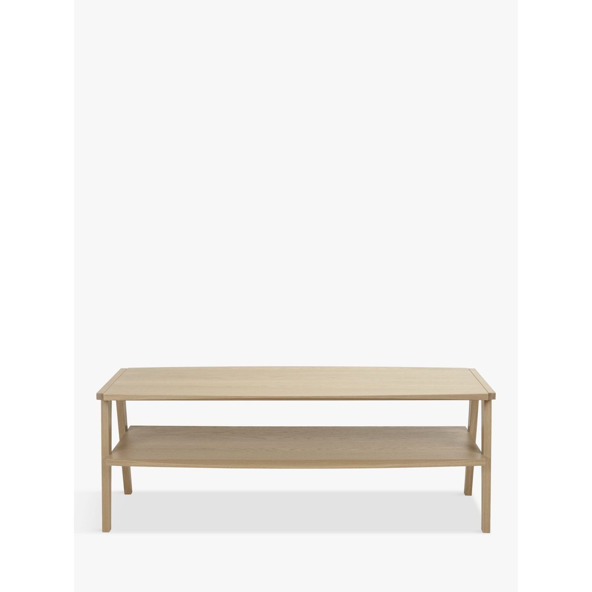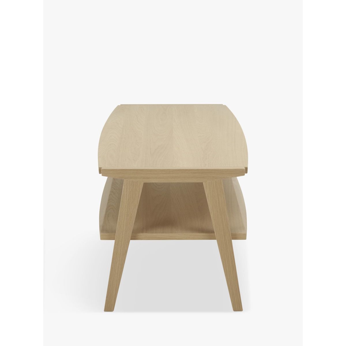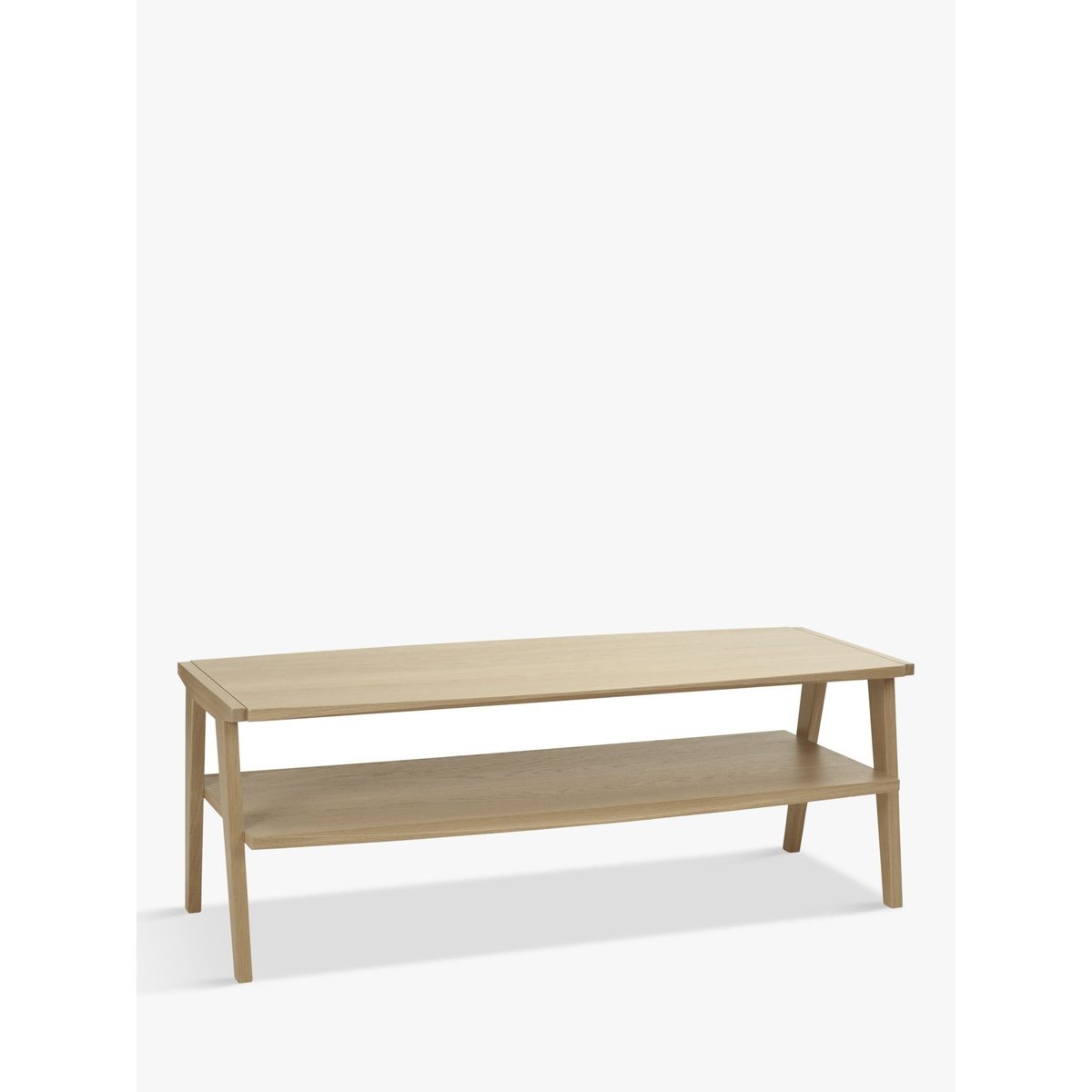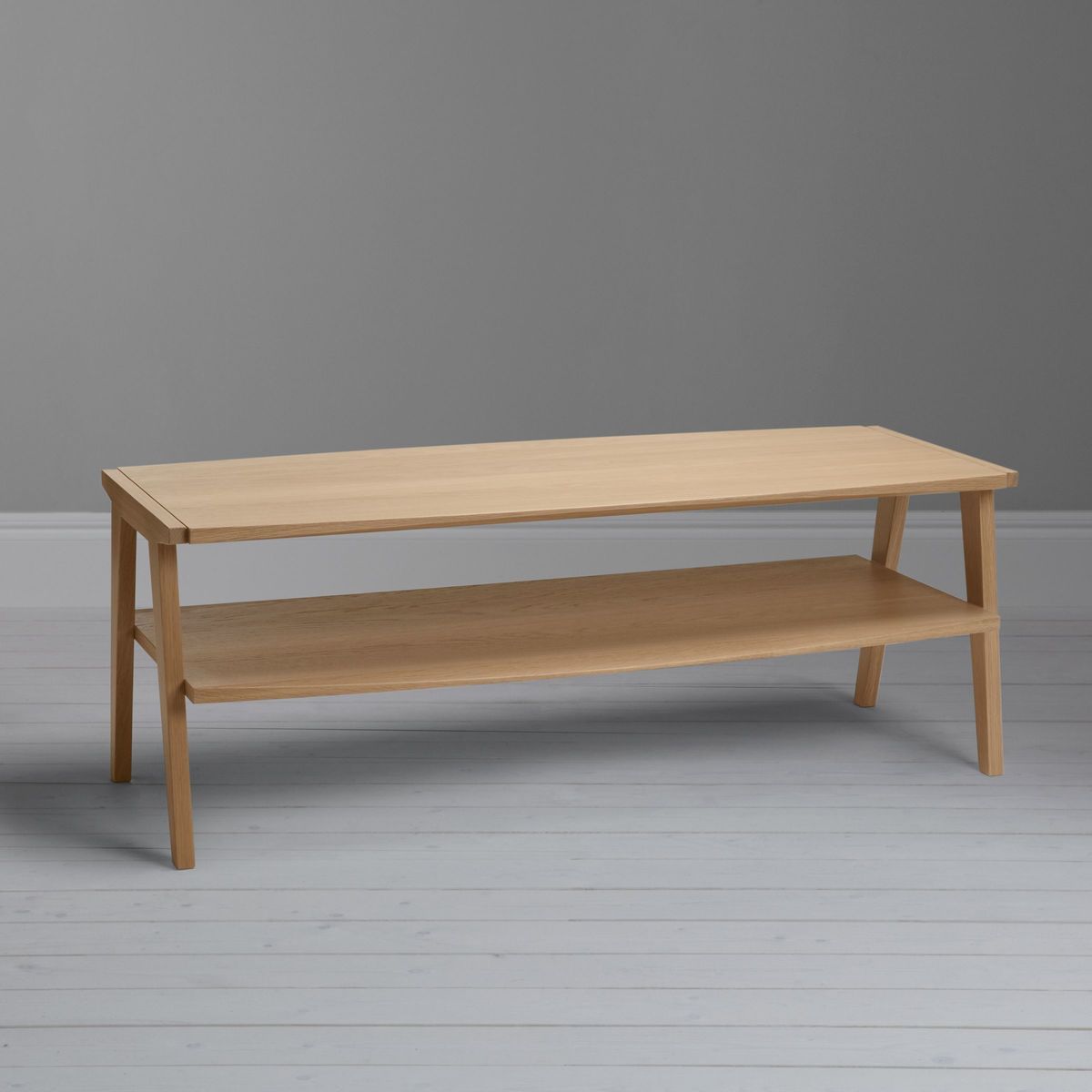This coffee table is made from solid oak with oak veneers to give a quality, robust finish. With a handy shelf you can store books, magazines and remote controls for convenience. The result of close to twenty years’ development, Duhrer is the innovation of Brighton-based furniture designer and maker, John Weaver. His idea to reveal the furniture’s functional elements as an aesthetic device, has inspired a collection of pieces whose exposed drawers present the intrinsically beautiful detail of features often concealed. John’s initial concept has effortlessly transferred to a wider collection of living and dining furniture. The end frame geometry of which, interestingly resembles the monogram of 16th century artist, Albrecht Durer - giving the range its name. Each piece, realised in solid and visually stunning American white oak, is intended to be treasured and handed down from generation to generation. Manufacture marries the use of the most modern and accurate machinery, with traditional hand-making skills of expert craftsmen, ensuring Duhrer’s quality and durability will stand the test of time. Please note: not all our ranges are on display in our shops.