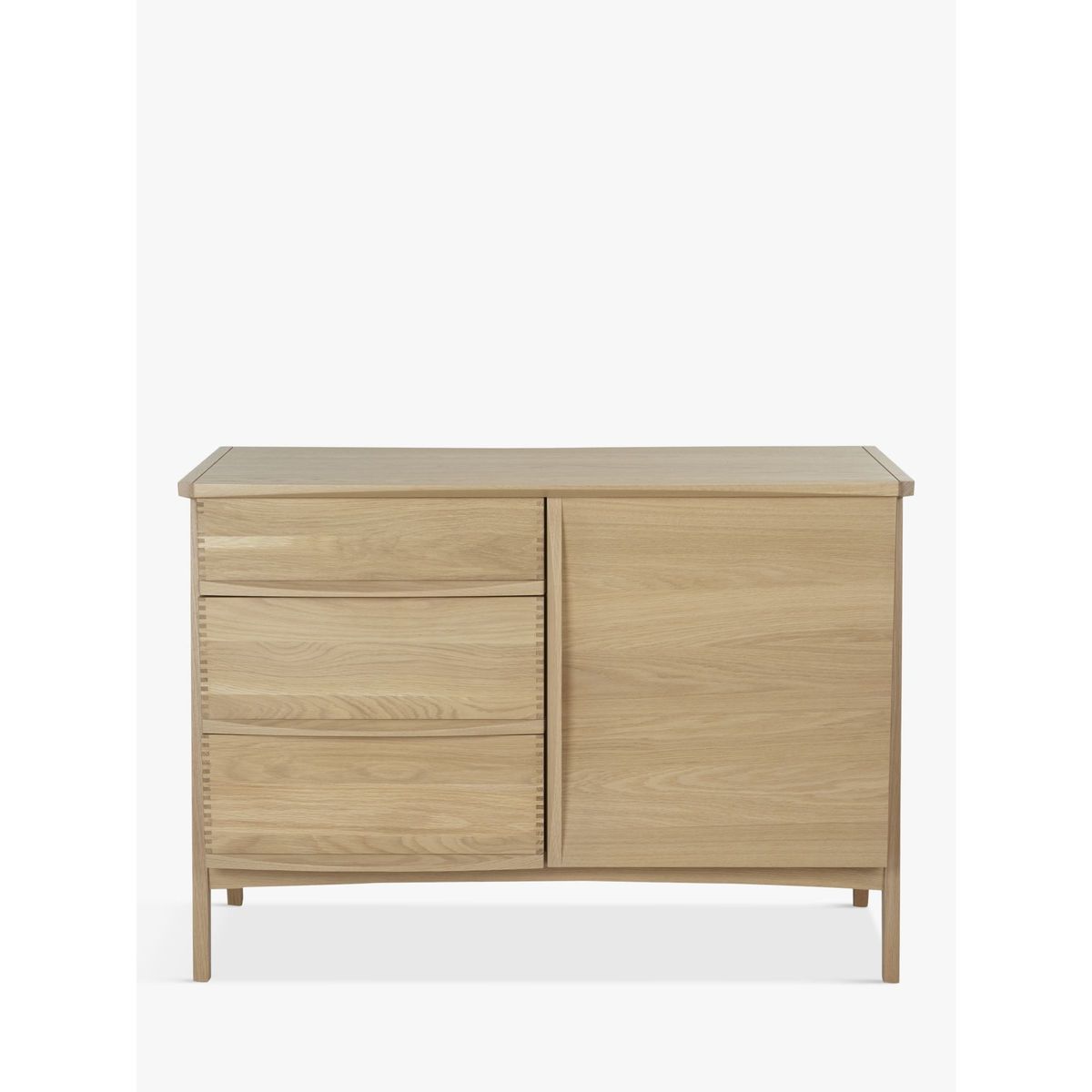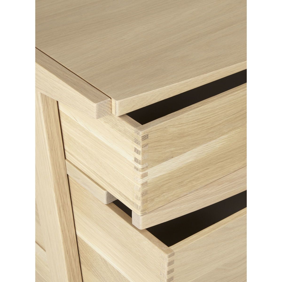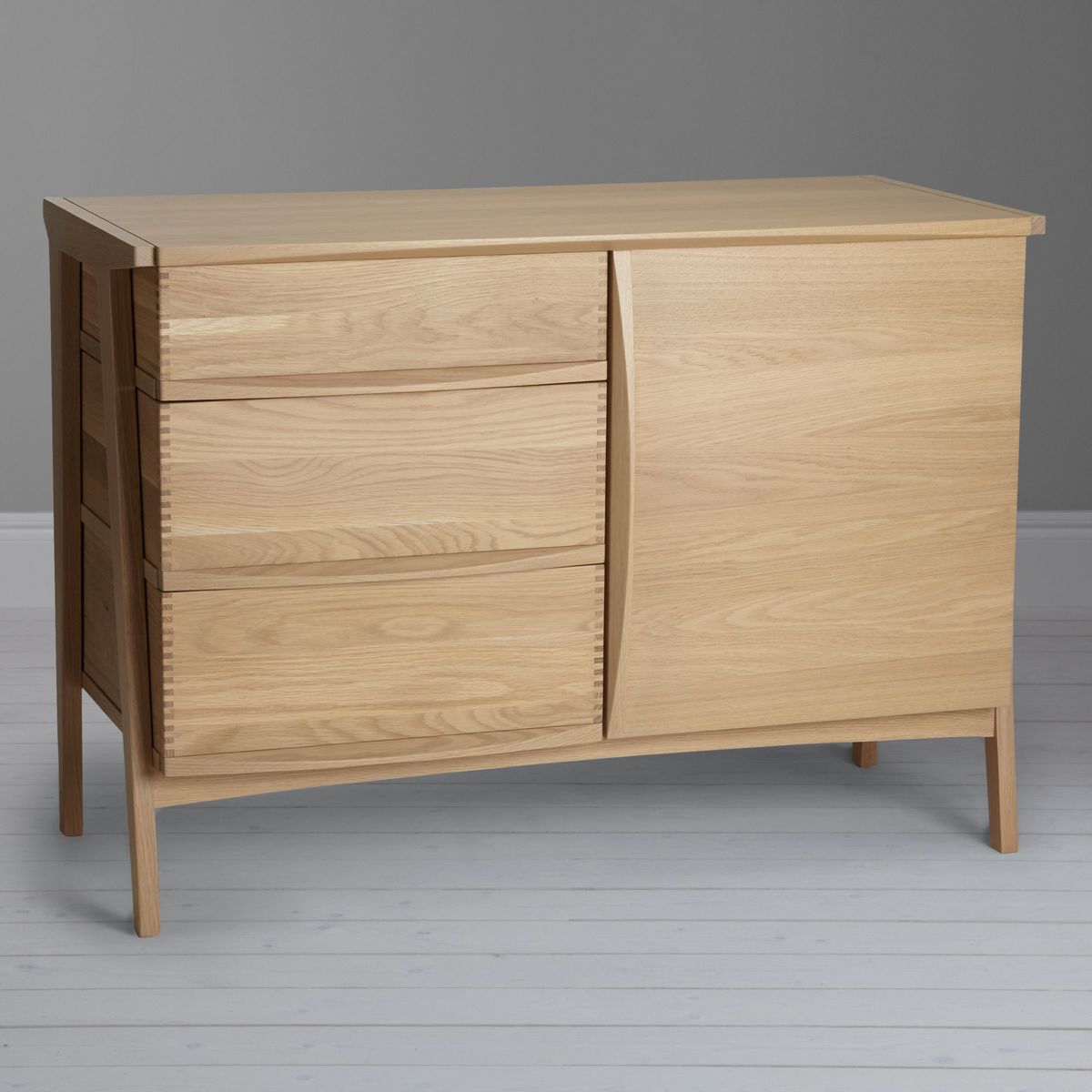 This beautifully crafted sideboard is made from solid oak with oak veneers to give a quality, robust finish. With three drawers and two shelves you can easily store away crockery, cutlery or any other dining essentials. The result of close to twenty years’ development, Duhrer is the innovation of Brighton-based furniture designer and maker, John Weaver. His idea to reveal the furniture’s functional elements as an aesthetic device, has inspired a collection of pieces whose exposed drawers present the intrinsically beautiful detail of features often concealed. John’s initial concept has effortlessly transferred to a wider collection of living and dining furniture. The end frame geometry of which, interestingly resembles the monogram of 16th century artist, Albrecht Durer - giving the range its name. Each piece, realised in solid and visually stunning American white oak, is intended to be treasured and handed down from generation to generation. Manufacture marries the use of the most modern and accurate machinery, with traditional hand-making skills of expert craftsmen, ensuring Duhrer’s quality and durability will stand the test of time.