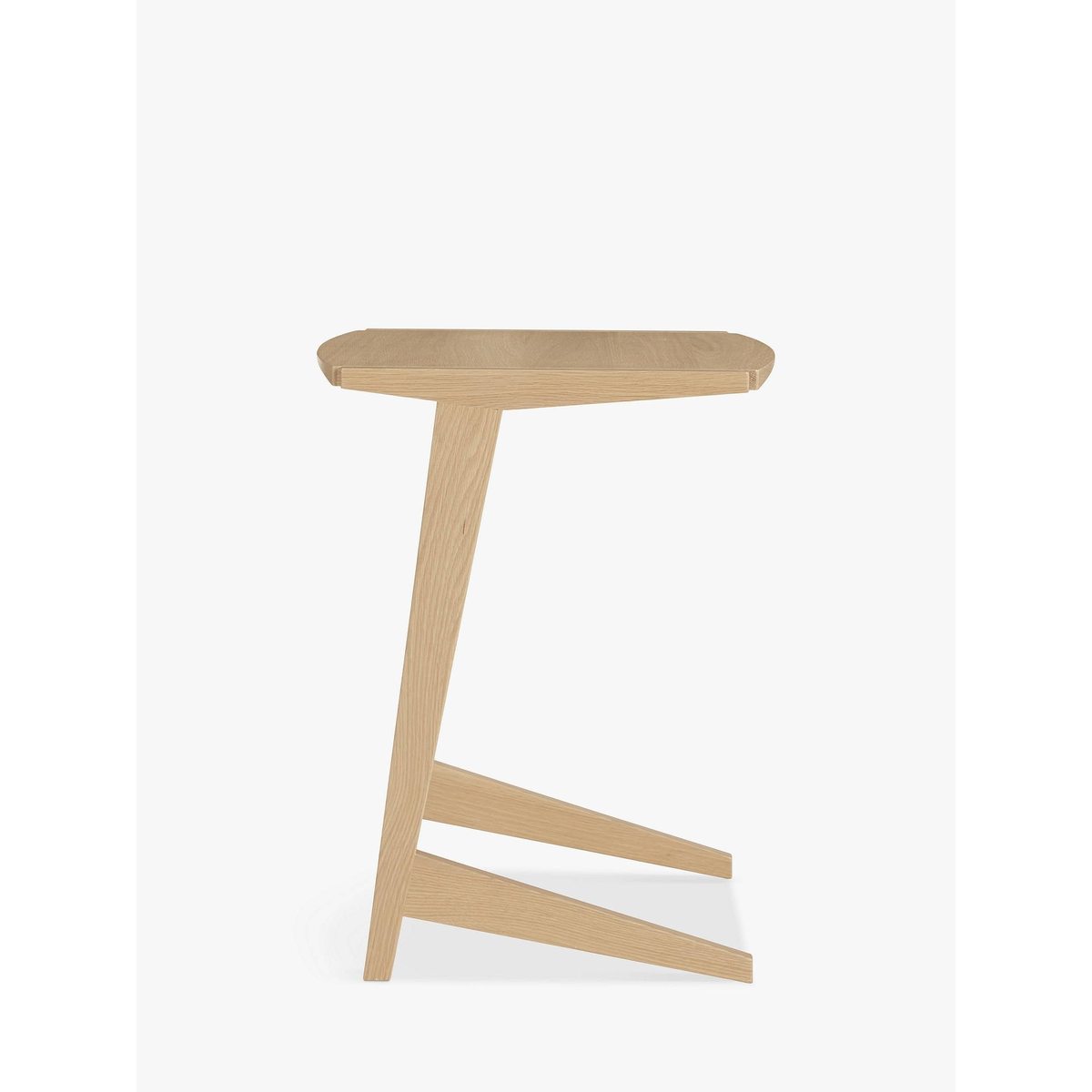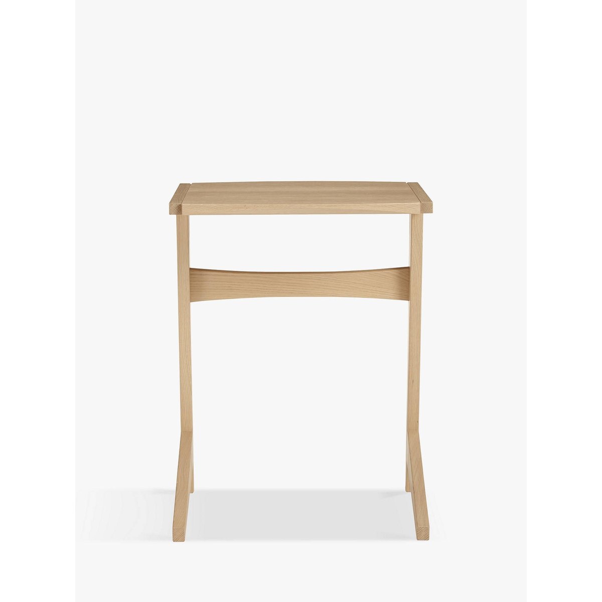 This side table is made from solid oak with oak veneers to give a quality, robust finish. Place by your sofa to add some extra storage space or to show off your home accessories. The result of close to twenty years' development, Duhrer is the innovation of Brighton-based furniture designer and maker, John Weaver. His idea to reveal the furniture's functional elements as an aesthetic device, has inspired a collection of pieces whose exposed drawers present the intrinsically beautiful detail of features often concealed. John's initial concept has effortlessly transferred to a wider collection of living and dining furniture. The end frame geometry of which, interestingly resembles the monogram of 16th century artist, Albrecht Durer - giving the range its name. Each piece, realised in solid and visually stunning American white oak, is intended to be treasured and handed down from generation to generation. Manufacture marries the use of the most modern and accurate machinery, with traditional hand-making skills of expert craftsmen, ensuring Duhrer's quality and durability will stand the test of time. Please note: not all our ranges are on display in our shops.
