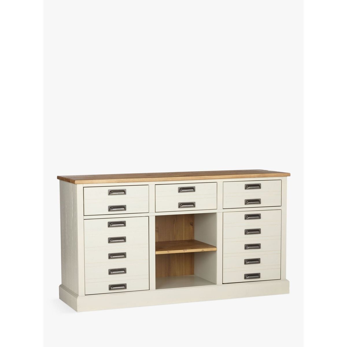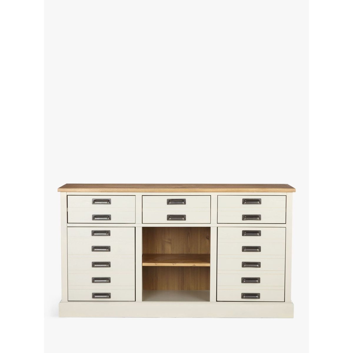 Combine the beauty of natural materials with traditional craftsmanship, and transform your space into a country idyll with this vintage-inspired sideboard. This piece is beautifully crafted from New Zealand pine, with a painted finish and clear stain distressed lacquer top. Visible saw marks lend an attractive rustic effect to create a charming rural aesthetic in your home. Featuring three top drawers, two doors each opening to reveal shelving space, and a central shelving section, it is completed with attractive distressed metal handles. Please note: not all our ranges are on display in our shops. For more information, please speak to a furniture Partner in store, or call 03452 661805 and we can tell you where the range you'd like to view is on display. We like it because Special buy: These products are special because we negotiate exclusive discounts with our suppliers and pass the savings on to you. They're limited, either in quantity or for a period of time, and they'll always give you excellent quality at an exceptional price. Just for Clearance, we're offering our Radar dining table at a very special price, while stocks last.