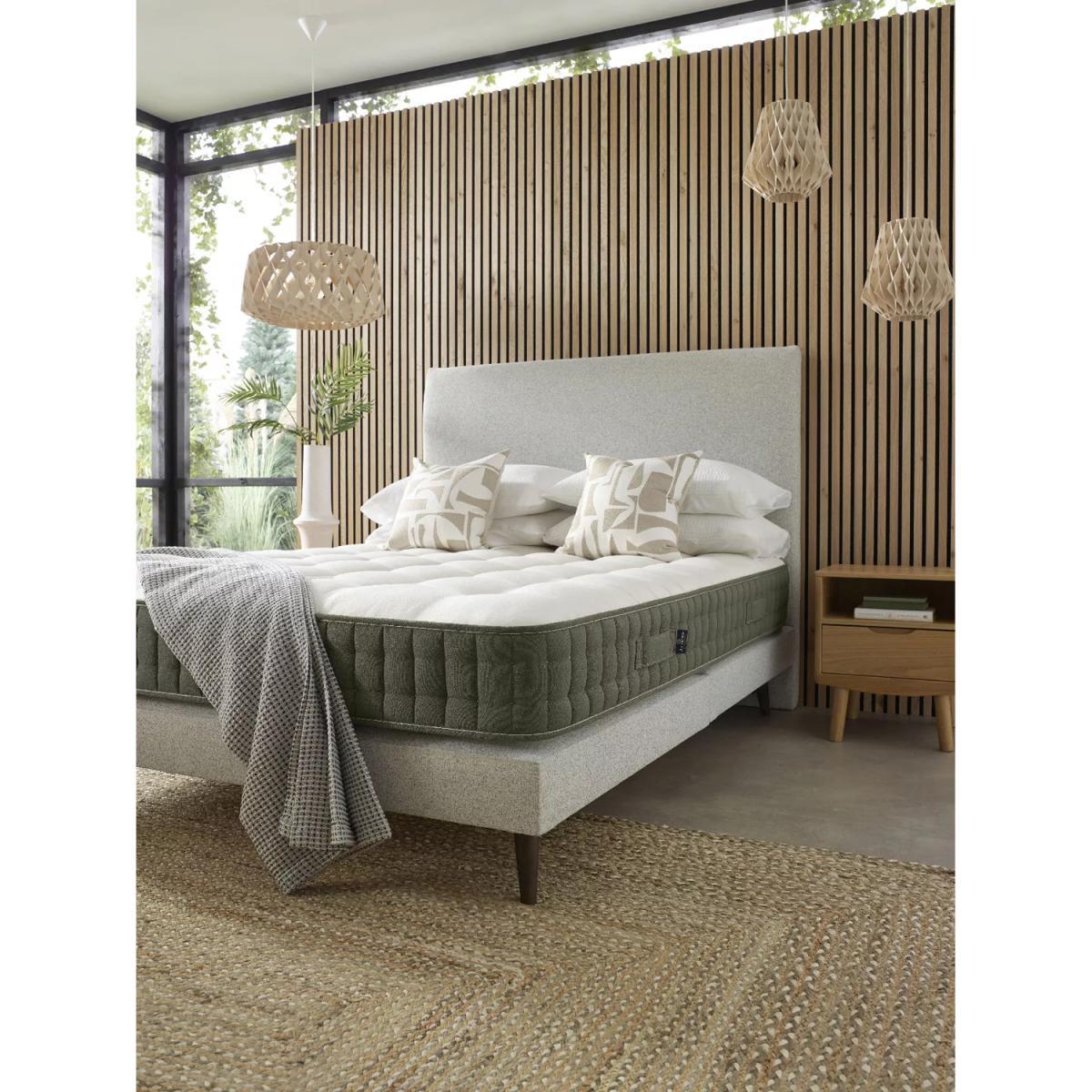 We've combined our EcoMattress™ with our slim divan base and full depth Bedford headboard, to create a comfortable and supportive sleeping solution that's much kinder to the environment. Our EcoMattress™ is made from a percentage of recycled materials and handcrafted in a Carbon Neutral+ factory in Yorkshire It’s also fully recyclable at its end of life thanks to a completely glue and chemical-free design A total of 750 pocket springs in the king size provide targeted, pressure-relieving and balanced support for a comfortable night's sleep We’ve upholstered the divan base and headboard in a recycled fabric. Vegan certified, it’s woven from durable fibres and features Aquaclean technology, so it’s very easy to care for Both the divan base and headboard are made from responsibly sourced, FSC-Certified softwood About our EcoMattress™ Instead of using foam, we’ve filled this mattress with layers of Eco Flex fibres. This is a soft and cushioning polyester filling, made from recycled materials and re-using over 200 plastic bottles, based on a king size. And, it delivers the same level of support when compared to traditional mattresses. Without using any natural fillings or animal bi-products, our EcoMattress™ is also a Vegan friendly choice. Chemical free sleep surface Traditionally, some manufacturers add chemicals to mattresses in order for them to be fire retardant and compliant with regulations. In our quest to be as kind to the environment as possible, the EcoMattress™ is inherently fire retardant and free from chemical treatments. Cortec™ Quad pocket spring system The high density Cortec™ quad pocket springs in this support system are made from British steel and produced in a small, fine and tightly coiled format. This provides precise pressure relief and helps to keep your body weight evenly distributed while you sleep. They’re also lighter than conventional springs and push air through the mattress to ensure a clean and well-ventilated sleep environment. Designed with its end-of-life in mind The Cortec™ springs are individually pocketed and sealed with heat, rather than glue. This makes the mattress 100% recyclable at the end of its life, as each spring can simply be disassembled and reinvented in the future, ensuring zero waste to landfill. Award Winning Sustainable Manufacturing We’re proud to have partnered with our UK manufacturer, Harrison Spinks to create our EcoMattress™. They are a Carbon Neutral+ factory, winning The Queen’s Award for Sustainable Development in 2019 in recognition for their ecologically friendly innovations. Each mattress is hand-tailored by expert craftsmen and women using a combination of traditional methods and innovative technology. Try before you buy This is an important purchase and it’s worthwhile to try your choice of mattress in one of our shops to make sure it's right for you. Our store Partners will be able to tell you more about its benefits, and recommend options based on your needs.