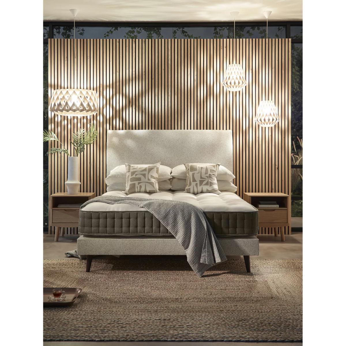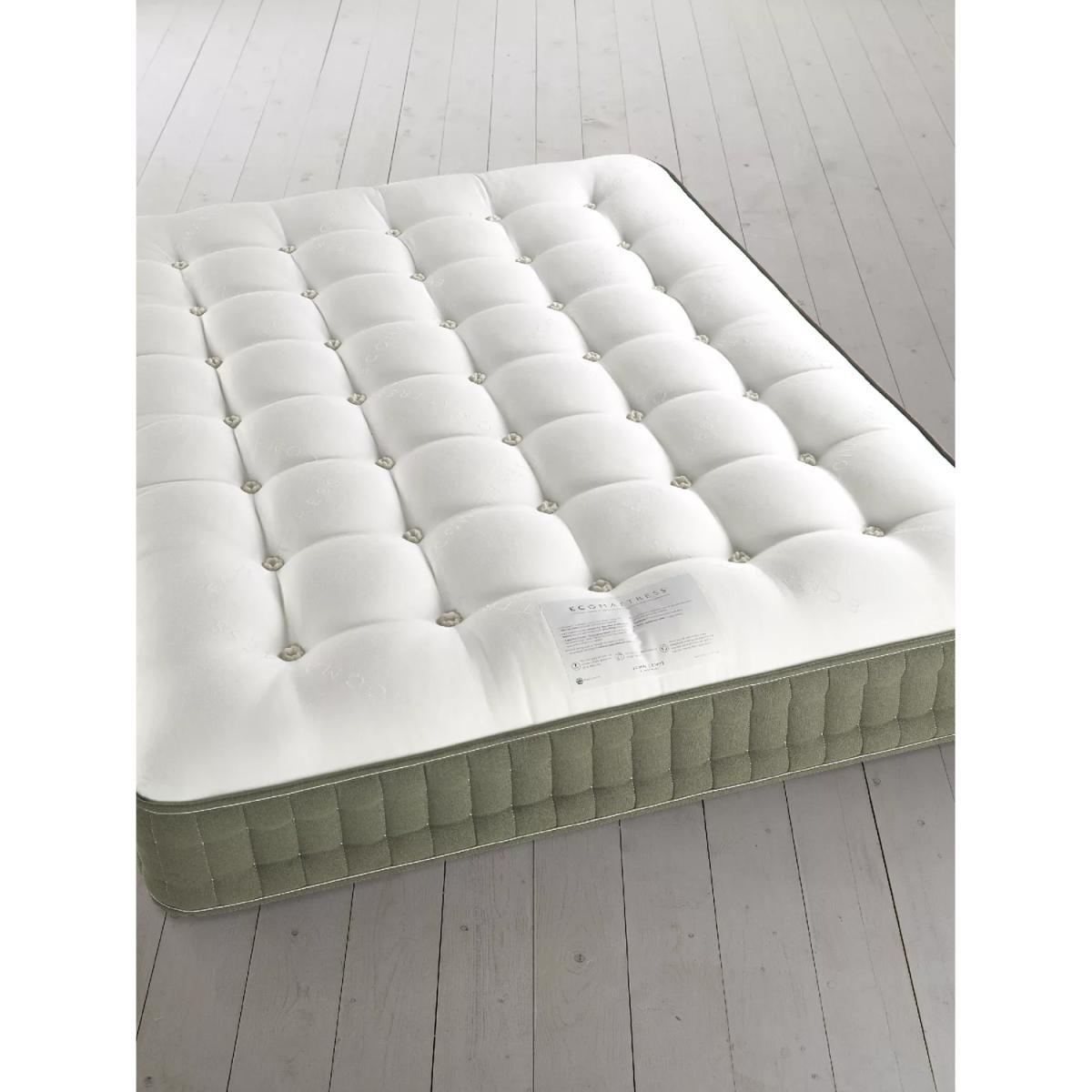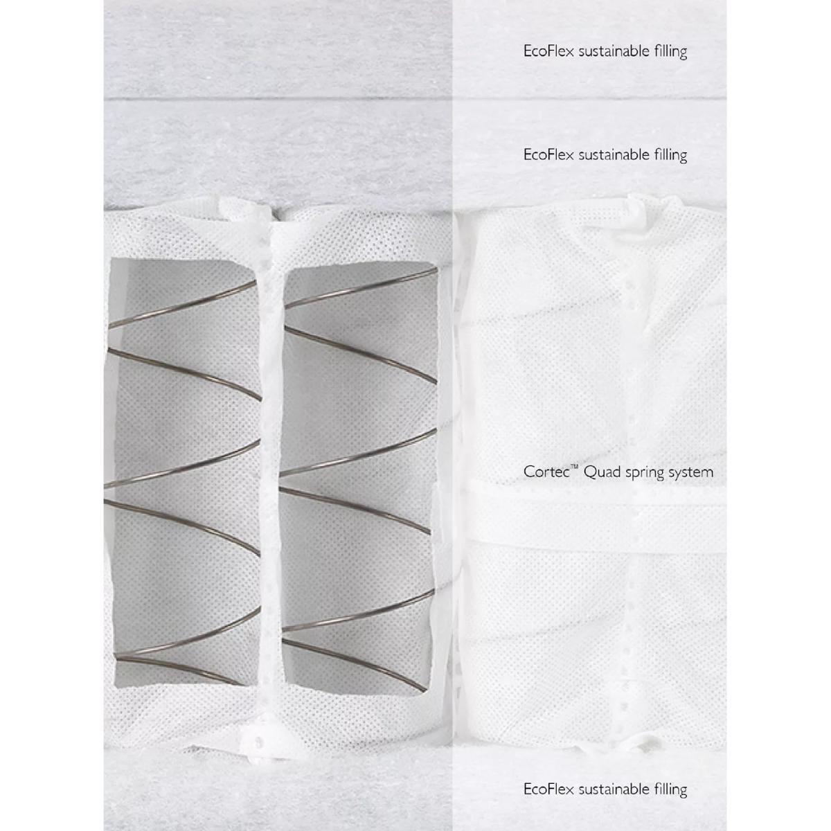 Our EcoMattress™ offers the ultimate comfort and support with a design that's kinder to the environment. It's made from a percentage of recycled materials and handcrafted in a Carbon Neutral+ factory in Yorkshire. It's also fully recyclable at its end of life thanks to a completely glue and chemical-free design. A total of 750 pocket springs in the king size provide targeted, pressure-relieving and balanced support for a supportive and comfortable night's sleep. Environmentally friendly fillings Instead of using foam, we've filled this mattress with layers of Eco Flex fibres. This is a soft and cushioning polyester filling, made from recycled materials and re-using over 200 plastic bottles, based on a king size. And, it delivers the same level of support when compared to traditional mattresses. Without using any natural fillings or animal bi-products, our EcoMattress™ is also a Vegan friendly choice. Chemical free sleep surface Traditionally, some manufacturers add chemicals to mattresses in order for them to be fire retardant and compliant with regulations. In our quest to be as kind to the environment as possible, the EcoMattress™ is inherently fire retardant and free from chemical treatments. Cortec™ Quad pocket spring system The high density Cortec™ quad pocket springs in this support system are made from British steel and produced in a small, fine and tightly coiled format. This provides precise pressure relief and helps to keep your body weight evenly distributed while you sleep. They're also lighter than conventional springs and push air through the mattress to ensure a clean and well-ventilated sleep environment. Designed with its end-of-life in mind The Cortec™ springs are individually pocketed and sealed with heat, rather than glue. This makes the mattress 100% recyclable at the end of its life, as each spring can simply be disassembled and reinvented in the future, ensuring zero waste to landfill. Award Winning Sustainable Manufacturing We're proud to have partnered with our UK manufacturer, Harrison Spinks to create our EcoMattress™. They are a Carbon Neutral+ factory, winning The Queen's Award for Sustainable Development in 2019 in recognition for their ecologically friendly innovations. Each mattress is hand-tailored by expert craftsmen and women using a combination of traditional methods and innovative technology. Try before you buy This is an important purchase and it's worthwhile to try your choice of mattress in one of our shops to make sure it's right for you. Our store Partners will be able to tell you more about its benefits, and recommend options based on your needs.