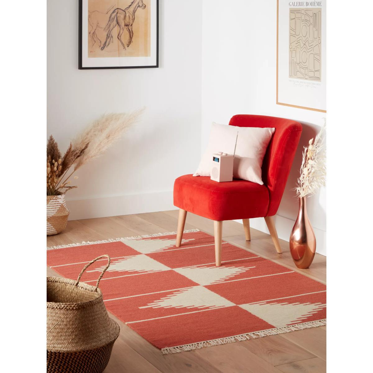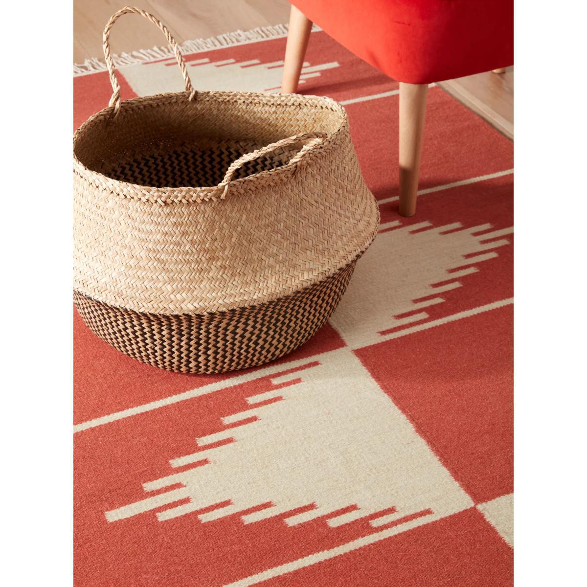 In a jagged, geometric inspired design, this eye-catching rug is woven from a wool-rich blend with a hint of cotton for a feel underfoot that's both soft and strong. Finished with fringing at either end, it's a great way to inject a little bit of colour into your home. About your new rug We recommend. It prevents your rug from moving underfoot and protects against colour transfer to the floor Natural fibres may shed. This will reduce over time, and shouldn't affect your rug's lifespan or performance When vacuuming your rug, use suction only. Rotating brushes may damage the fibres Blot any spills with a clean, dry cloth. Do not rub or use harsh detergents. Textile backed