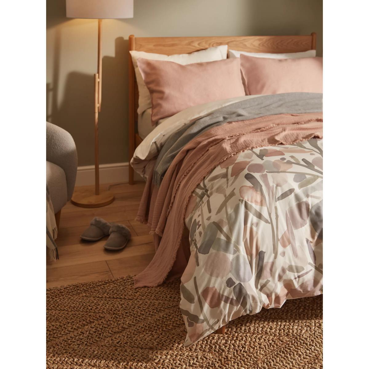 This painterly abstract floral, with its soft, earthy tones, will lend a restful ambience to your sleep space. Made from 200 thread count organic cotton, the fabric will aid temperature regulation to ensure you stay cool and comfortable throughout the night. Croft Collection is beautiful and considered. Neutral in palette, tactile by nature, it evokes a relaxed feel you'll love to come home to forever. Please note: Duvet covers and pillowcases are available to purchase separately, and not in sets. Have you thought about sheeting? Shop. Bedding sizes To fit duvet/pillow size (cm) Standard pillowcase, L75 x W50cm Single duvet cover, L200 x W135cm Double duvet cover, L200 x W200cm King duvet cover, L220 x W225cm Super king duvet cover, L220 x W260cm
