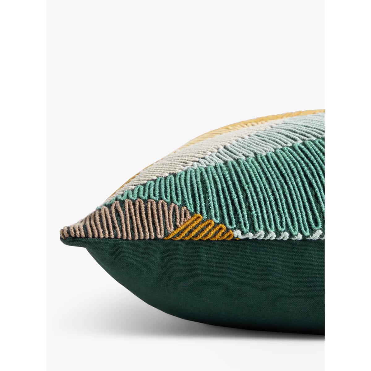 I love the John Lewis & Partners Elm Leaves Cushion for its vibrant yet sophisticated pattern that adds visual interest without overpowering a space. It works particularly well in contemporary or modern interiors, where its colourful design can serve as a statement piece on a neutral sofa or armchair. Practical styling tips include mixing it with solid-coloured cushions to tone down its boldness, or pairing it with textured throws for added depth. Because of its pattern and colour palette, it’s versatile enough to introduce into both living rooms and bedrooms, bringing a fresh, approachable feel to everyday settings.