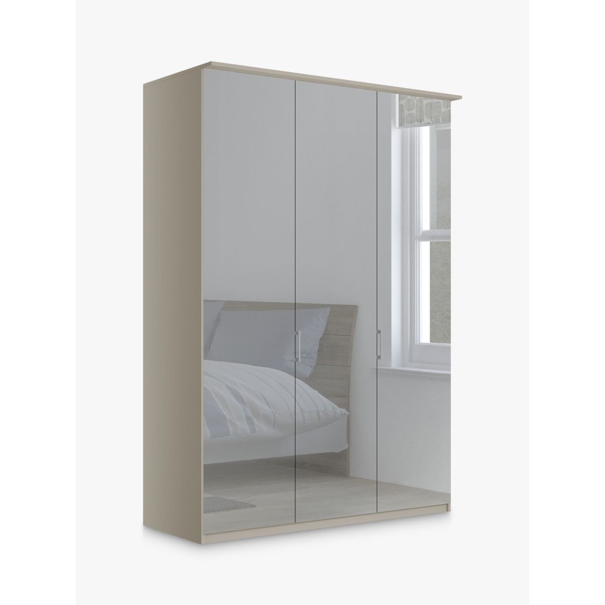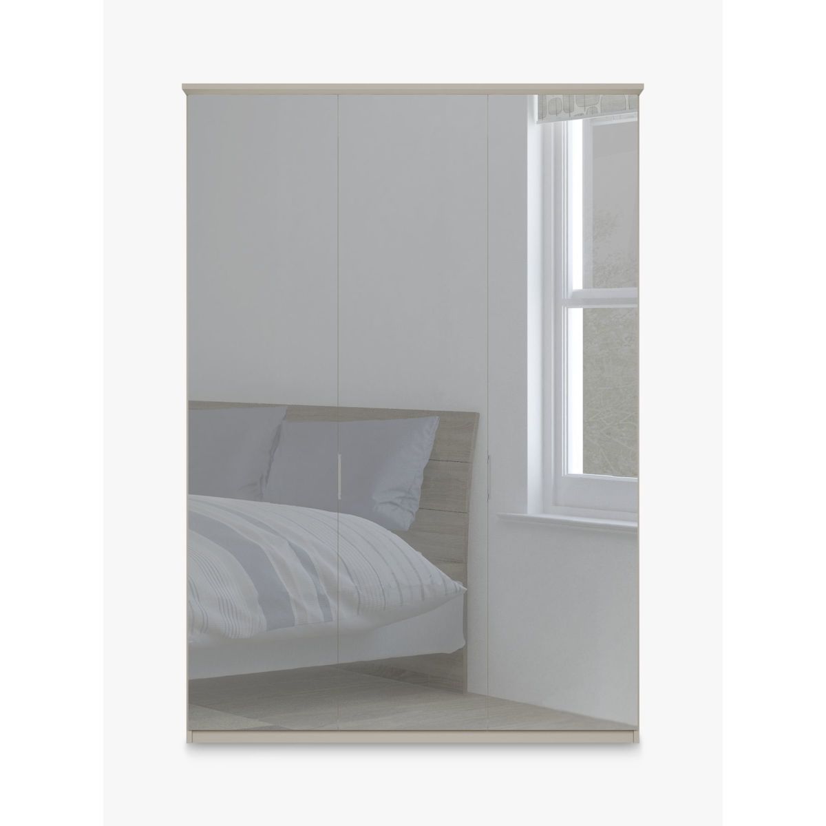 The clean modern lines of this three door Elstra wardrobe are offset with a choice of Oak, Pebble Grey or Matt White finishes, each helping to bring warmth and tactility to the design. The exterior is then complemented with an attractive cornice detail. The three mirrored hinged doors, featuring two silver-tone handles, lead to a double and single compartment. Each compartment is completed with two shelves and a hanging rail, all of which are fully adjustable for your convenience. This piece will bring bedroom interiors up-to-date, whilst offering ample storage space for clothing, accessories and bed linen. Extra internal and external accessories are available to purchase separately: Treeline - Set of 3 shelves, width 47.5cm and width 96.4cm Hanging rail, width 47.5cm and width 96.4cm Treeline - Set of 2 internal drawers with glass front, width 47.5cm and width 96.4cm Pair of LED external lights Set of 3 LED external lights Want to see it first? You may want to see and get a feel for the furniture in one of our shops before ordering. We'll be able to tell you where the range you'd like to view is on display.