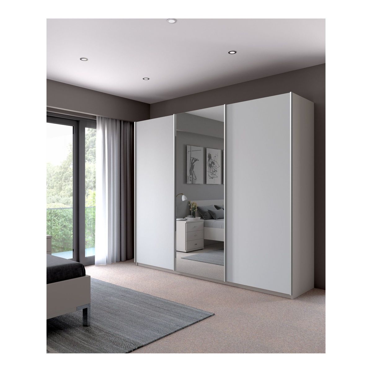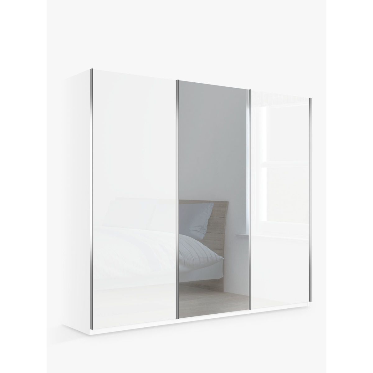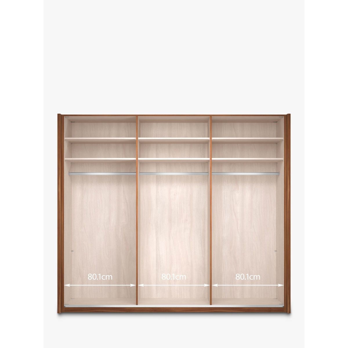 Combining style and functionality, this Elstra 250cm wardrobe has clean lines and is available in a choice of Rustic Oak or Matt White finishes with a contrasting mirrored door. Its contemporary appearance brings any bedroom up to date, while three soft-close sliding doors ensure versatile and discreet use even in the smallest of bedrooms. The interior is divided into three equally sized compartments. Each compartment contains two matching shelves and a hanging rail, all fully adjustable for your convenience. Extra internal and external accessories are available to purchase separately: Set of 3 shelves width 80.1cm, Product Code: 80323603 Hanging rail, width 80.1cm, Product Code: 80323607 Set of 2 internal drawers with glass fronts, width 80.1cm, Product Code: 80323611 Pair of LED external lights, Product Code: 80323615 Pair of LED internal lights Want to see it first? You may want to see and get a feel for the furniture in one of our shops before ordering. We'll be able to tell you where the range you'd like to view is on display.