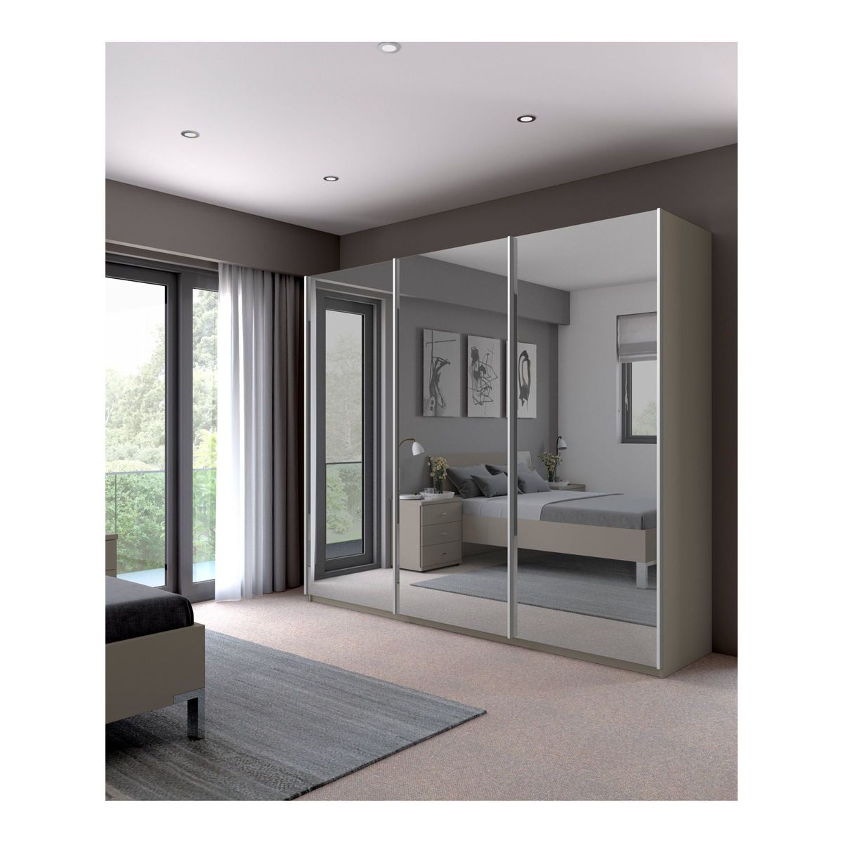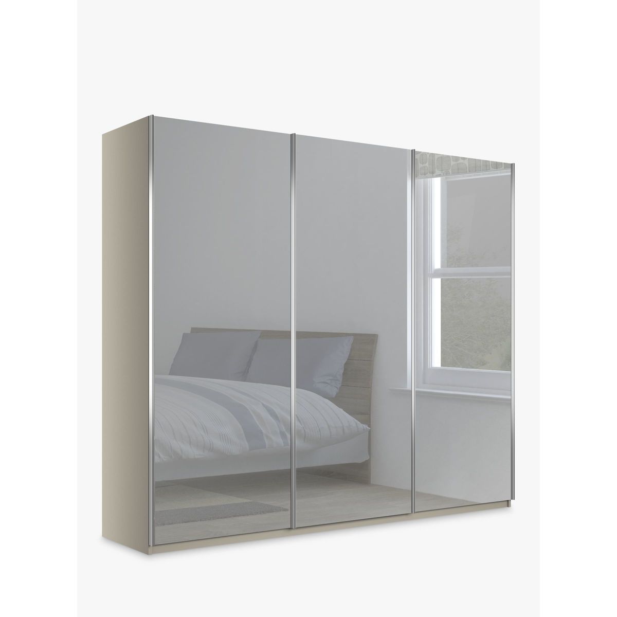 Combining style and functionality, the angular outline of the Elstra 250cm wardrobe is paired with a choice of finishes and contrasting mirrored doors. Its contemporary appearance brings any bedroom up to date, while soft-close sliding doors ensure versatile and discreet use even in the smallest of bedrooms. The interior is divided into three equally sized compartments. All compartments contain two matching shelves and a hanging rail, all fully adjustable for convenience. Extra internal and external accessories are available to purchase separately: Treeline - Set of 3 shelves, width 80.1cm, Product Code: 80323603 Hanging rail, width 80.1cm, Product Code: 80323607 Treeline - Set of 2 internal drawers with glass front, width 80.1cm, Product Code: 80323611 Set of 3 LED external lights Want to see it first? You may want to see and get a feel for the furniture in one of our shops before ordering. We'll be able to tell you where the range you'd like to view is on display. We like it because it is delivered and assembled by the supplier in your home for ease and peace of mind.