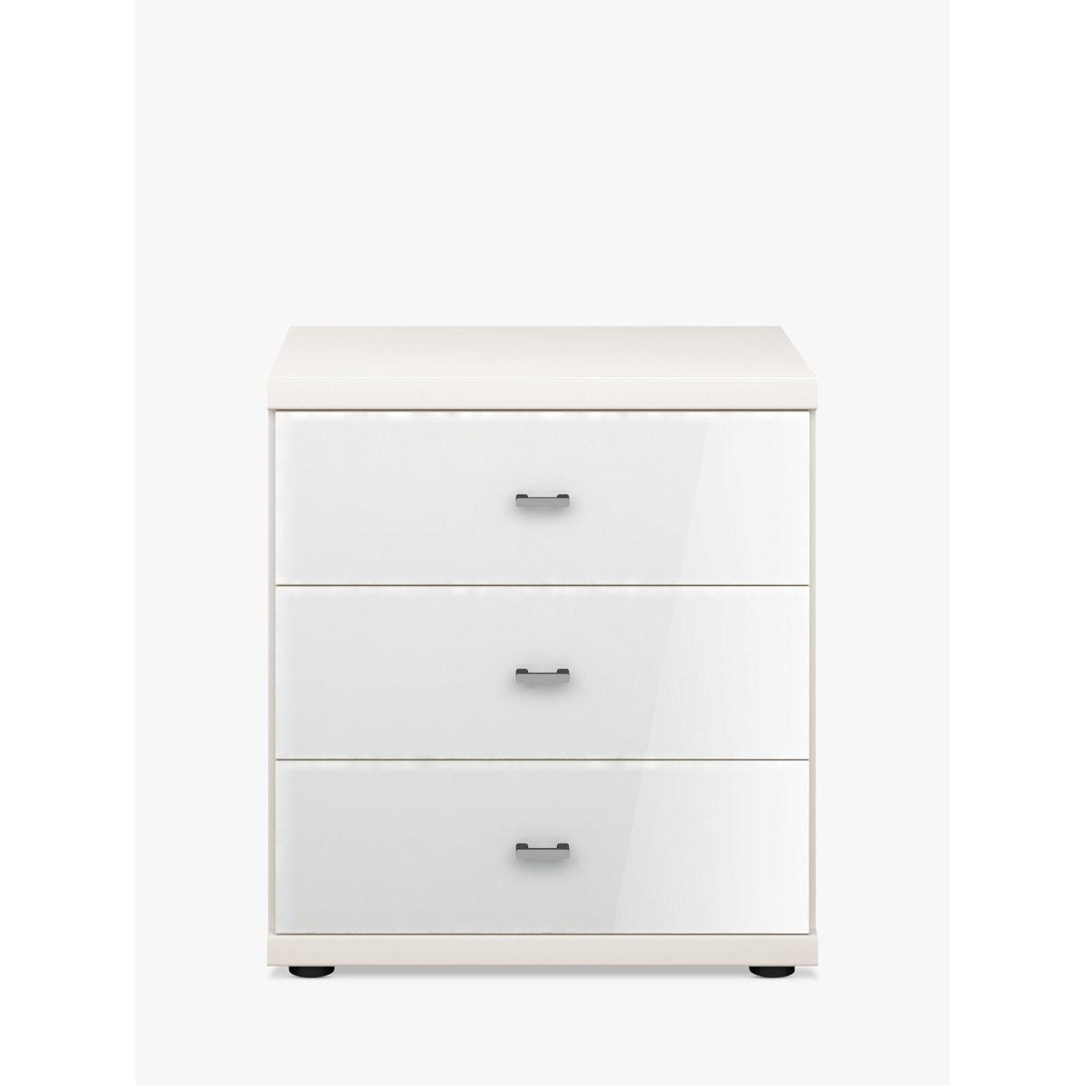 The Elstra 3 Drawer Glass Front Bedside Table from John Lewis & Partners is the perfect place for storing accessories, small items of clothing and other essentials, while adding contemporary style to a room. The pared-down design brings any bedroom up to date. Made with low feet, this bedside table is sturdy and makes an ideal spot for a bedside lamp. Separate your items among the three glass-fronted drawers, each one smoothly opening for ease of use with robust metal handles. Want to see it first? You may want to see and get a feel for the product in one of our shops before ordering. We'll be able to tell you where the range you'd like to view is on display.