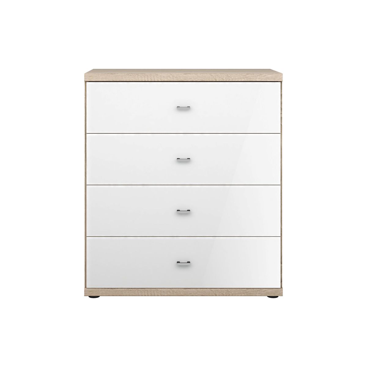 I love this chest of drawers for its clean, modern look and versatility. The glass-fronted drawers add a subtle touch of sophistication, making it ideal for contemporary interiors, especially in bedrooms or living spaces that benefit from a minimalist aesthetic. It works well paired with neutral or light colour schemes, but can also be styled with bold accessories to create contrast. A practical tip is to keep the glass fronts free of clutter for a sleek appearance, and consider using the top surface to display decorative objects or organising trays for smaller essentials. Its straightforward design makes it a flexible piece that can complement a variety of interior styles, from Scandinavian to urban chic.