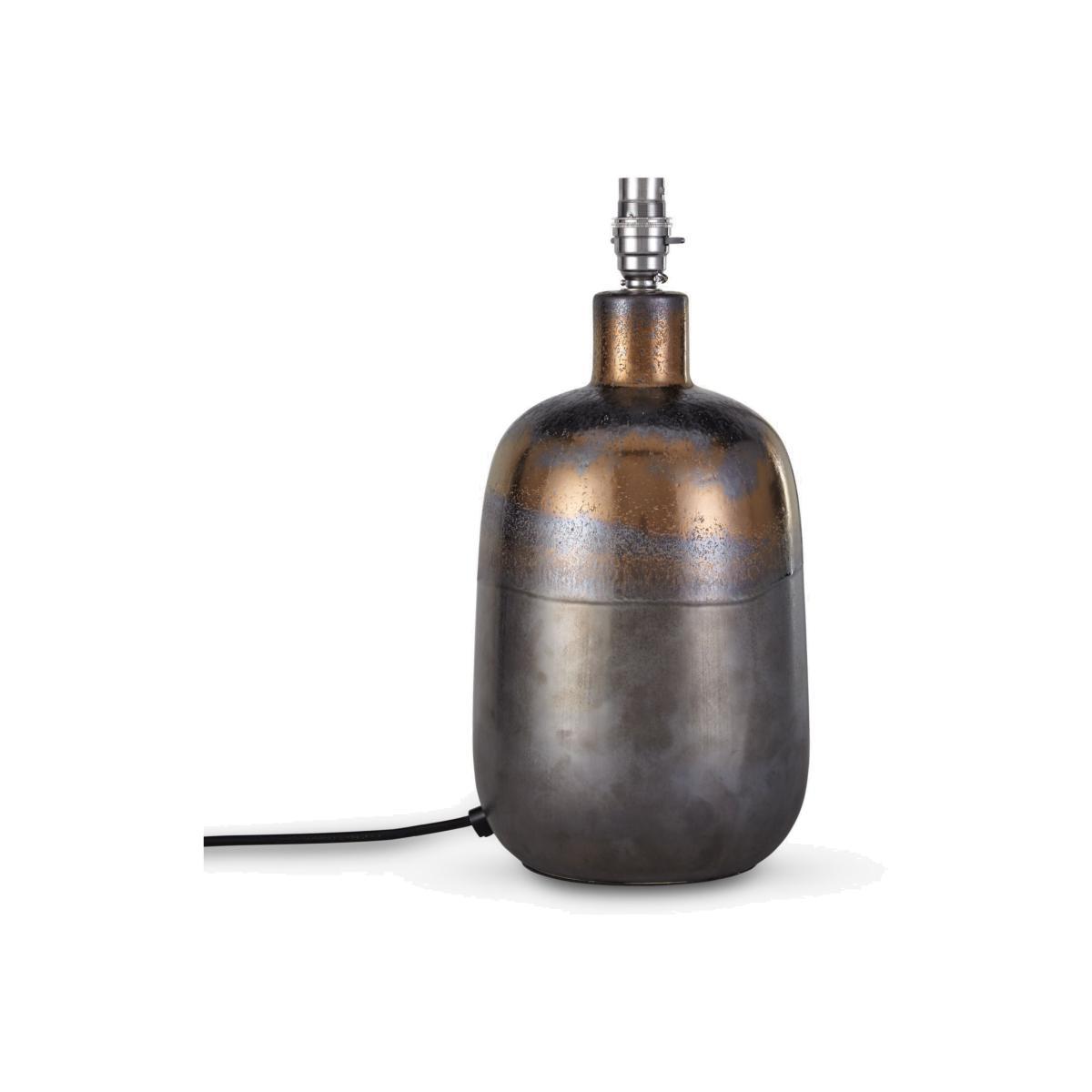 The striking Ember metallic lamp base features a beautifully reactive glaze, each one individual. Worth Knowing The height of your lamp base should be roughly equal to the width of your lampshade. Classic bases work well with tapered lampshades, while more modern bases work well with straight-sided drum lampshades. Shop our range of lampshades here