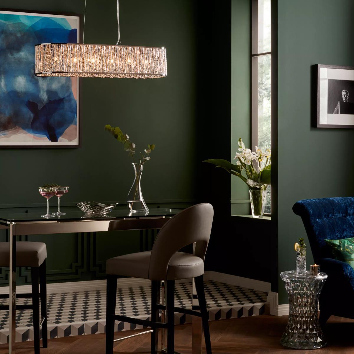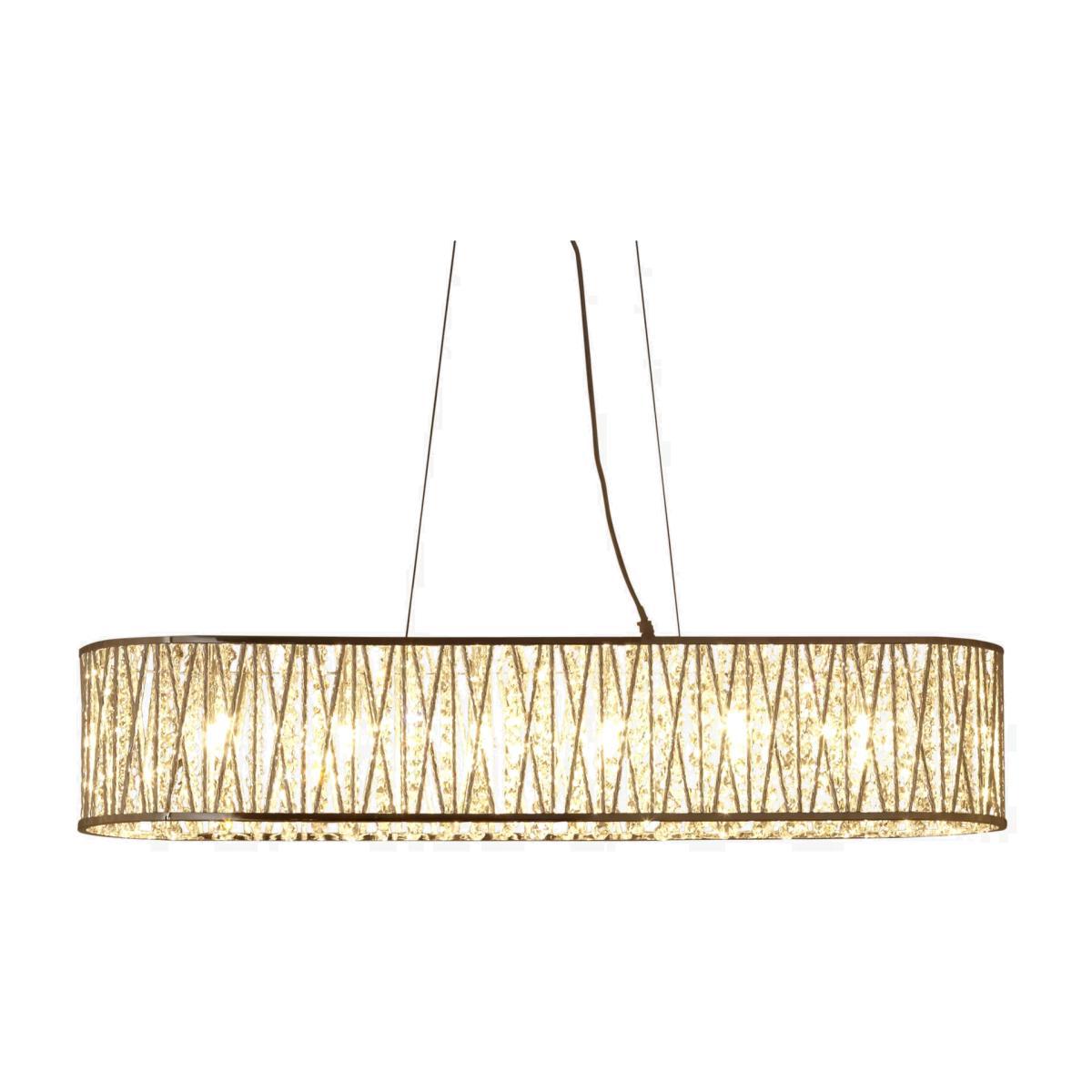 Hang this long light above a dining table for the ultimate in chic luxury. The beautiful bar pendant is lavished in lines of gorgeous beads with a high shine metal mesh running around the outside. It looks stunning when lit, with the light shining through the glass and casting a gorgeous display against its surroundings.