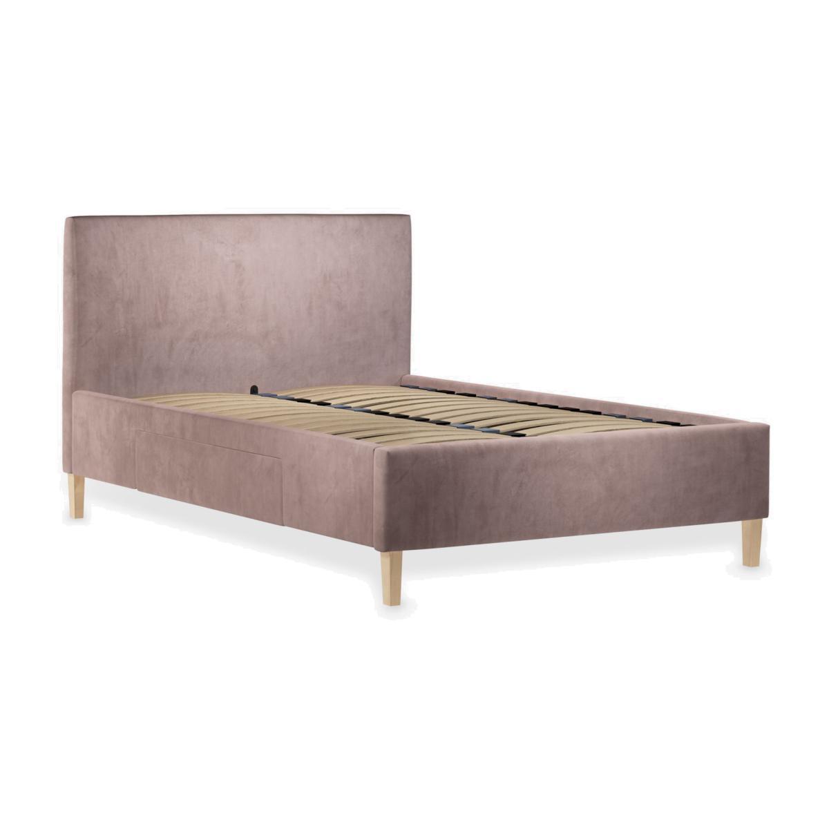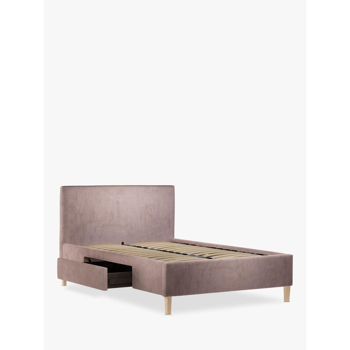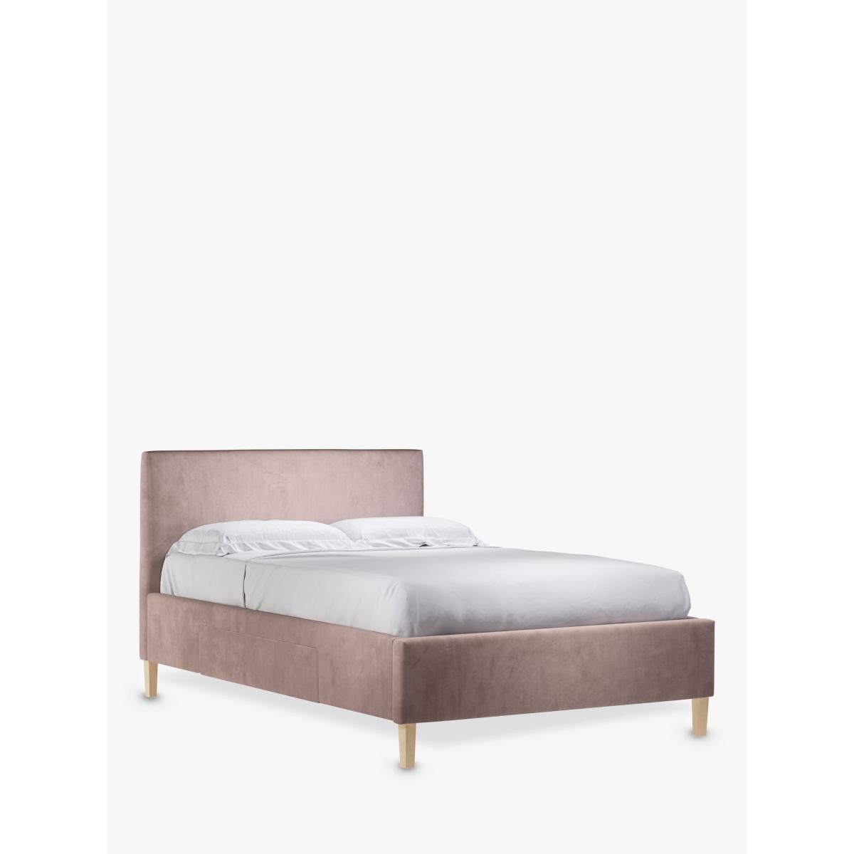 We've kept the design of our Emily storage bed frame simple and clean-lined so it's a practical choice for modern bedrooms. Easy to assemble and made from high-quality timbers, its versatile shape incorporates a large and well-padded headboard and there's a spacious, soft-close drawer on either side of the frame. We've added sprung slats in the base to provide a more supportive foundation for your mattress. Built with Smart Slats This bed frame is designed with wider slats at the shoulders, lumbar and feet. They provide maximum support for you and your mattress so that you experience perfect spinal alignment while you sleep. The standard slat caps are black so we have added grey slat caps to ensure that you know where to place the wider slats. Choose from one of our fabrics: Our Band A fabric, Canvas is a durable, textured weave that's ideal for styling with bold colours and darker shades Our Band A fabric, Topaz is woven to create a linen-effect feel, and is available in a versatile palette of colours Our Band A fabric, Saga is woven with man-made fibres, making it exceptionally durable and versatile Our Band B fabric, Erin has a velvet-style, chenille feel. It's woven with man-made fibres to create a beautifully soft yarn and can appear two-tone in different lights Our Band B fabric, Opulence is soft and luxurious like velvet and available in a rich colour palette Our Band B fabric, Mole is a soft and cosy woven wool-blend. Piling and bobbling may occur naturally over time Our Band B fabric, Relaxed Linen is durable, resilient and versatile, woven from man-made and natural fibres Our Band C fabric, Aquaclean Harriet is made from a short, dense pile of velvet that has a soft, brushed finish. An Aquaclean treatment has been applied to this resilient fabric which means you can banish the majority of household stains with water. The treatment covers every fibre with an invisible coating that doesn't need to be retreated or re-coated. It will naturally develop lines, scuffs and shading over time. Want to see it first? You may want to see and get a feel for the furniture before ordering. Pop into one of our shops to see the full range of colours and fabrics on offer. We'll be able to tell you where the range you'd like to view is on display.