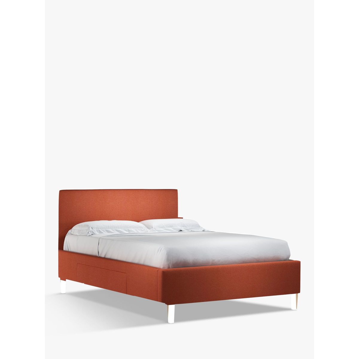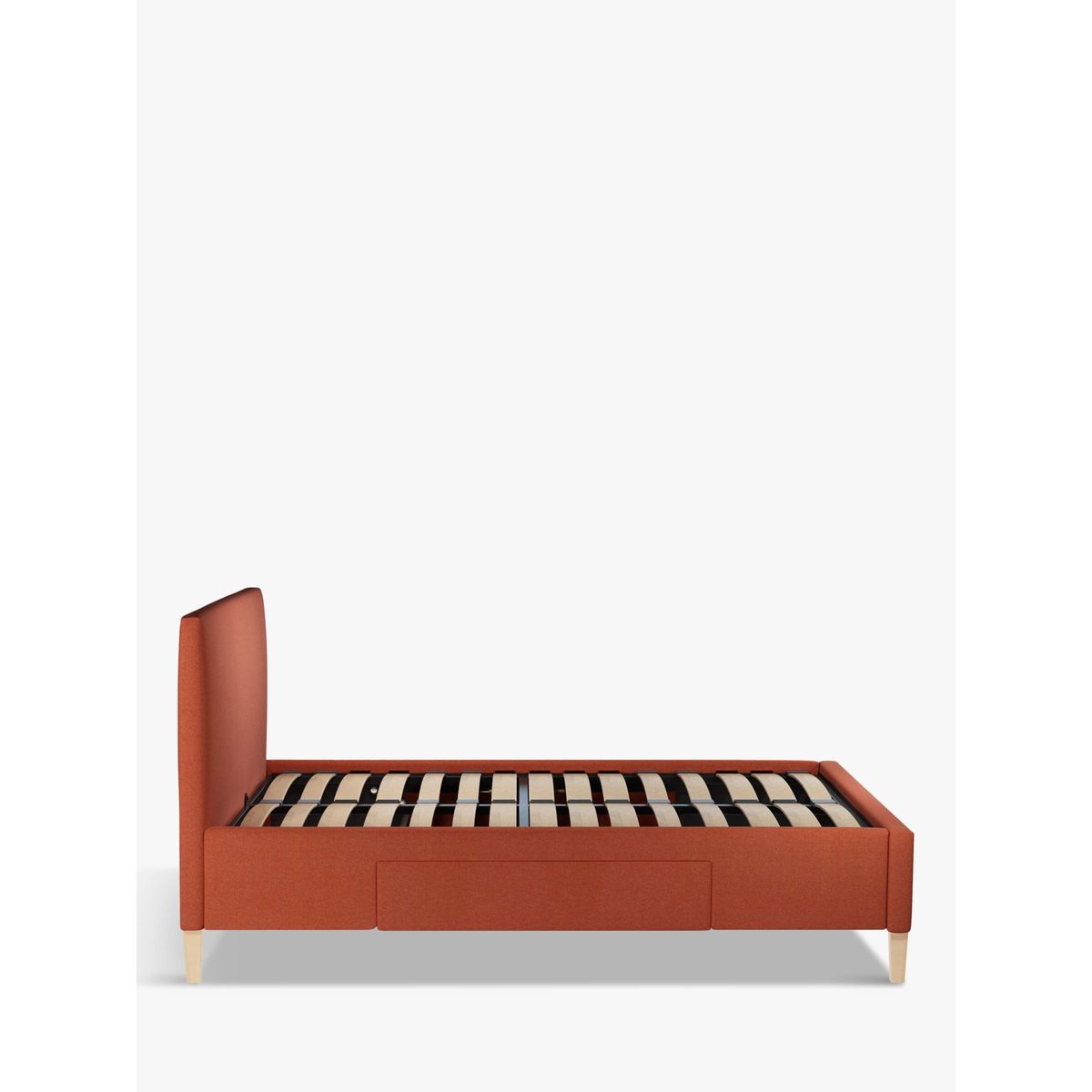 The Emily storage bed frame is a simple, versatile option for modern settings. Designed with a comfortable, large headboard and boasting a clean-lined profile, it has a spacious soft-close drawer on either side of the frame and is supported by minimalist light wooden legs. Sprung slats offer additional support for you and your mattress. Smart Slats This bed frame is designed with wider slats at the shoulders, lumbar and feet, that provide maximum support for you and your mattress so that you experience perfect spinal alignment while you sleep. Standard slat caps are black so we have added grey slat caps to ensure that you know where to place the wider slats.