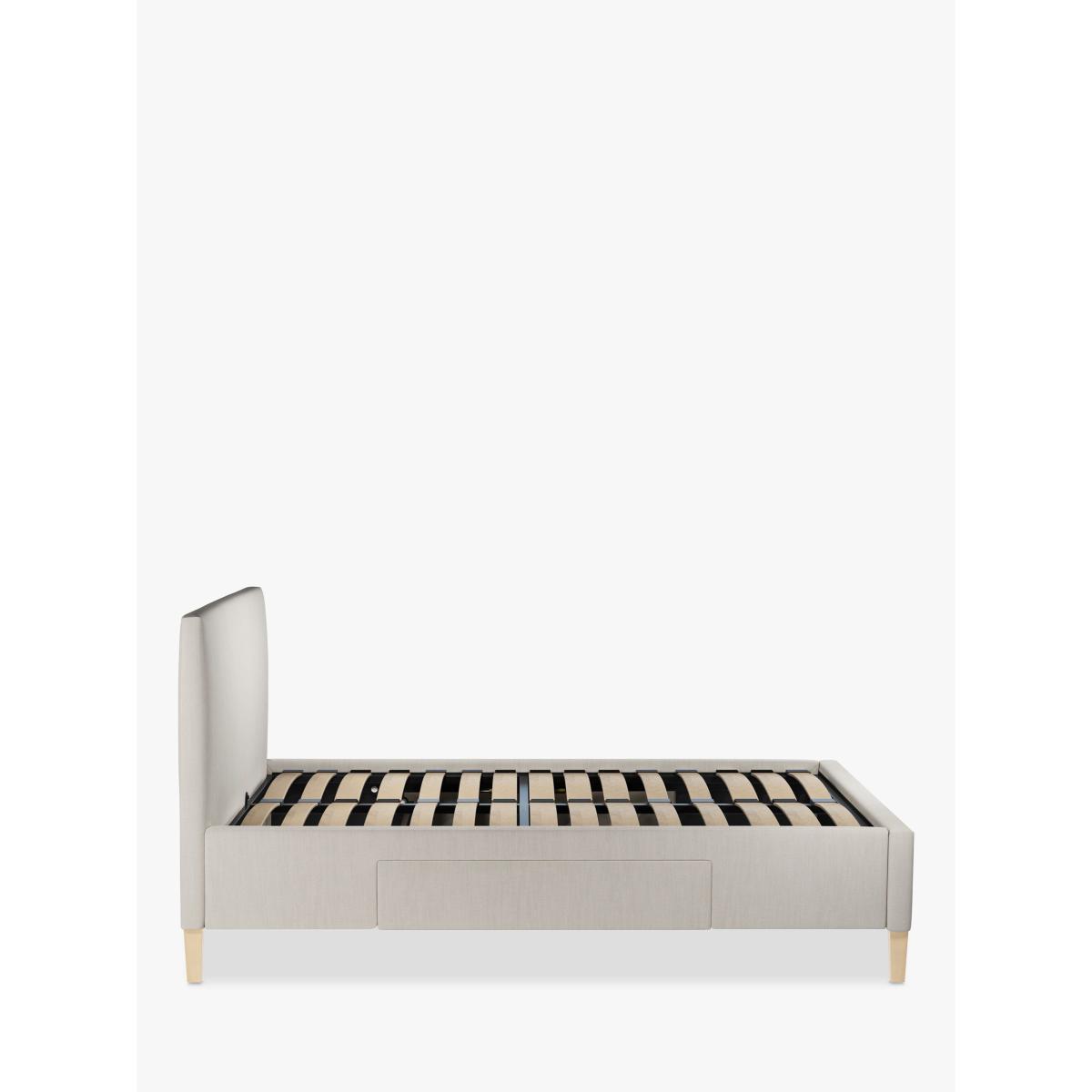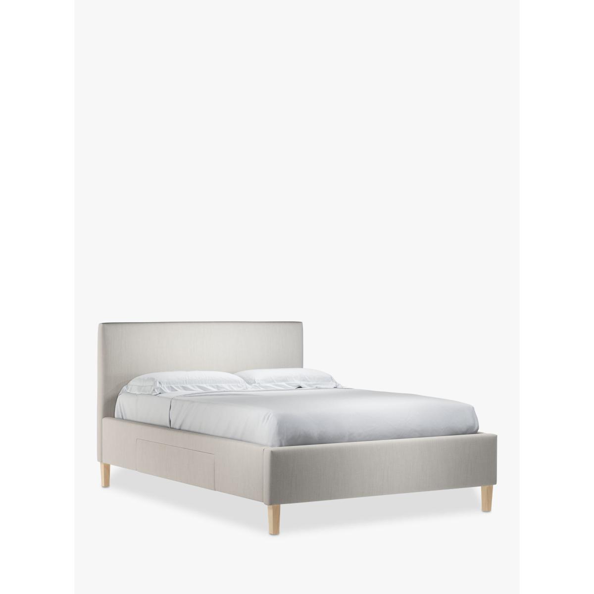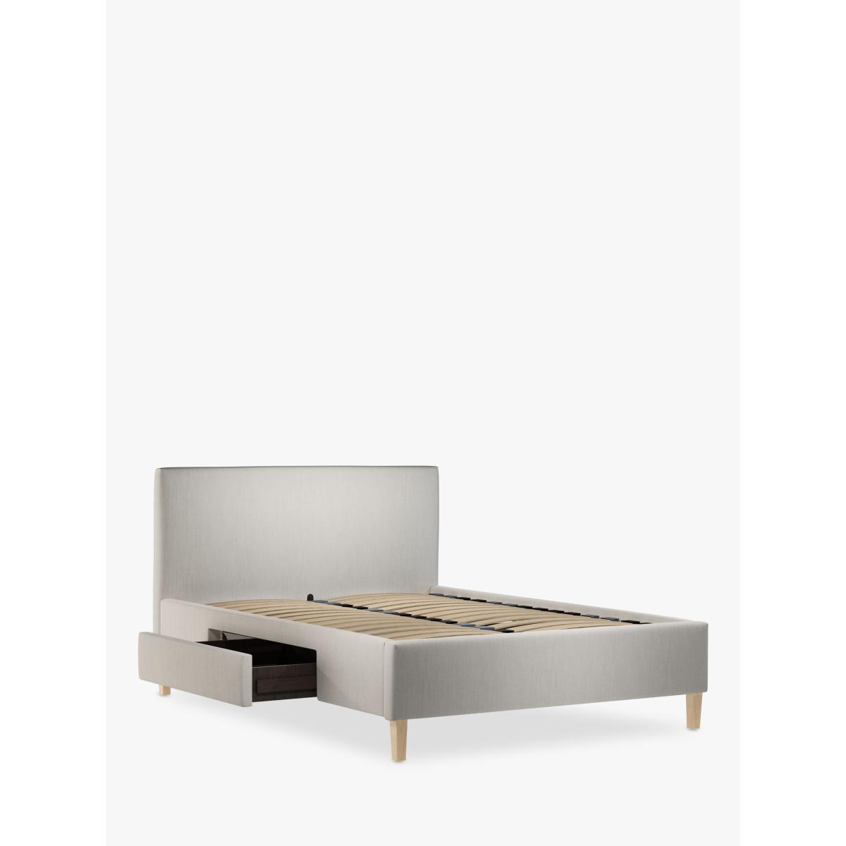 We've kept the design of our Emily storage bed frame simple and clean-lined so it's a practical choice for modern bedrooms. Easy to assemble and made from high-quality timbers, its versatile shape incorporates a large and well-padded headboard and there's a spacious, soft-close drawer on either side of the frame. We've added sprung slats in the base to provide a more supportive foundation for your mattress. Built with Smart Slats This bed frame is designed with wider slats at the shoulders, lumbar and feet. They provide maximum support for you and your mattress so that you experience perfect spinal alignment while you sleep. The standard slat caps are black so we have added grey slat caps to ensure that you know where to place the wider slats. Choose from one of our fabrics: Our Band A fabric, Canvas is a durable, textured weave that's ideal for styling with bold colours and darker shades Our Band A fabric, Topaz is woven to create a linen-effect feel, and is available in a versatile palette of colours Our Band A fabric, Saga is woven with man-made fibres, making it exceptionally durable and versatile Our Band B fabric, Erin has a velvet-style, chenille feel. It's woven with man-made fibres to create a beautifully soft yarn and can appear two-tone in different lights Our Band B fabric, Opulence is soft and luxurious like velvet and available in a rich colour palette Our Band B fabric, Mole is a soft and cosy woven wool-blend. Piling and bobbling may occur naturally over time Our Band B fabric, Relaxed Linen is durable, resilient and versatile, woven from man-made and natural fibres Our Band C fabric, Marylamb is woven from both man-made and natural fibres, creating a tactile and soft-touch feel. Our Band C fabric, Aquaclean Harriet is made from a short, dense pile of velvet that has a soft, brushed finish. An Aquaclean treatment has been applied to this resilient fabric which means you can banish the majority of household stains with water. The treatment covers every fibre with an invisible coating that doesn't need to be retreated or re-coated. It will naturally develop lines, scuffs and shading over time. Want to see it first? You may want to see and get a feel for the furniture before ordering. Pop into one of our shops to see the full range of colours and fabrics on offer. We'll be able to tell you where the range you'd like to view is on display.