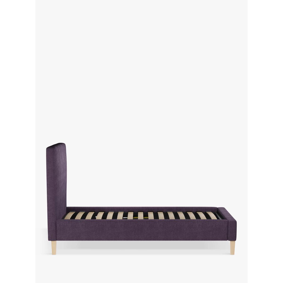 The Emily bed frame is a simple and versatile option for modern settings. With a clean-lined shape and large headboard, it can be upholstered in a fabric of your choice. It's supported by minimalist wooden legs and has supportive, sprung slats in the base. Built with Smart Slats This bed frame is designed with wider slats at the shoulders, lumbar and feet. They provide maximum support for you and your mattress so that you experience perfect spinal alignment while you sleep. The standard slat caps are black so we have added grey slat caps to ensure that you know where to place the wider slats. Choose from one of our fabrics: Our Band A fabric, Topaz is woven to create a linen-effect feel Our Band A fabric, Saga is woven with man-made fibres, making it exceptionally durable and versatile Our Band B fabric, Erin has a velvet-style, chenille feel. It's woven with man-made fibres to create a beautifully soft yarn and can appear two-tone in different lights Our Band B fabric, Opulence is a soft and luxurious velvet-like fabric Our Band B fabric, Mole is a soft and cosy woven wool-blend. Piling and bobbling may occur naturally over time Our Band B fabric, Relaxed Linen is durable, resilient and versatile, woven from man-made and natural fibres Our Band C fabric, Aquaclean Harriet is made from a short, dense pile of velvet that has a soft, brushed finish. An Aquaclean treatment has been applied to this resilient fabric which means you can banish the majority of household stains with water. The treatment covers every fibre with an invisible coating so it doesn't need to be retreated or re-coated. It will naturally develop lines, scuffs and shading over time. Worth Knowing: Child Compliant bed frames This bed conforms to BS 8509:2008+A1:2011 (Childrens beds for domestic use. Safety requirements and test methods). We recommend it is used with a standard single mattress, L190 x W90cm. Not suitable for children under the age of 4 years. Want to see it first? You may want to see and get a feel for the furniture before ordering. Pop into one of our shops to see the full range of colours and fabrics on offer. We'll be able to tell you where the range you'd like to view is on display.