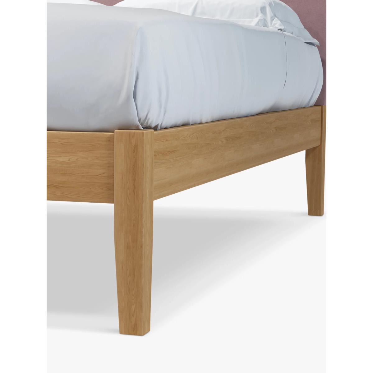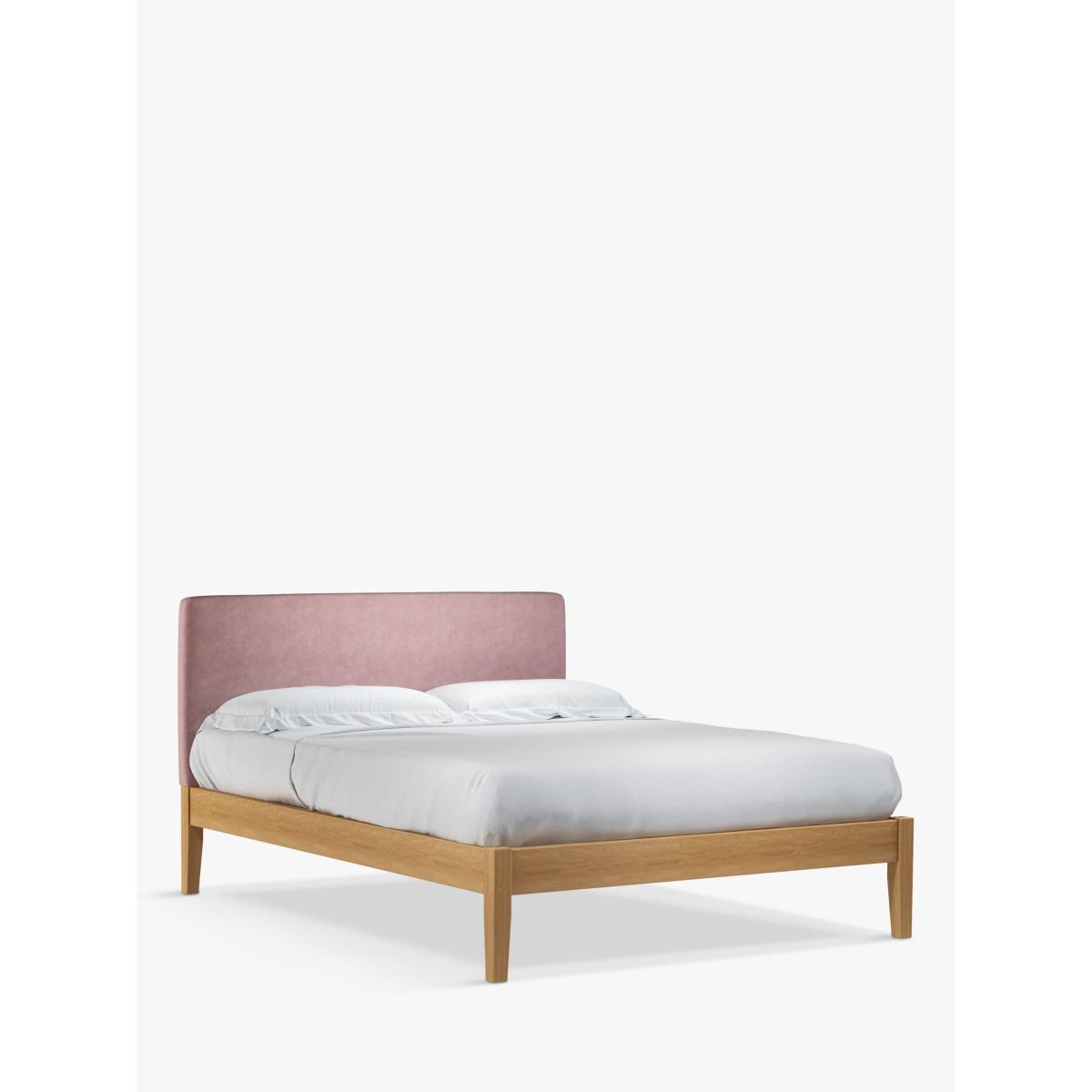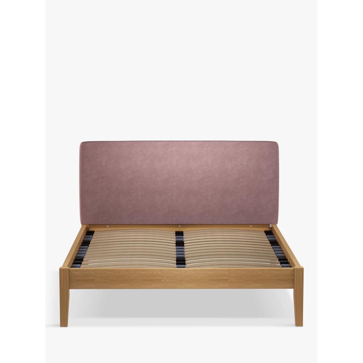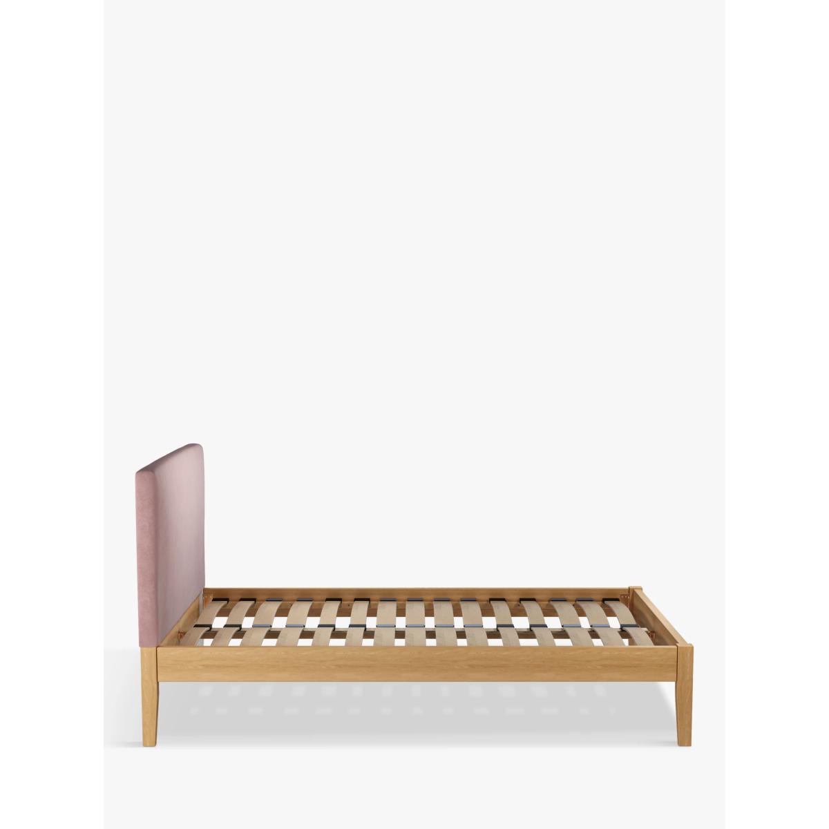 Meet Emily Kitami , our bed frame which is designed with an upholstered headboard and a sturdy solid oak base. It's a classic, clean-lined style but the well-padded headboard gives it a modern edge, and it can be upholstered in a fabric of your choice. Sprung slats in the base provide a supportive and responsive foundation for your mattress. Built with Smart Slats This bed frame is designed with wider slats at the shoulders, lumbar and feet. They provide maximum support for you and your mattress so that you experience perfect spinal alignment while you sleep. The standard slat caps are black so we have added grey slat caps to ensure that you know where to place the wider slats. Choose from one of our fabrics: Our Band A fabric, Topaz is woven to create a linen-effect feel Our Band A fabric, Saga is woven with man-made fibres, making it exceptionally durable and versatile Our Band B fabric, Erin has a velvet-style, chenille feel. It's woven with man-made fibres to create a beautifully soft yarn and can appear two-tone in different lights Our Band B fabric, Opulence is a soft and luxurious velvet-like fabric Our Band B fabric, Mole is a soft and cosy woven wool-blend. Piling and bobbling may occur naturally over time Our Band B fabric, Relaxed Linen is durable, resilient and versatile, woven from man-made and natural fibres Our Band C fabric, Aquaclean Harriet is made from a short, dense pile of velvet that has a soft, brushed finish. An Aquaclean treatment has been applied to this resilient fabric which means you can banish the majority of household stains with water. The treatment covers every fibre with an invisible coating so it doesn't need to be retreated or re-coated. It will naturally develop lines, scuffs and shading over time Want to see it first? You may want to see and get a feel for the furniture before ordering. Pop into one of our shops to see the full range of colours and fabrics on offer. We'll be able to tell you where the range you'd like to view is on display.