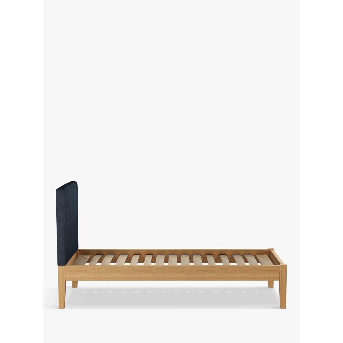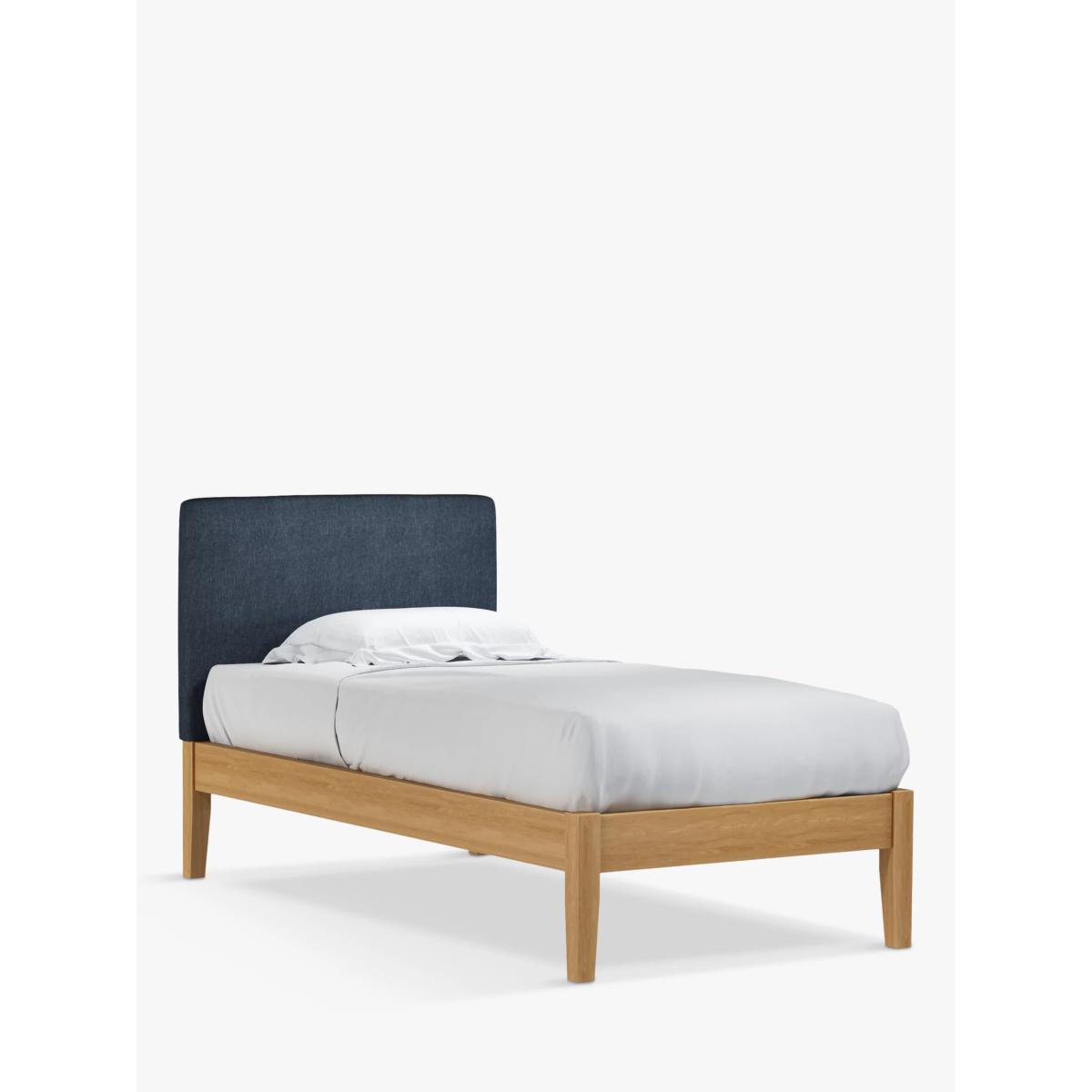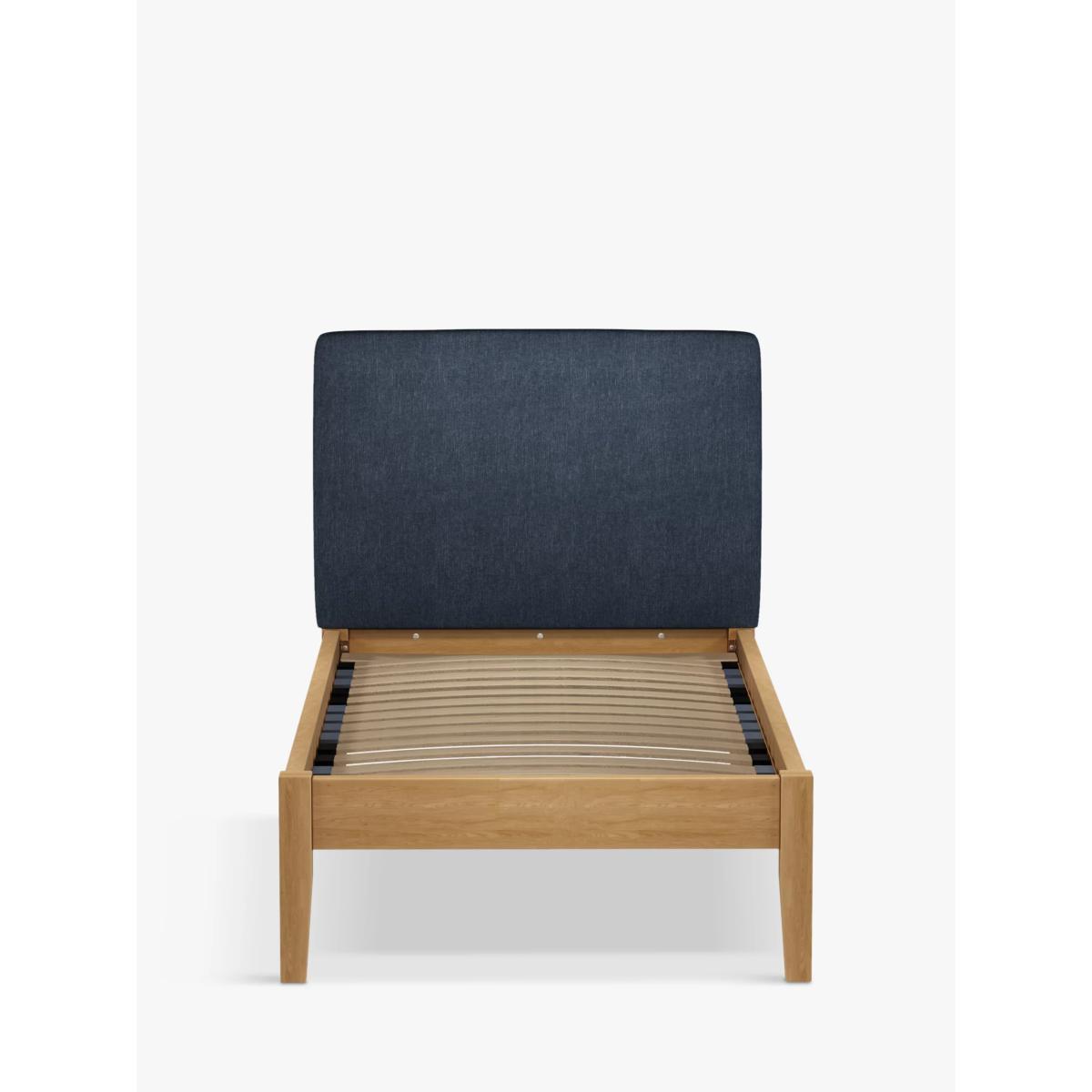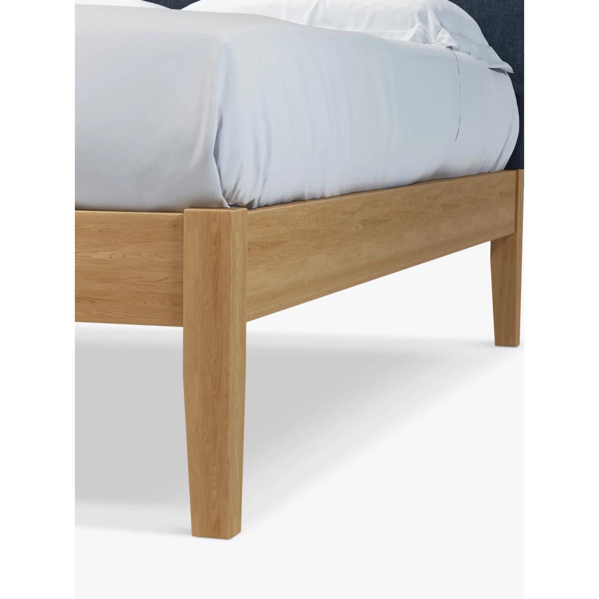 Meet Emily Kitami, our bed frame which is designed with an upholstered headboard and a sturdy solid oak base. It's a classic, clean-lined style but the well-padded headboard gives it a modern edge, and it can be upholstered in a fabric of your choice. Sprung slats in the base provide a supportive and responsive foundation for your mattress. Built with Smart Slats This bed frame is designed with wider slats at the shoulders, lumbar and feet. They provide maximum support for you and your mattress so that you experience perfect spinal alignment while you sleep. The standard slat caps are black so we have added grey slat caps to ensure that you know where to place the wider slats. Choose from one of our fabrics: Our Band A fabric, Topaz is woven to create a linen-effect feel Our Band A fabric, Saga is woven with man-made fibres, making it exceptionally durable and versatile Our Band B fabric, Erin has a velvet-style, chenille feel. It's woven with man-made fibres to create a beautifully soft yarn and can appear two-tone in different lights Our Band B fabric, Opulence is a soft and luxurious velvet-like fabric Our Band B fabric, Mole is a soft and cosy woven wool-blend. Piling and bobbling may occur naturally over time Our Band B fabric, Relaxed Linen is durable, resilient and versatile, woven from man-made and natural fibres Our Band C fabric, Aquaclean Harriet is made from a short, dense pile of velvet that has a soft, brushed finish. An Aquaclean treatment has been applied to this resilient fabric which means you can banish the majority of household stains with water. The treatment covers every fibre with an invisible coating so it doesn't need to be retreated or re-coated. It will naturally develop lines, scuffs and shading over time. Want to see it first? You may want to see and get a feel for the furniture before ordering. Pop into one of our shops to see the full range of colours and fabrics on offer. We'll be able to tell you where the range you'd like to view is on display.