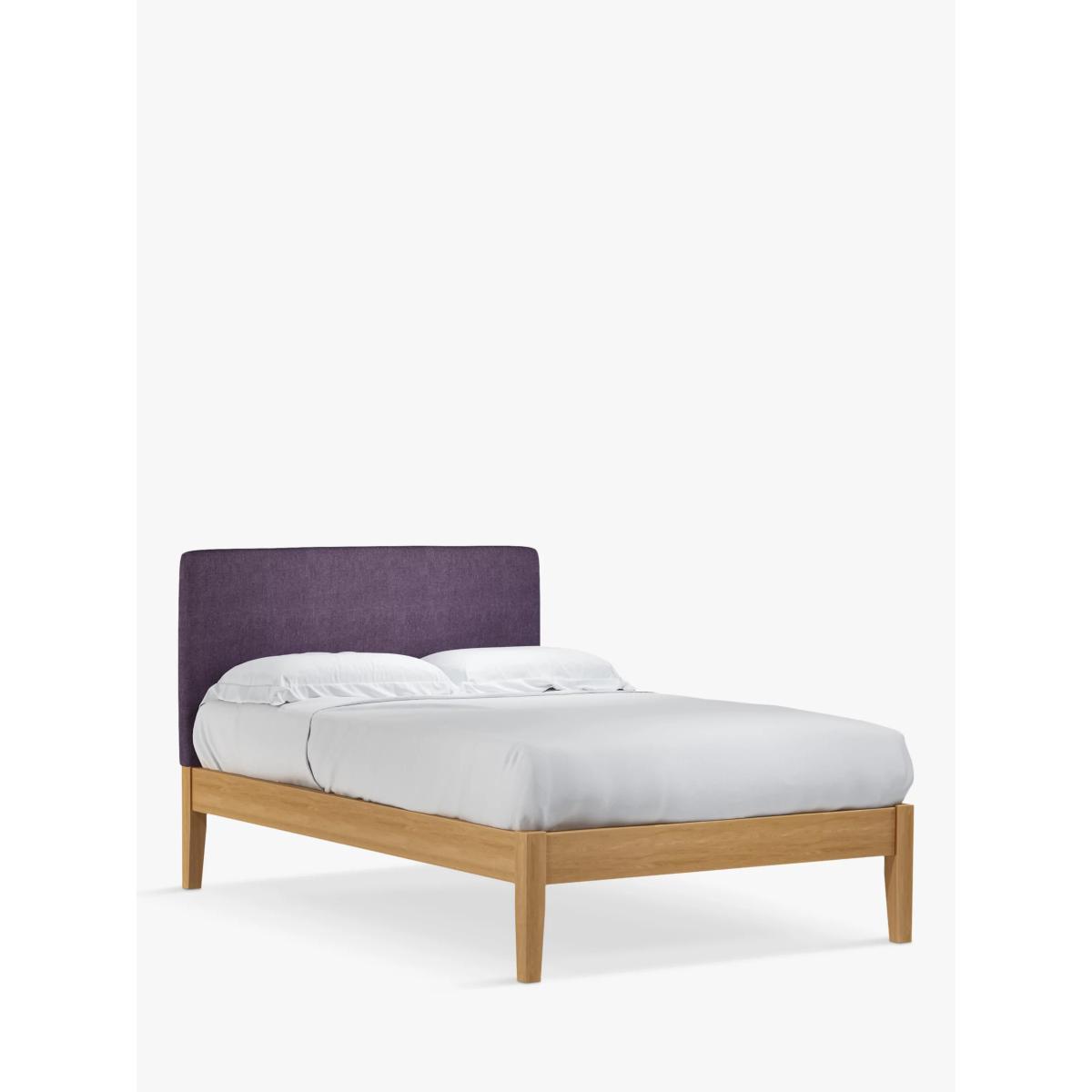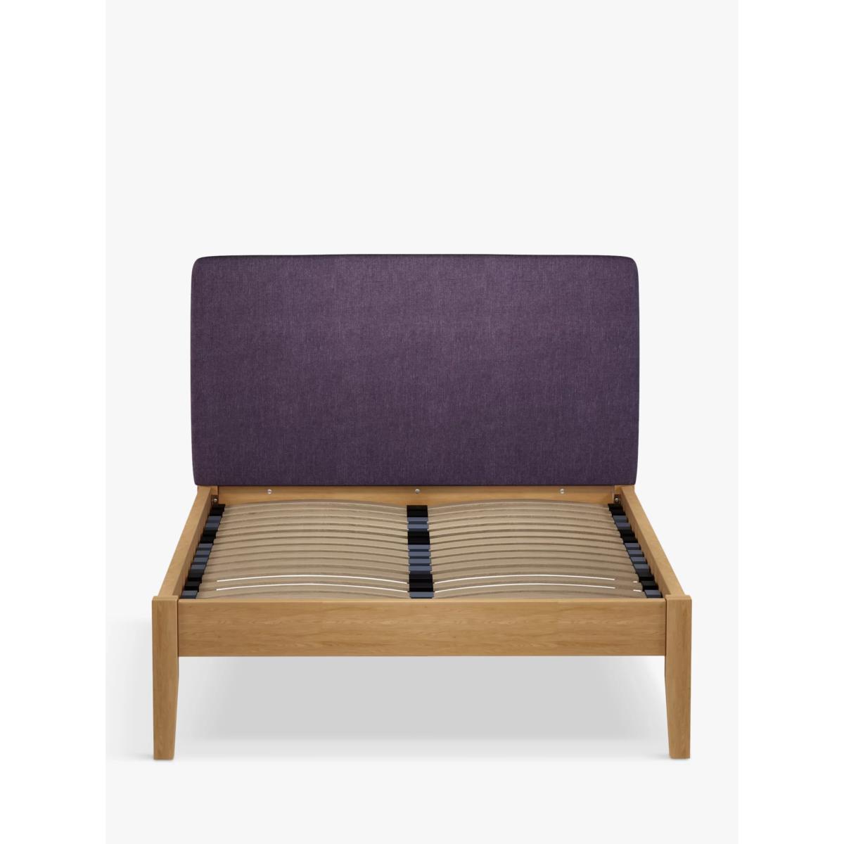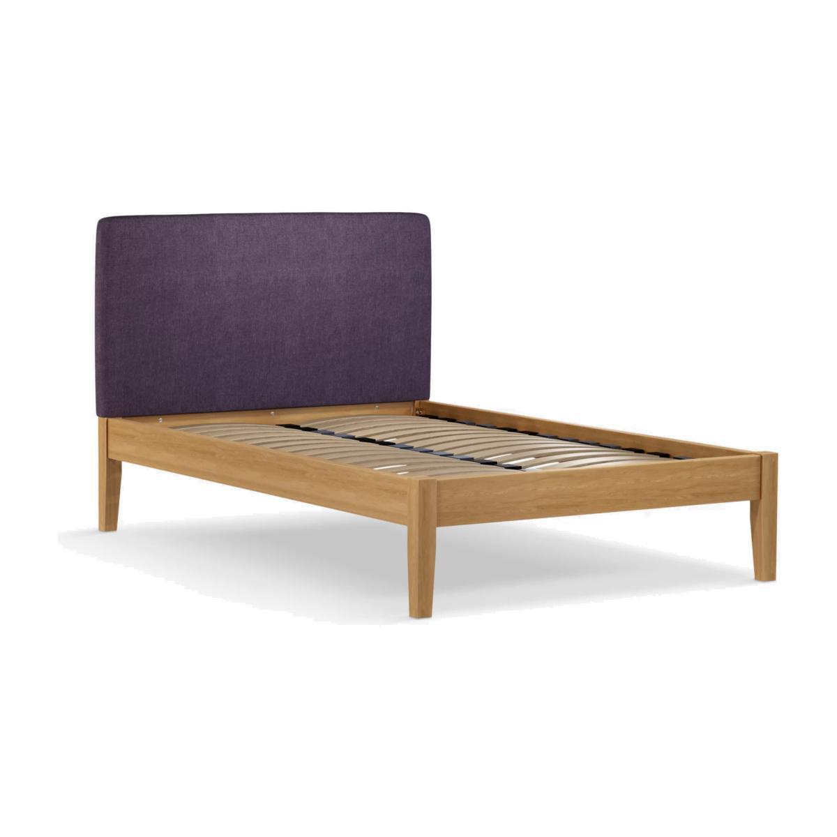 Meet Emily Kitami , our bed frame which is designed with an upholstered headboard and a sturdy solid oak base. It's a classic, clean-lined style but the well-padded headboard gives it a modern edge, and it can be upholstered in a fabric of your choice. Sprung slats in the base provide a supportive and responsive foundation for your mattress. Built with Smart Slats This bed frame is designed with wider slats at the shoulders, lumbar and feet. They provide maximum support for you and your mattress so that you experience perfect spinal alignment while you sleep. The standard slat caps are black so we have added grey slat caps to ensure that you know where to place the wider slats. Choose from one of our fabrics: Our Band A fabric, Topaz is woven to create a linen-effect feel Our Band A fabric, Saga is woven with man-made fibres, making it exceptionally durable and versatile Our Band B fabric, Erin has a velvet-style, chenille feel. It's woven with man-made fibres to create a beautifully soft yarn and can appear two-tone in different lights Our Band B fabric, Opulence is a soft and luxurious velvet-like fabric Our Band B fabric, Mole is a soft and cosy woven wool-blend. Piling and bobbling may occur naturally over time Our Band B fabric, Relaxed Linen is durable, resilient and versatile, woven from man-made and natural fibres Our Band C fabric, Aquaclean Harriet is made from a short, dense pile of velvet that has a soft, brushed finish. An Aquaclean treatment has been applied to this resilient fabric which means you can banish the majority of household stains with water. The treatment covers every fibre with an invisible coating so it doesn't need to be retreated or re-coated. It will naturally develop lines, scuffs and shading over time Want to see it first? You may want to see and get a feel for the furniture before ordering. Pop into one of our shops to see the full range of colours and fabrics on offer. We'll be able to tell you where the range you'd like to view is on display.